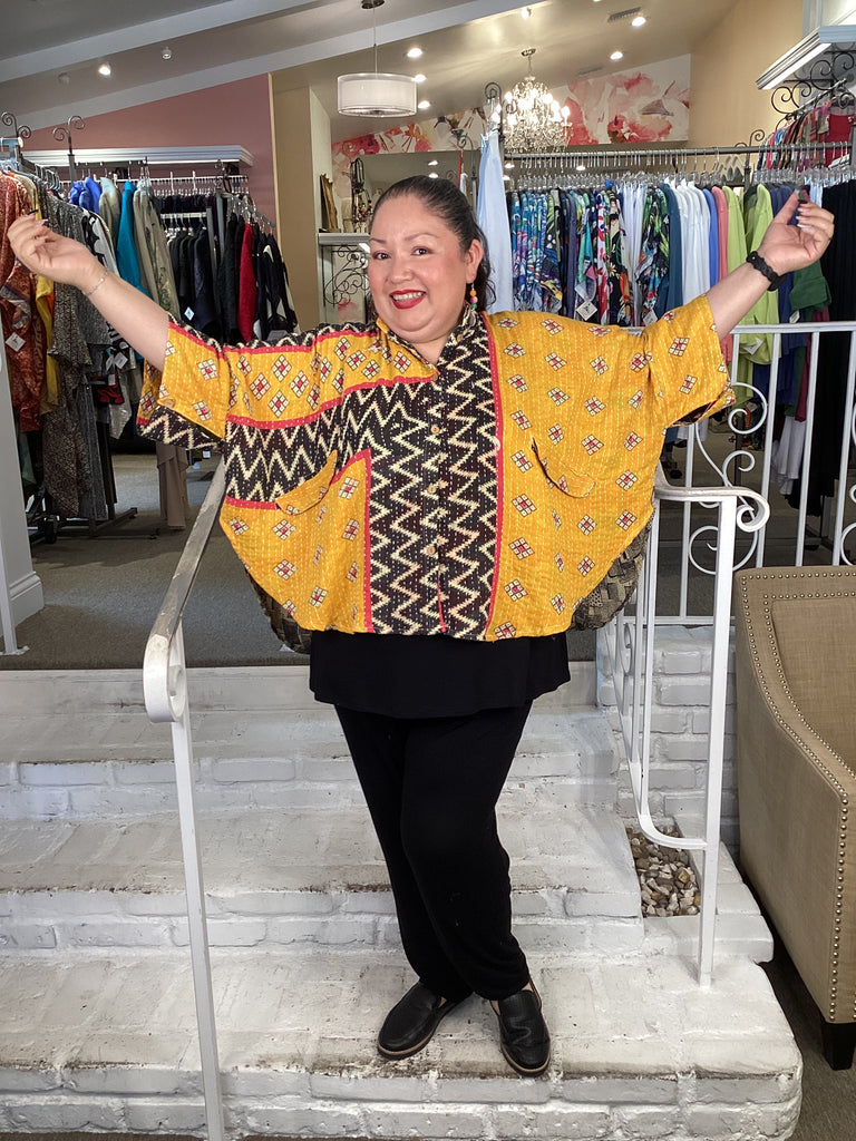 These vintage fabrics have lived a full life before becoming these unique garments. Fabrics may have small threads or patches sewn on by hand. Color inconsistency or small dots/stains may be present, however imperfections should be celebrated.