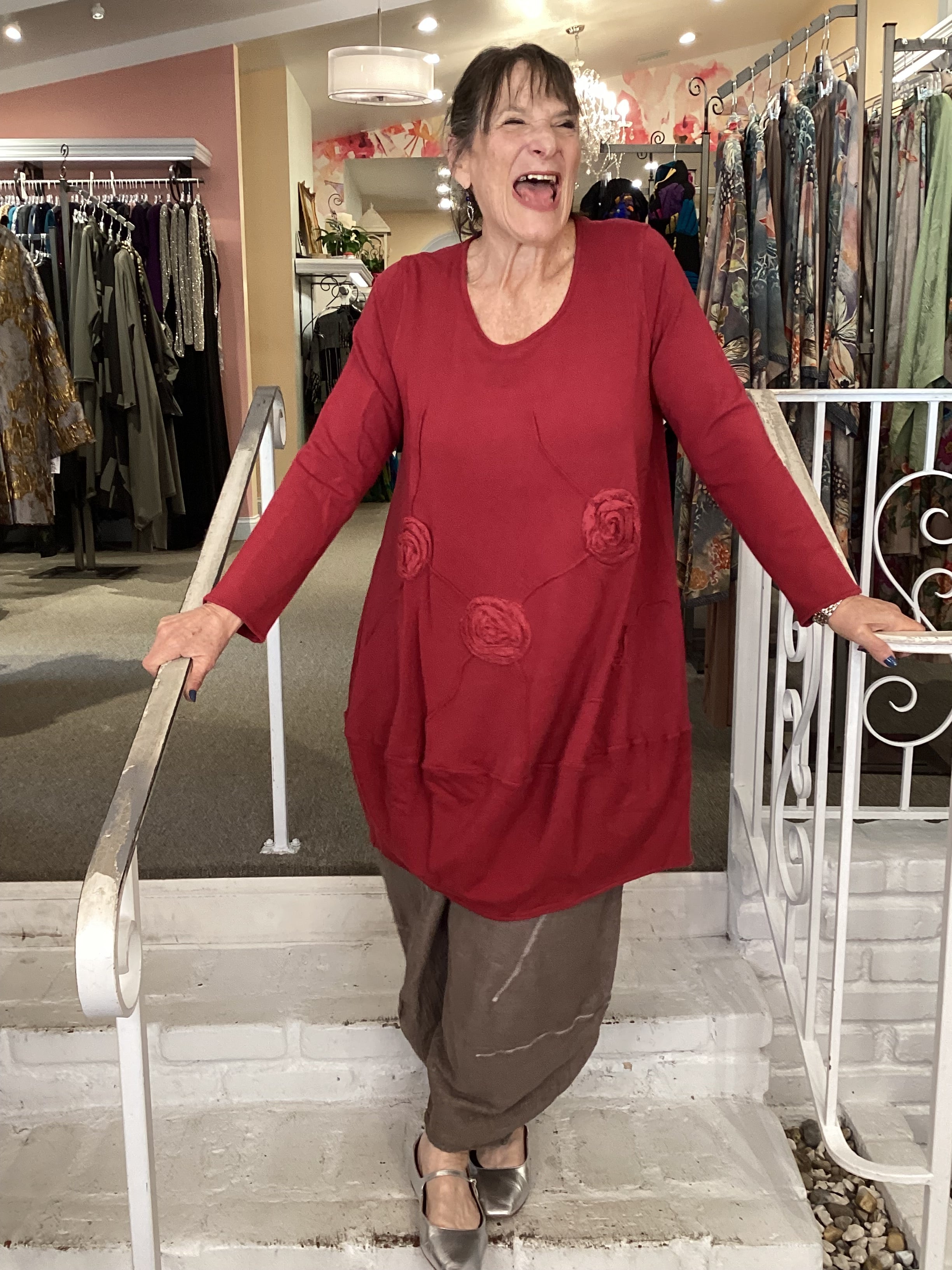 This Cheyenne comfortable, generous and unique "Art to Wear" pant designed for a woman who values individuality, originality and comfort. Cotton/Spandex blend, machine wash cold.
