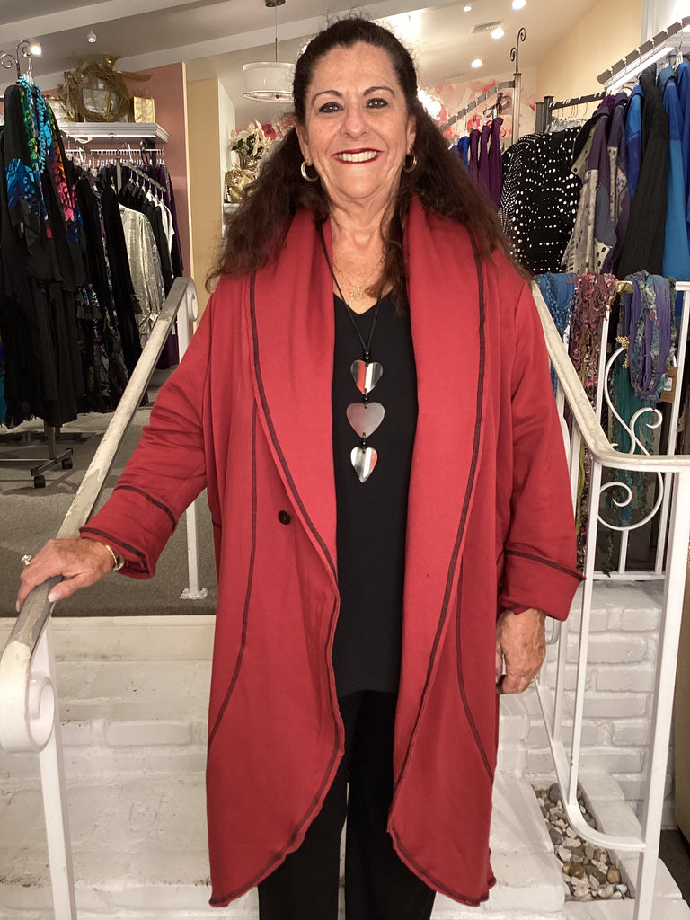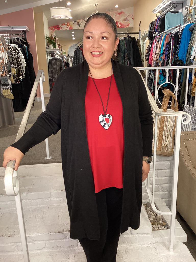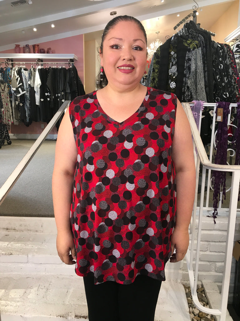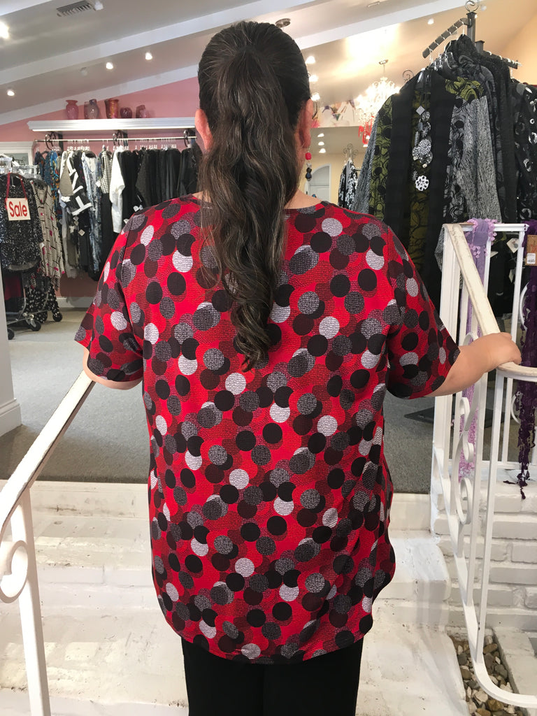 PUCKER V-NECK LONG TUNIC - RED