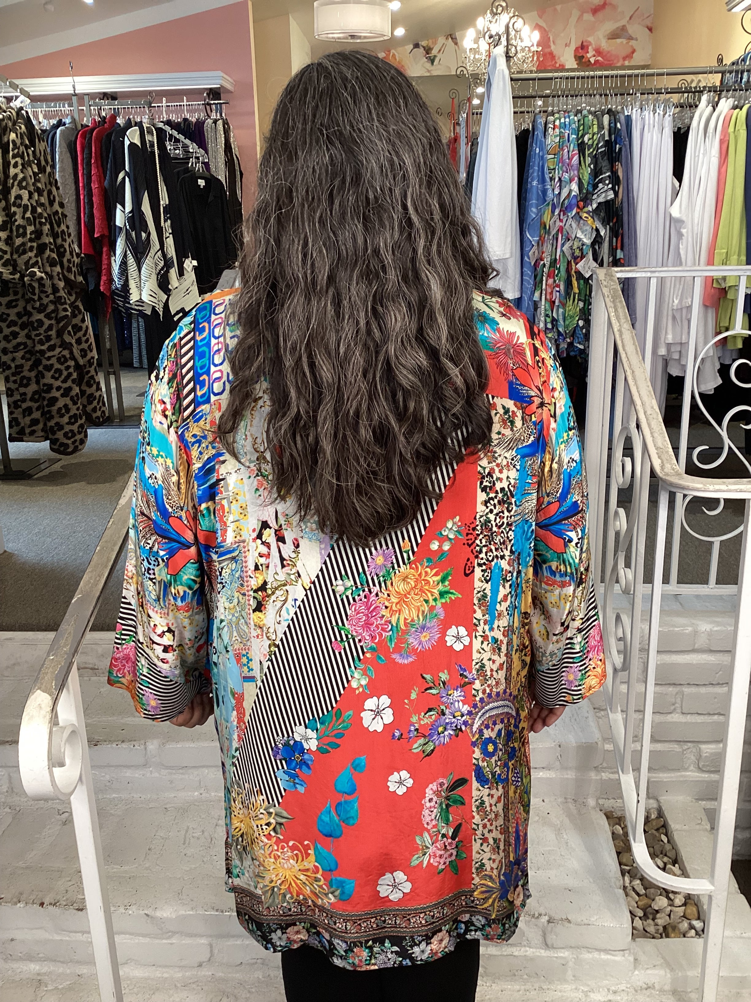 SILK VISCOSE KIMONO -RED PRINT 25939 RED