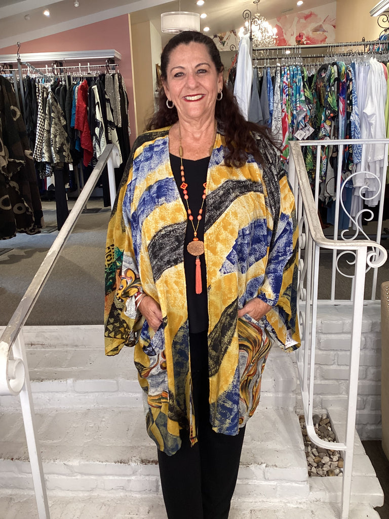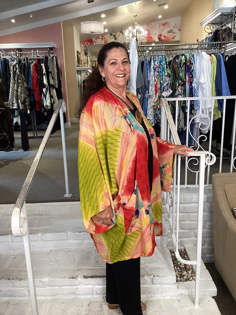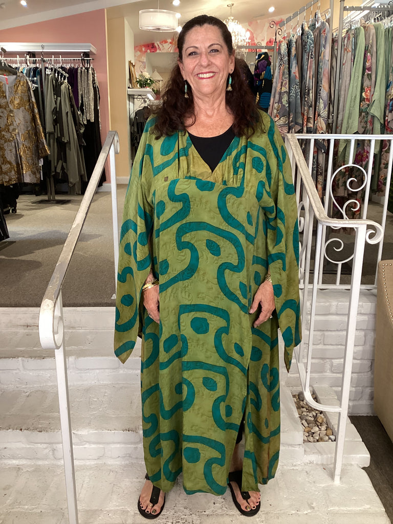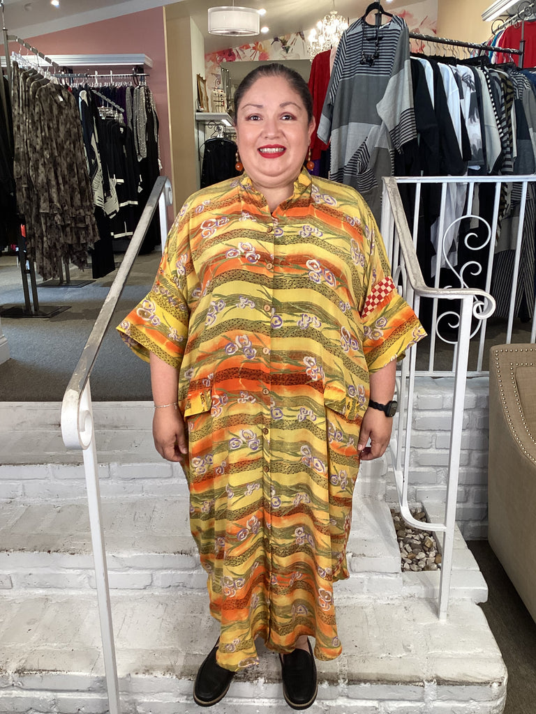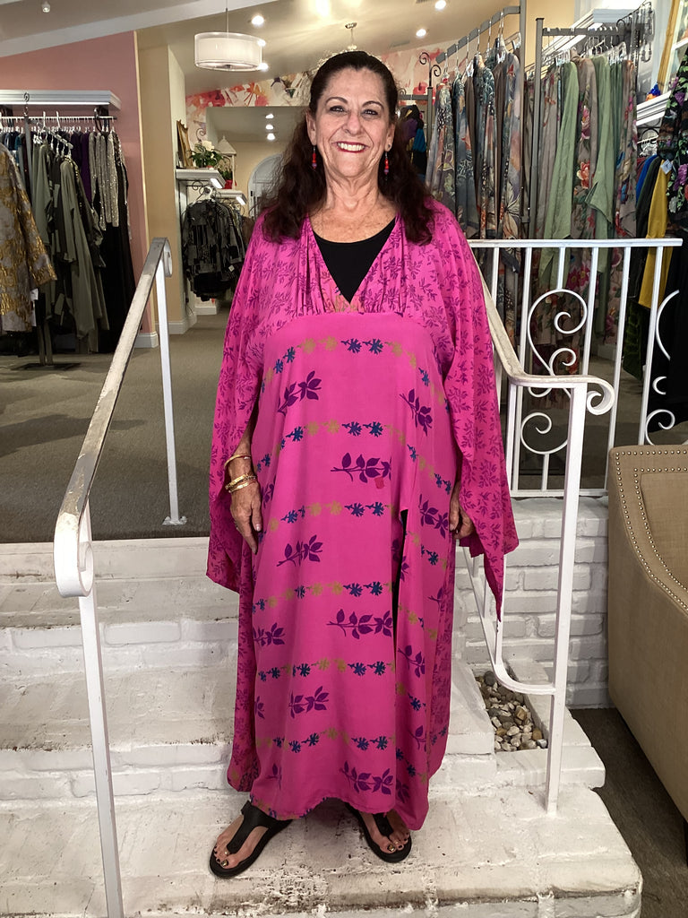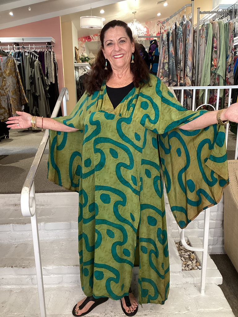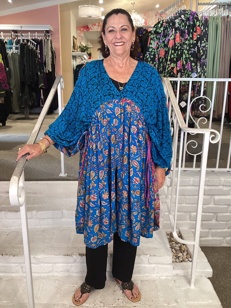 Vintage fabrics from India, truly unique and authentic combined to create these amazing art-to-wear pieces. Lightweight cotton and silk are used for these tunics, kimonos, jackets and shirts, often with KANTHA artisan hand stitching. Designers such as Kantha makes loose generous silhouettes for the Abundance woman!!