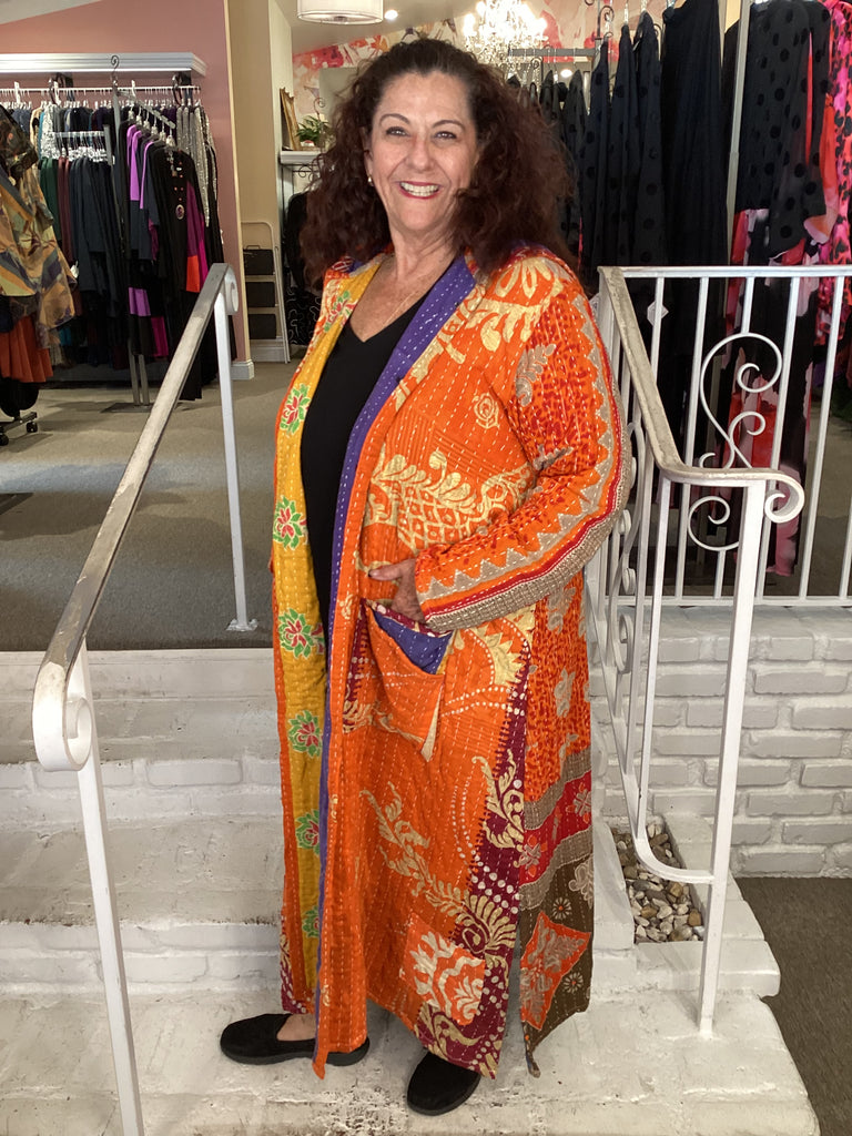 Disclosure: Our vintage styles have lived a full life before becoming the designs in our shop. Fabrics may have small threads or holes in the layers. Color inconsistency or small stains may be present. The saris are sewn together and extend the life of each design. Imperfections should be celebrated.