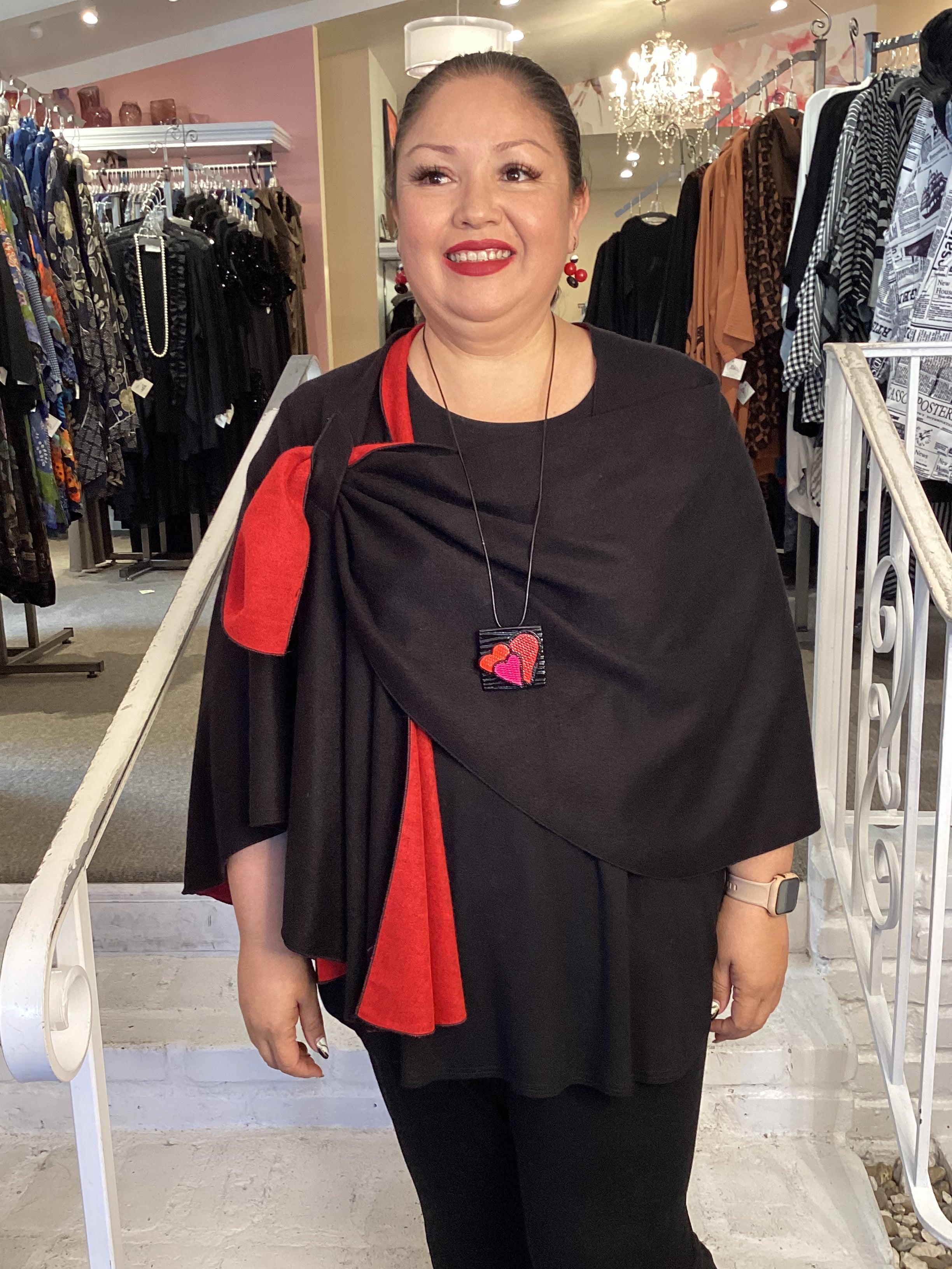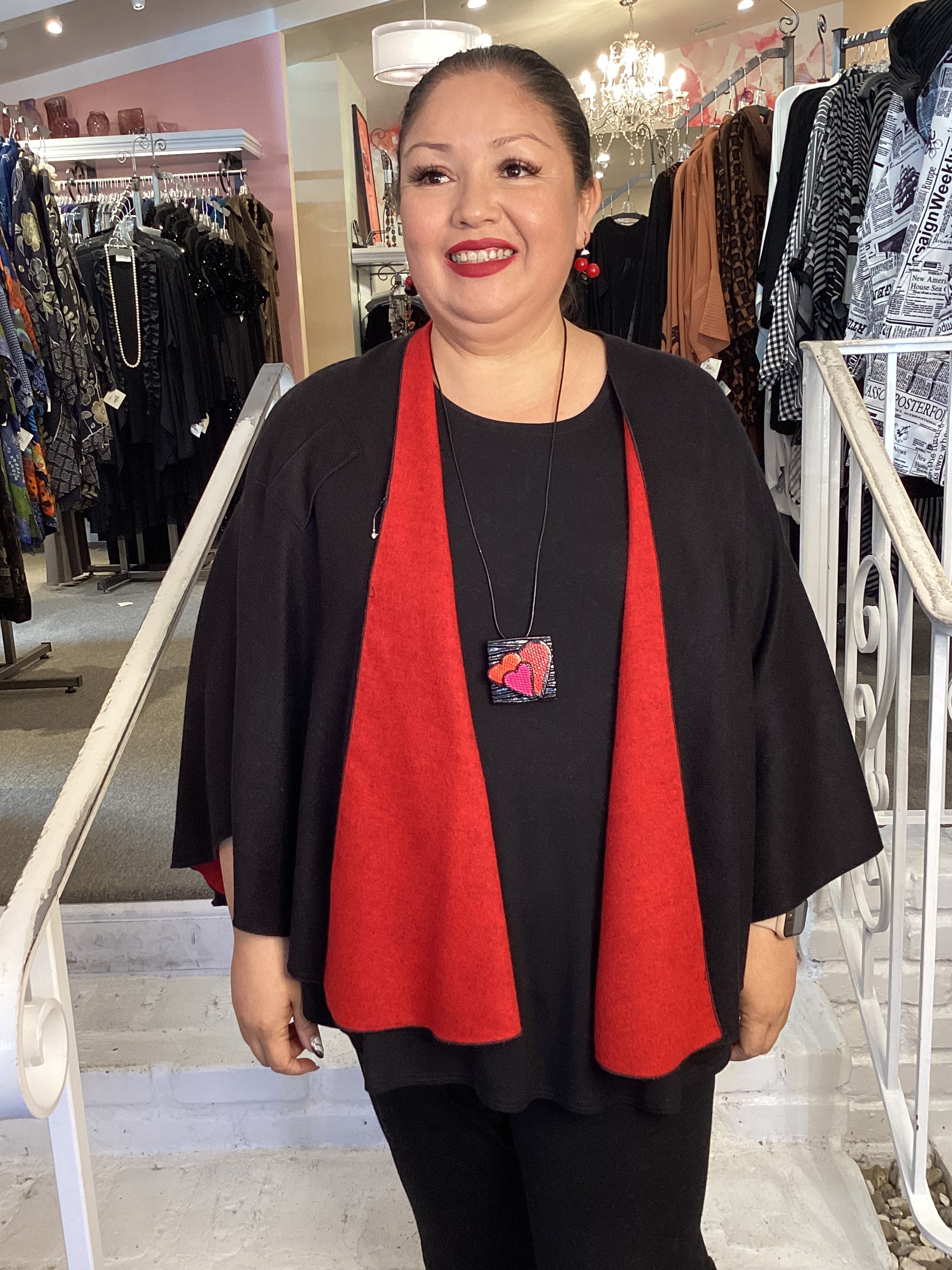 This Rapti is an exquisite cashmere shawl. Luxurious reversible wrap in rich hues can be worn open or elegantly draped by pulling one end through the ingenious loop. Makes a great gift, no guessing at sizes! Handmade and fair trade from India.