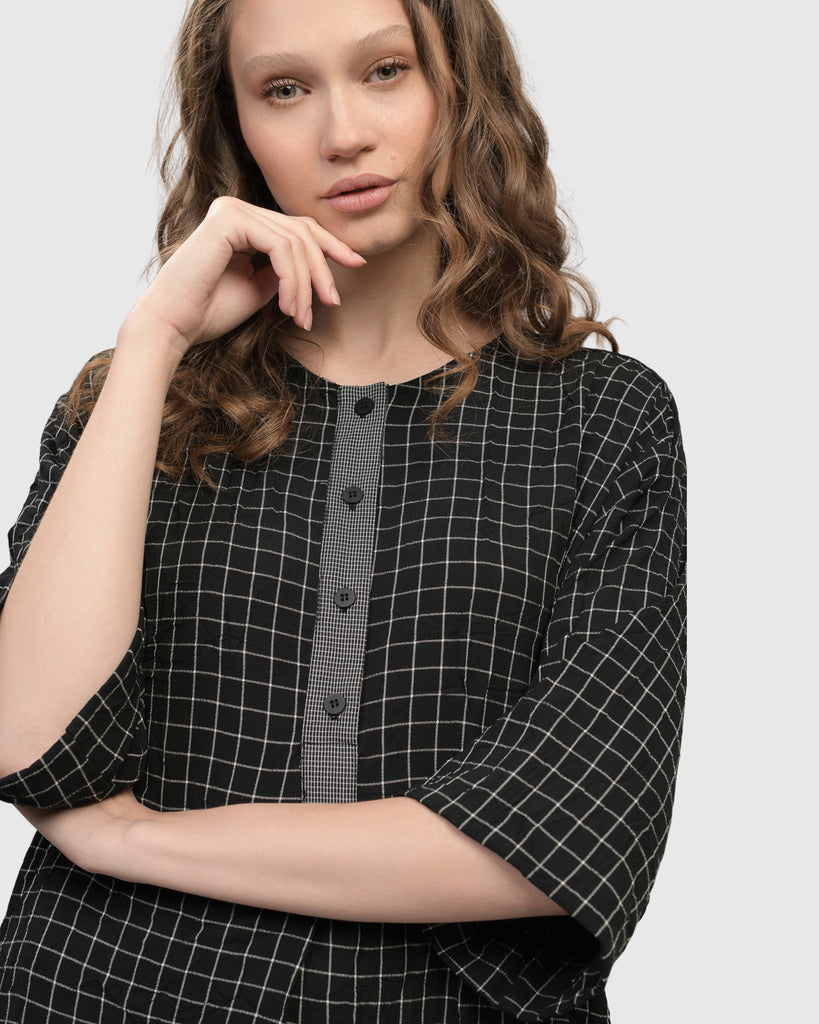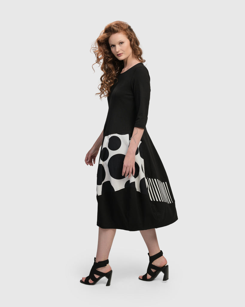 RENI DRESS - BLACK WHITE COMBO