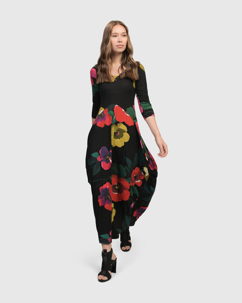 FLOWER CORDURORY DRESS - BLACK