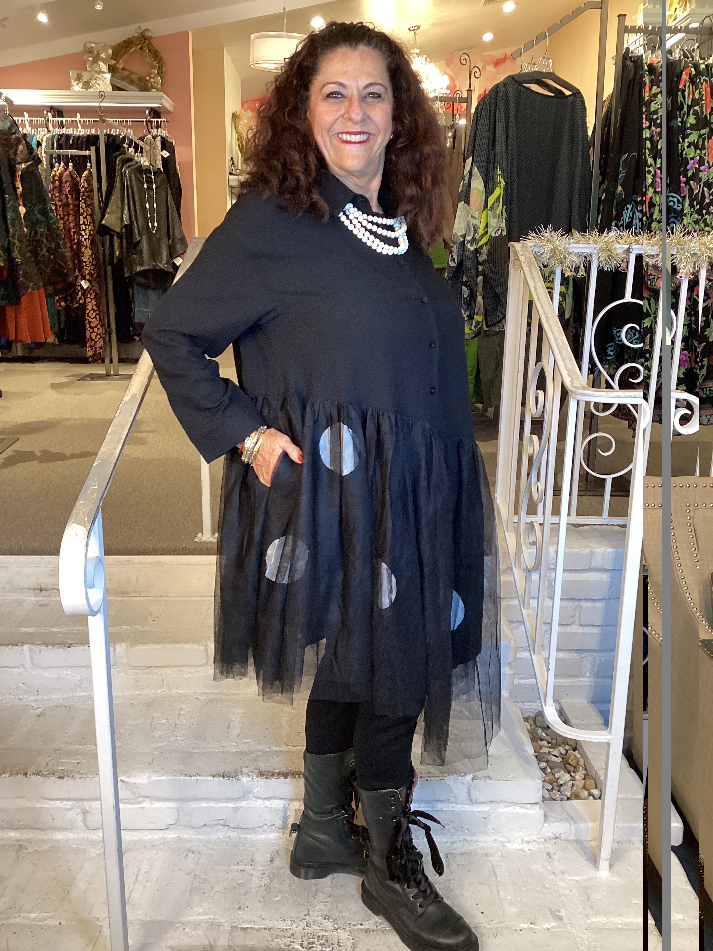 PUNK SHIRT DRESS - BLACK DOT 32651 BLK DOTS