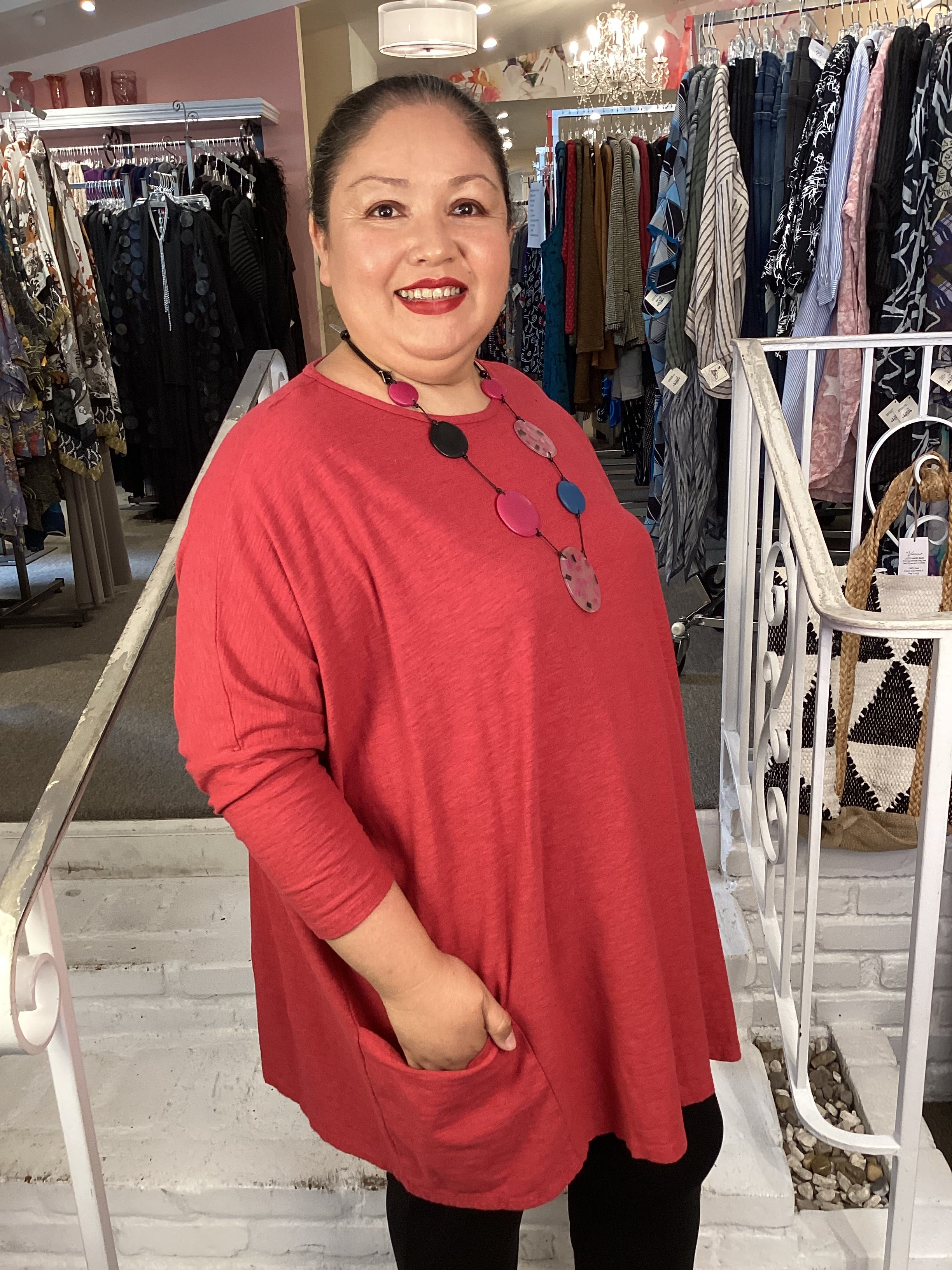 CUT LOOSE is known for their relaxed fit, natural fiber fabrics, and garment dying expertise. Cut Loose products travel well, launder well and can be mixed matched and layered to create the looks you crave. This one size tunic tee with two pockets is a little wider cut and a perfect example of a relaxed and easy to wear top.