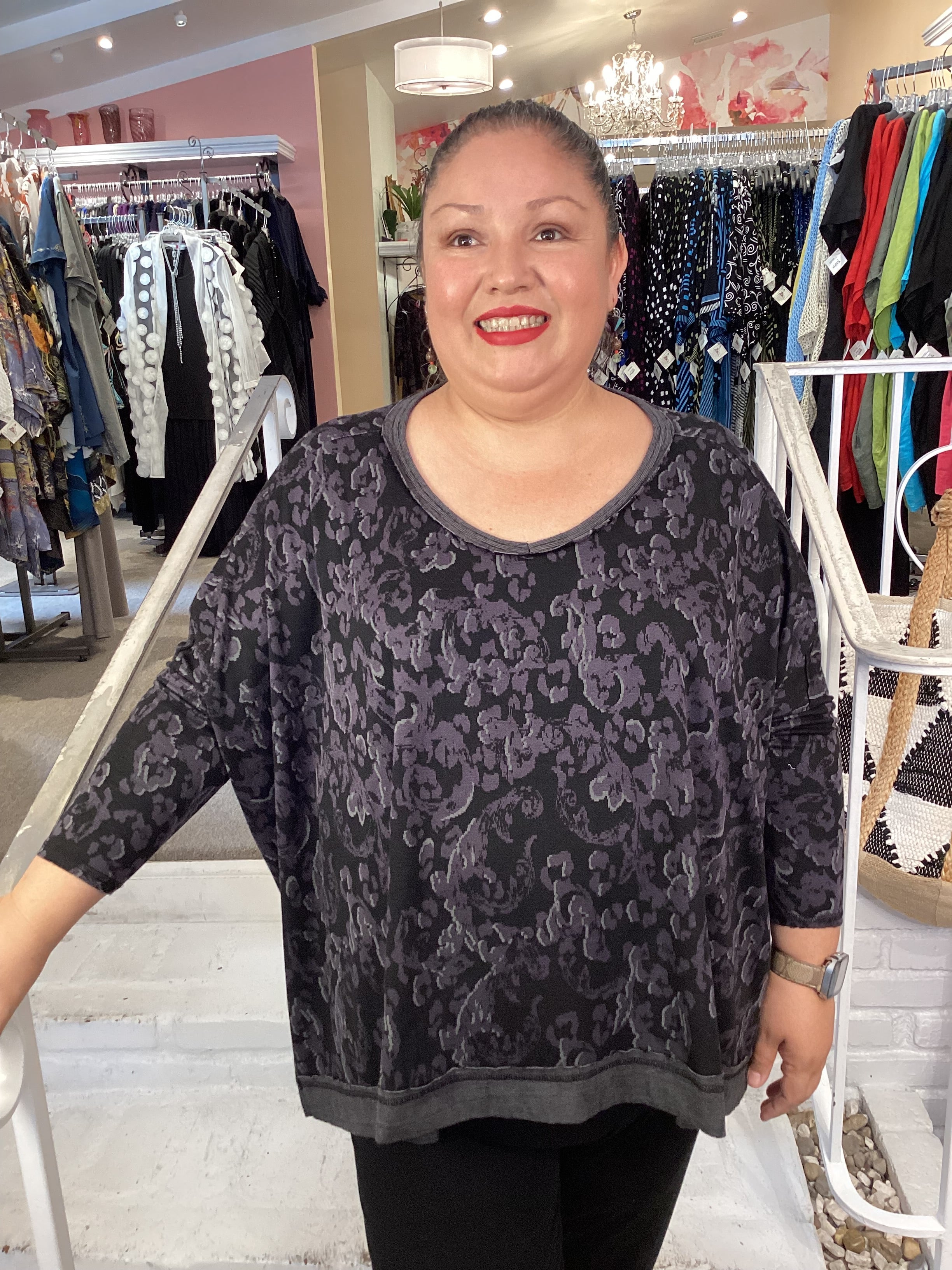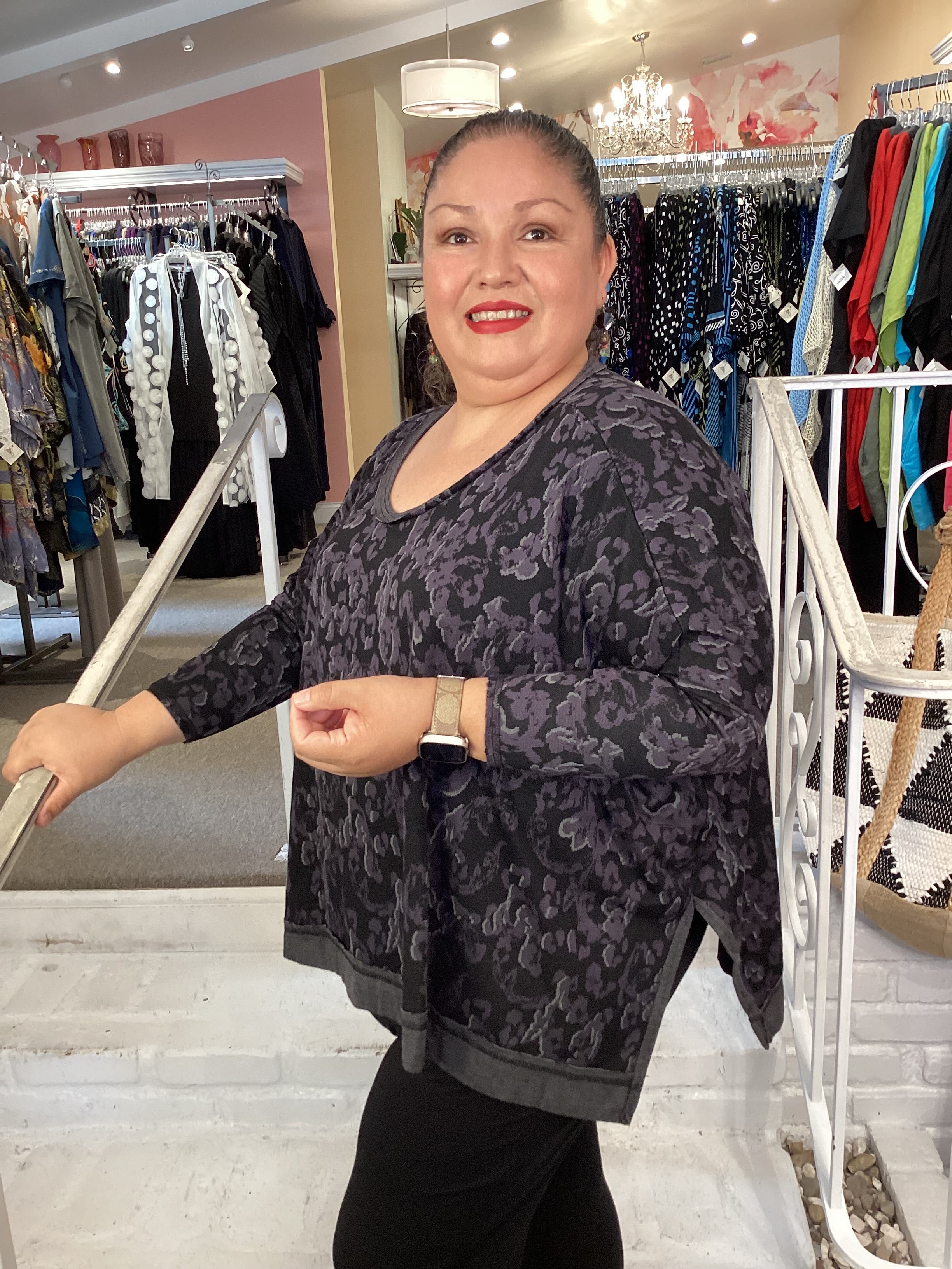 Embrace effortless style and comfort with our JACQUARD O/S V-SADDLE top! Made in cozy, knit viscose with a floral pattern, this relaxed one size top offers plenty of volume and freedom to move. Perfect for a crisp fall day, featuring a deep v-neckline, dropped shoulders, and flowy high/low hemline. Upgrade your wardrobe now!