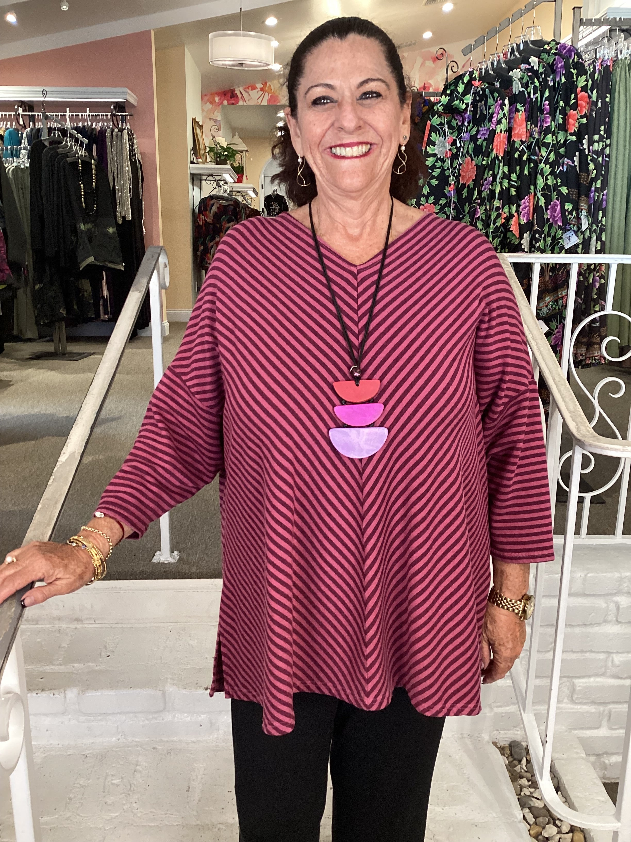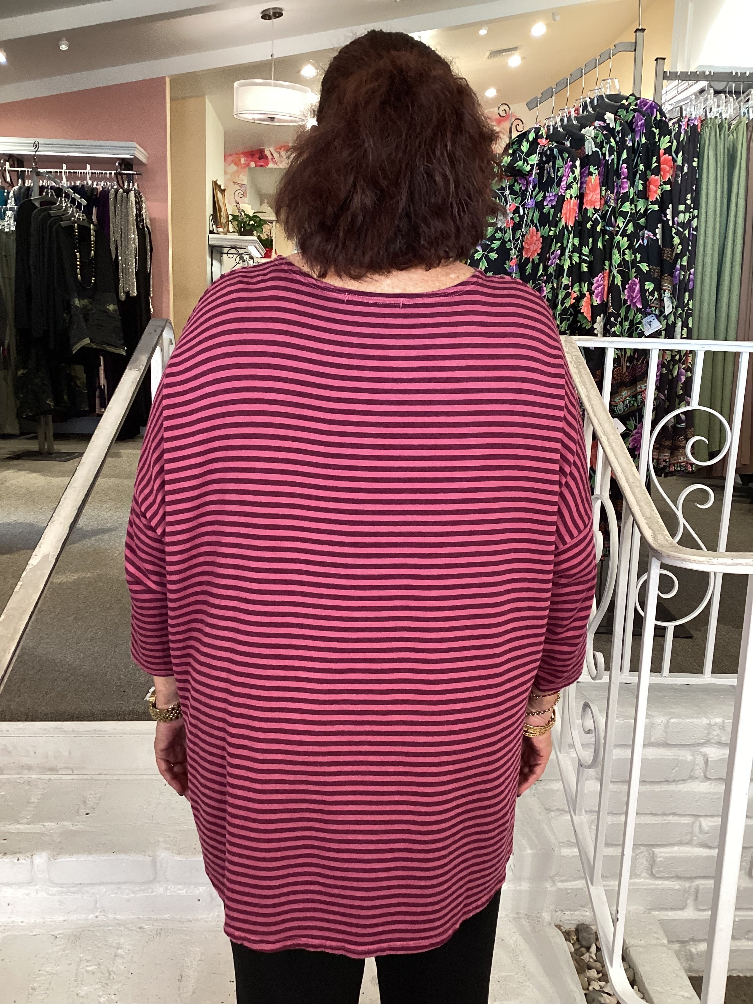 V NECK STRIPE TUNIC - RHUBARB 7136920 RHUBARB
