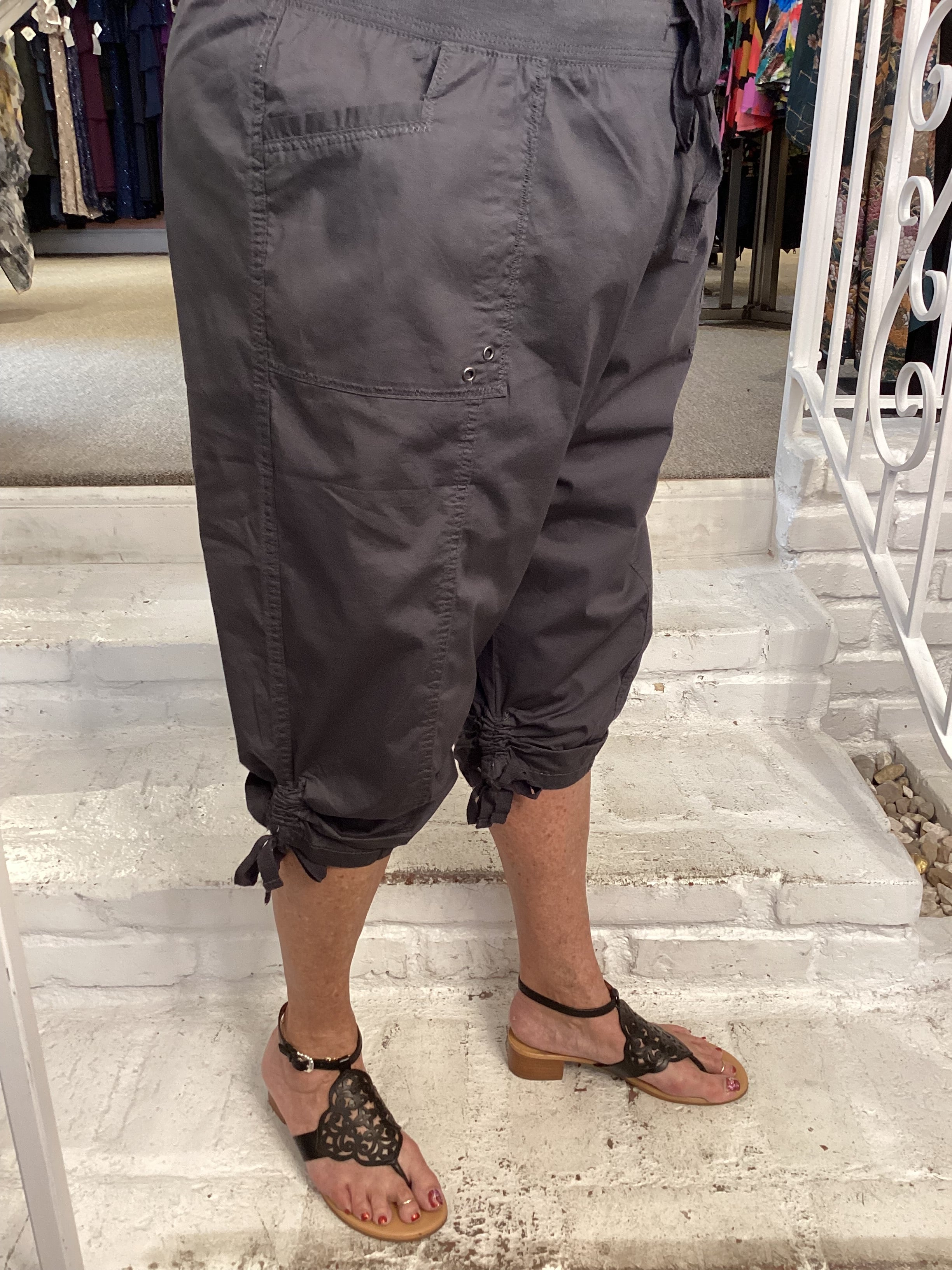 Get ready for summer with the EMMA CAPRI . This capri style pant is perfect for warm days, and the drawstring allows you to customize the length for a versatile look. The drawstring waistband also ensures a comfortable and customized fit, while the side pockets add convenience.