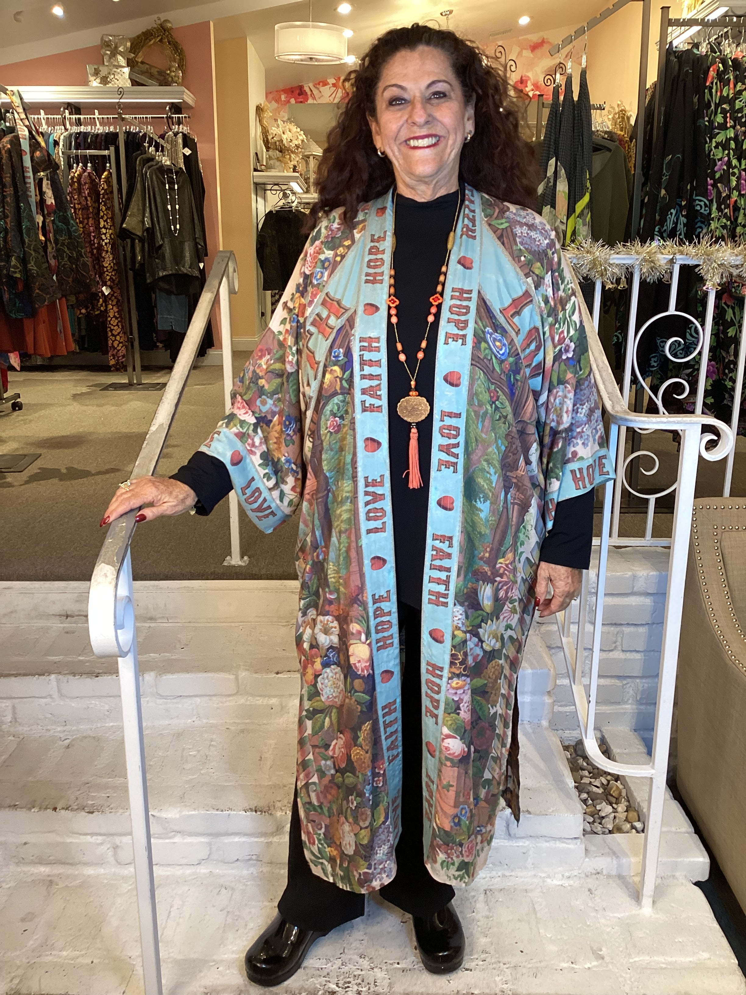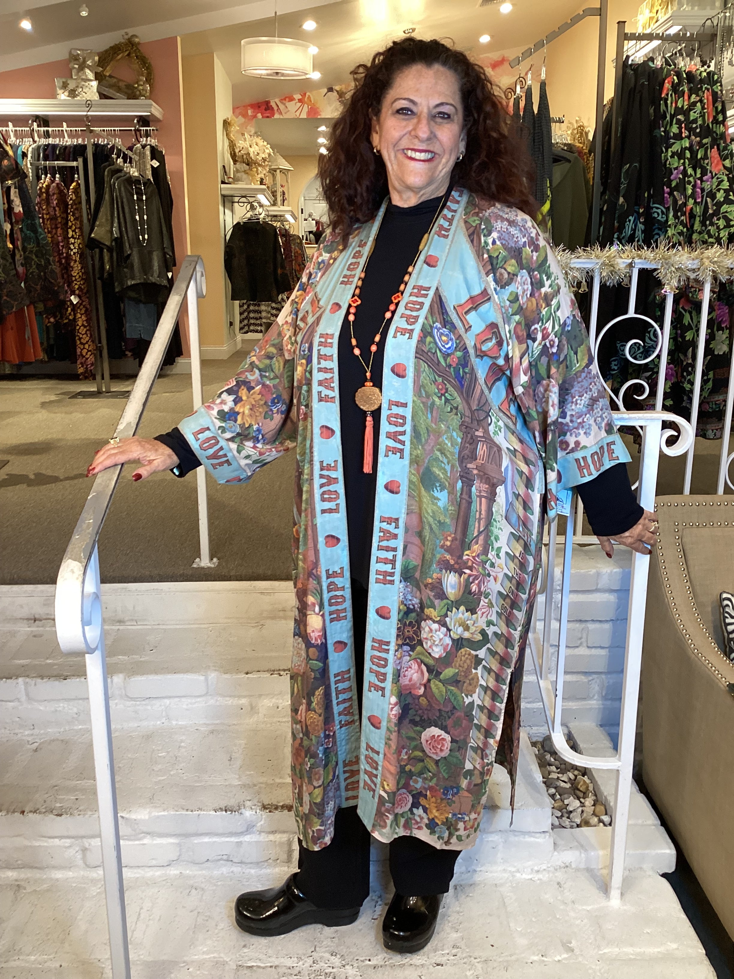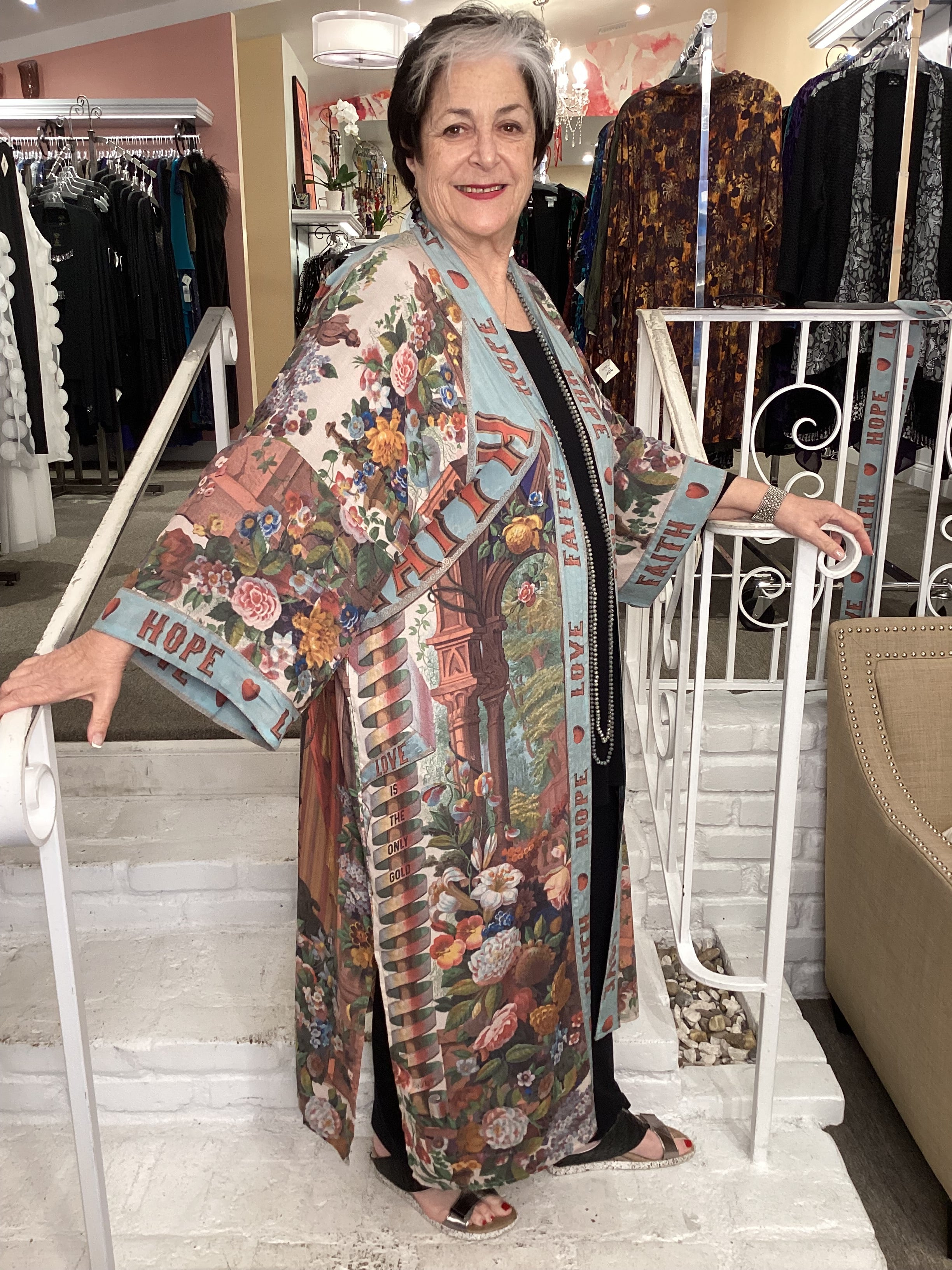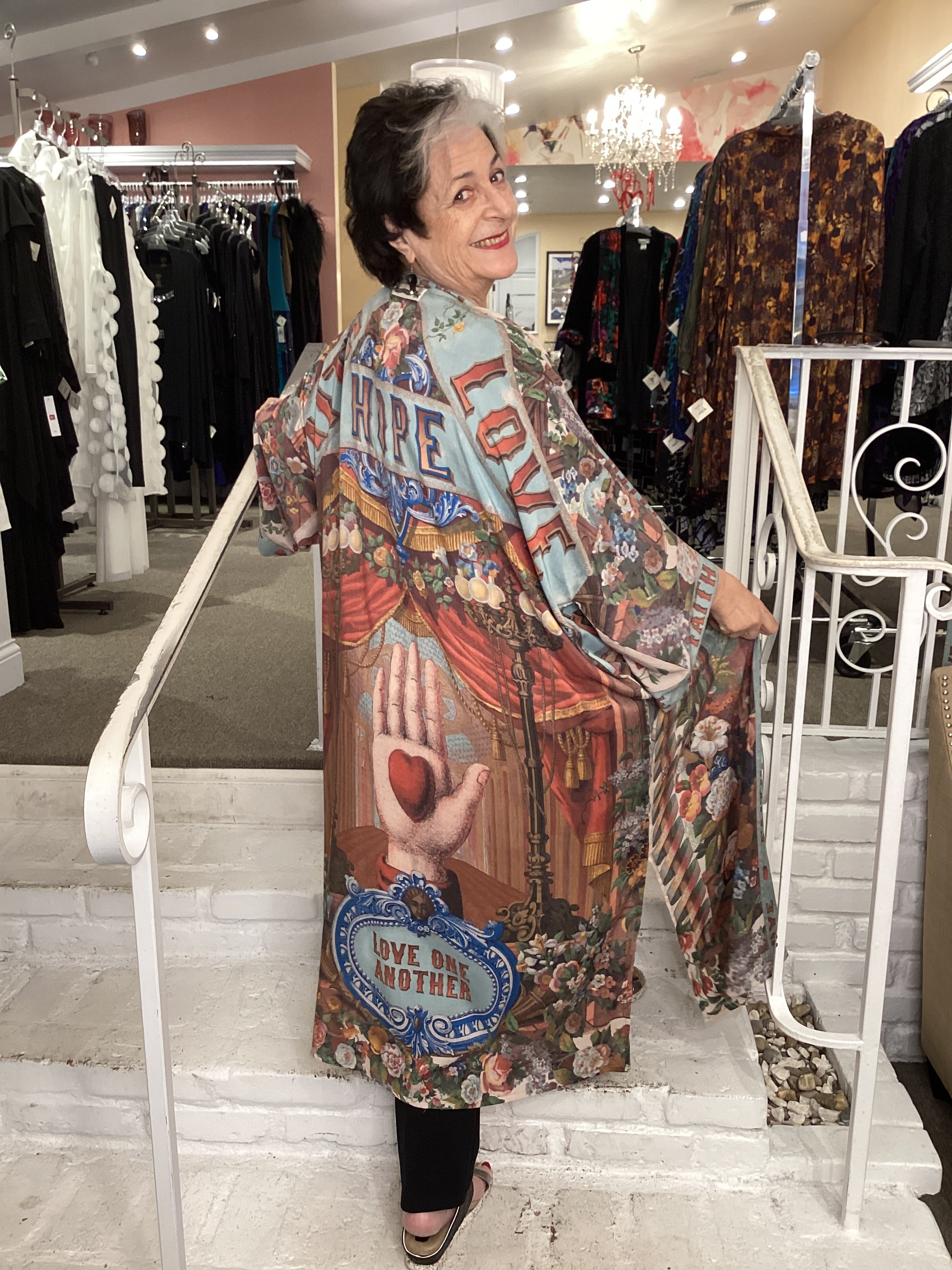 Experience the language of love with our Joyful Flowers Duster! Featuring whimsical declarations of the heart and unapologetic hope, this bohemian piece showcases hand-drawn artwork from 1854 with added elements such as the heart-in-hand symbol of kindness and messages of love. A true original to add to your wardrobe.