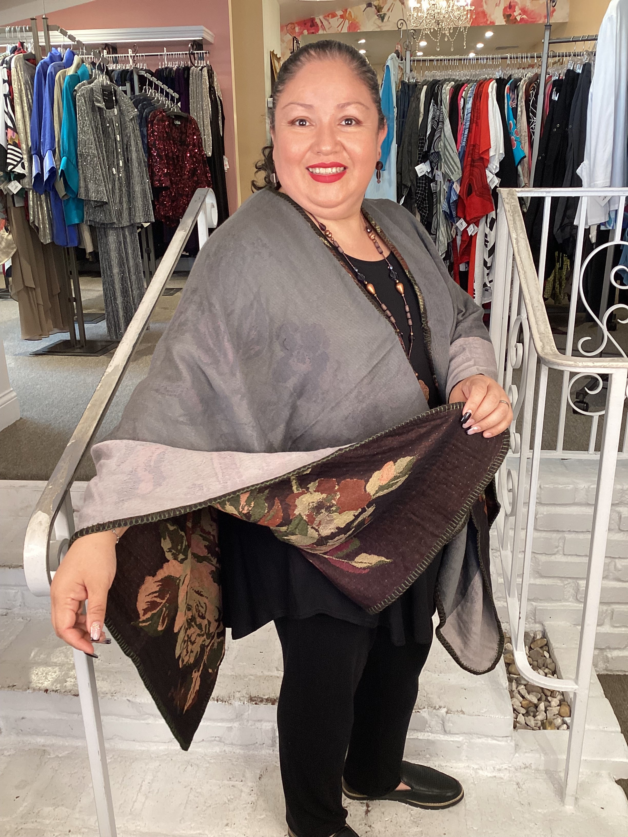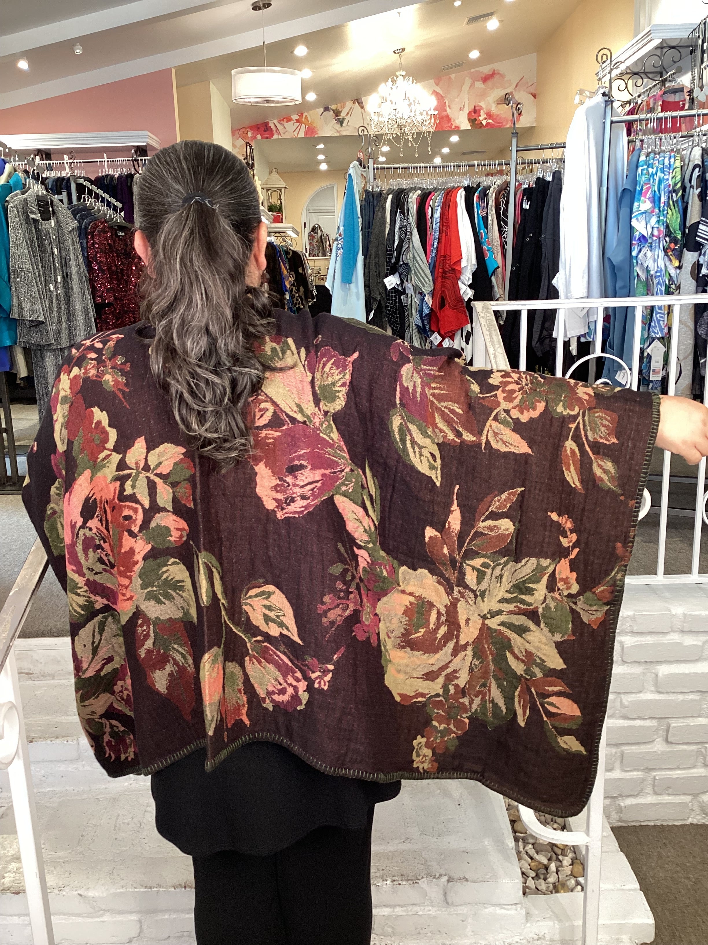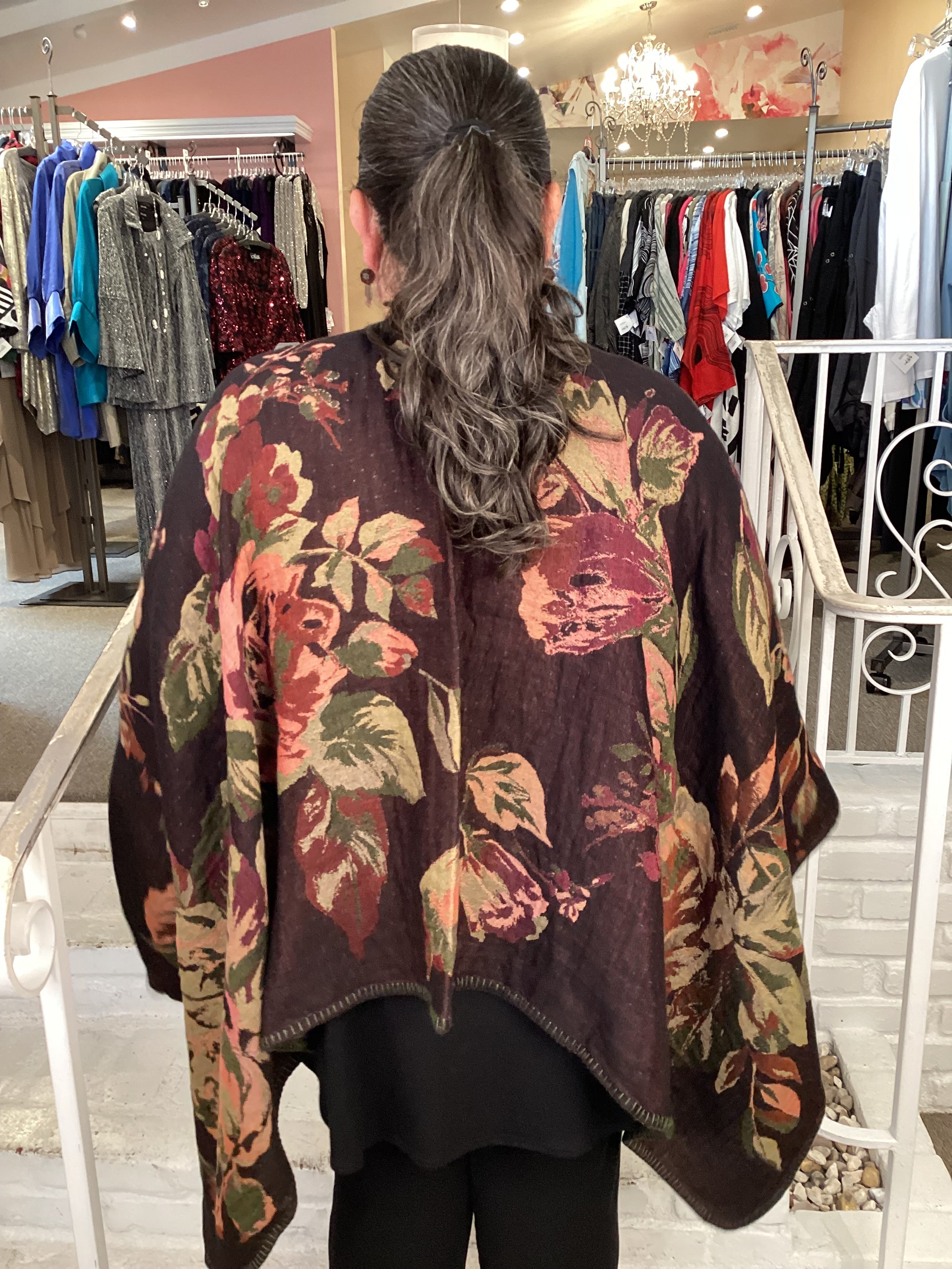 Indulge in the comfort of this generously sized, reversible jacquard kimono. Designed to wrap you in luxury during the winter months, it’s crafted from a sumptuous merino wool/cotton blend. Its split side seam ensures ease of movement, while the blanket stitch edge adds an artisanal touch. Featuring a captivating large floral design with a four-side border, embrace versatility with its inverse colored sides, allowing you to effortlessly match your ensemble to your mood. Fits up to a 3X