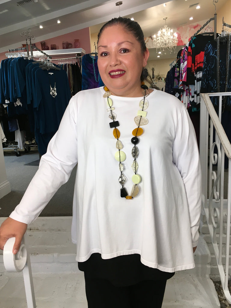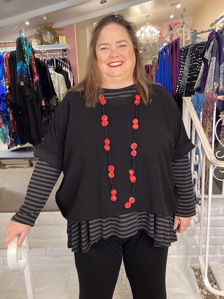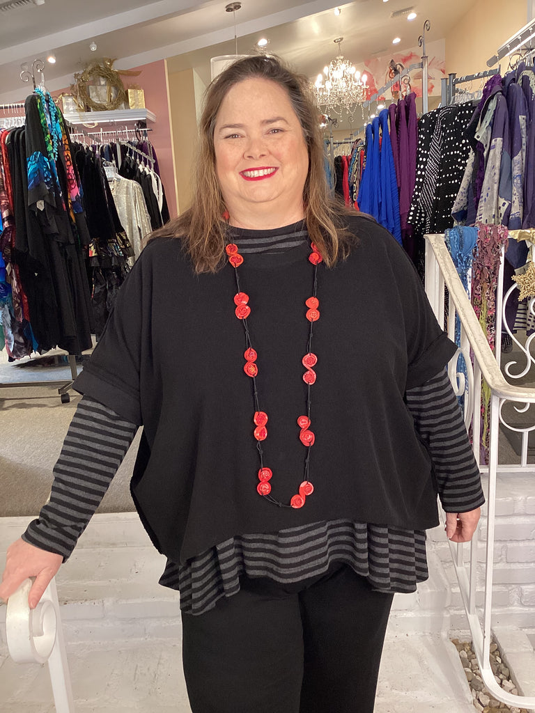 Designed and made in California. They use premium fabrics and the designs are essentials for any plus size wardrobe. Using flattering and generous silhouettes in rich seasonal colors, Eleven Stitch/North Star /Gerties provides ageless and timeless styles where you can be casual & still be elegant!