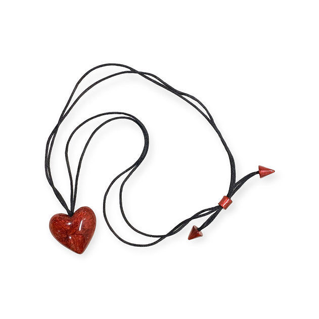 Handmade in Brazil with love, this charming red resin heart dangles from an adjustable black cord—the perfect way to wear your affection close to your heart. A playful accessory that celebrates bold color and heartfelt style.