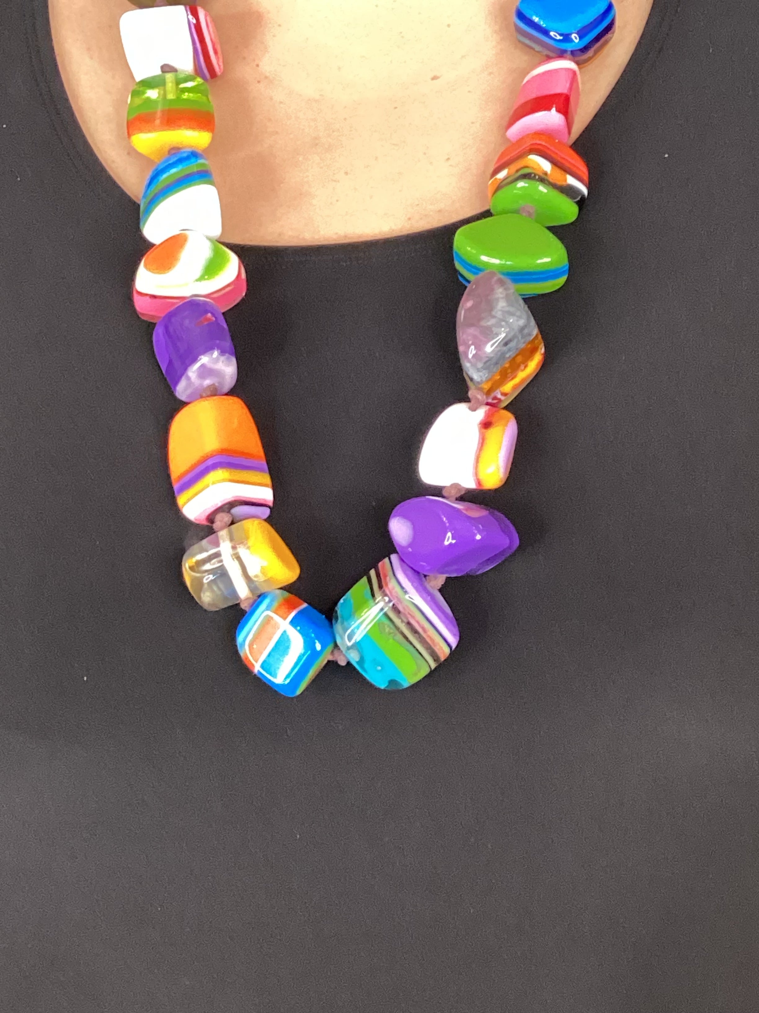 Handcrafted in Brazil, this one-of-a-kind resin piece bursts with stunning blues and greens that make every item truly unique. No two are identical, so you're getting something special that's all your own. Perfect for adding a pop of personality to your look! Each necklace is a one of a kind. No two are alike so there may be minor differences in selected elements.