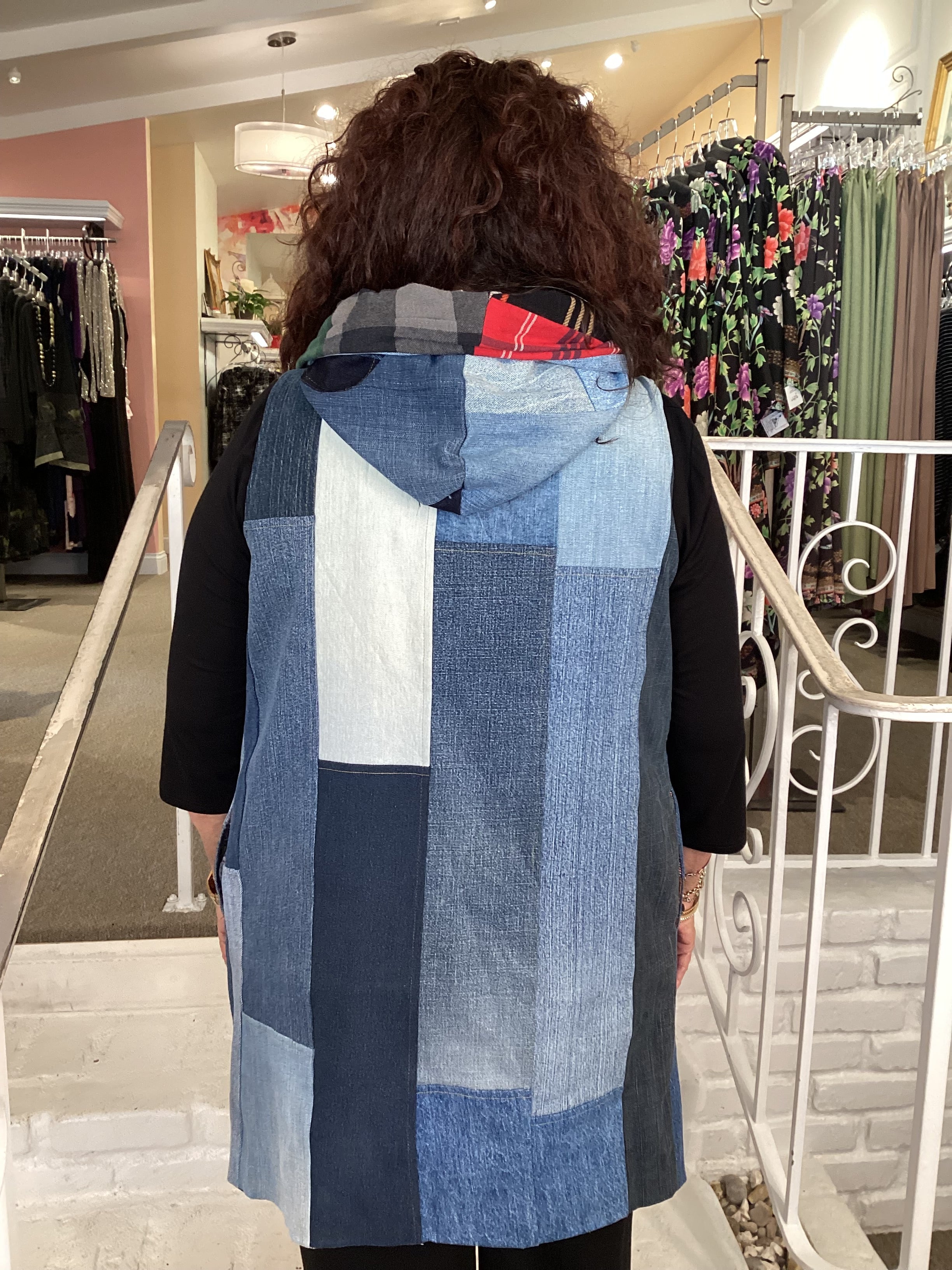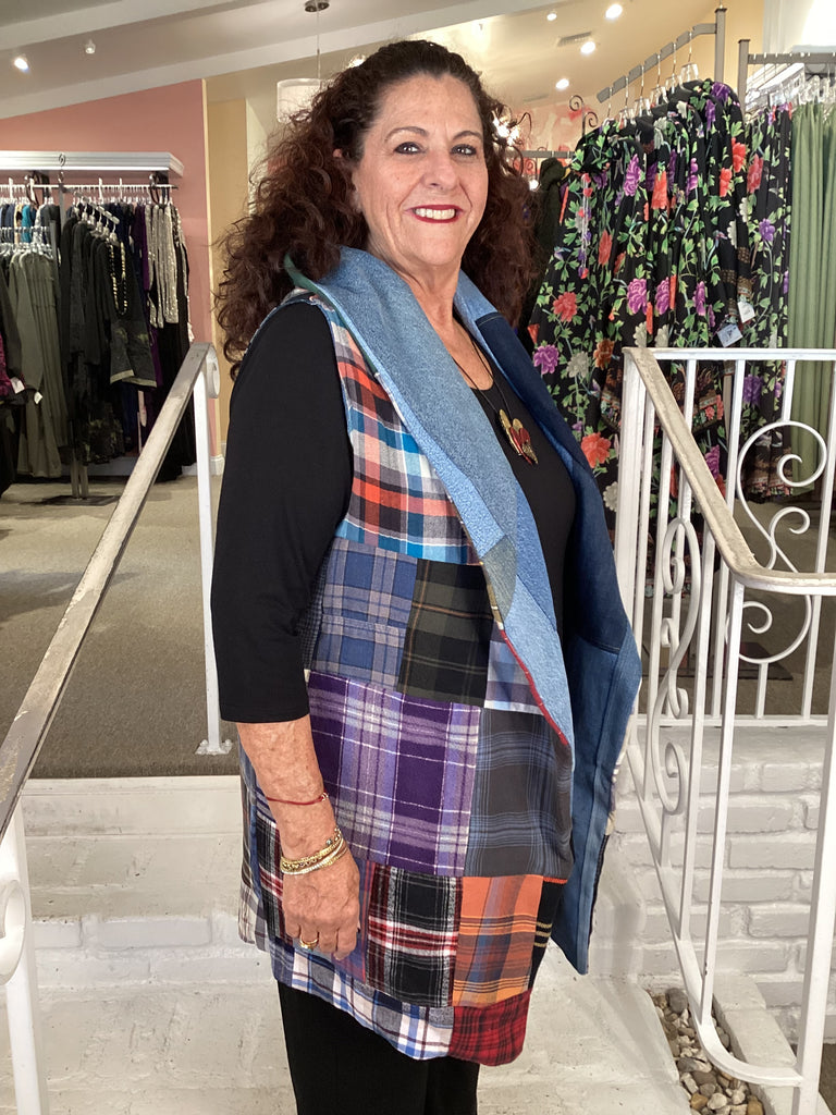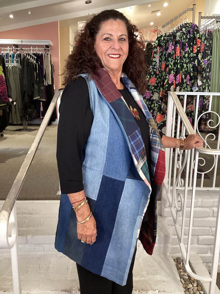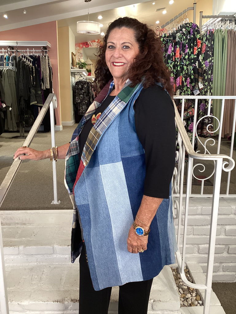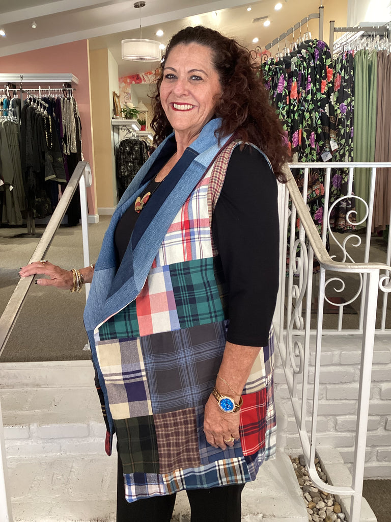 Introducing our Mountain Reversible Vest—a playful twist on sustainable style! This one-of-a-kind piece is crafted from deconstructed flannel shirts, upcycled denim, and 100% cotton handknits, giving forgotten fabrics a fabulous second life. Sleeveless and endlessly versatile, flip between two distinct looks depending on your mood. Perfect for layering, each vest is uniquely yours and keeps textile waste out of landfills. Wear it with purpose and personality.