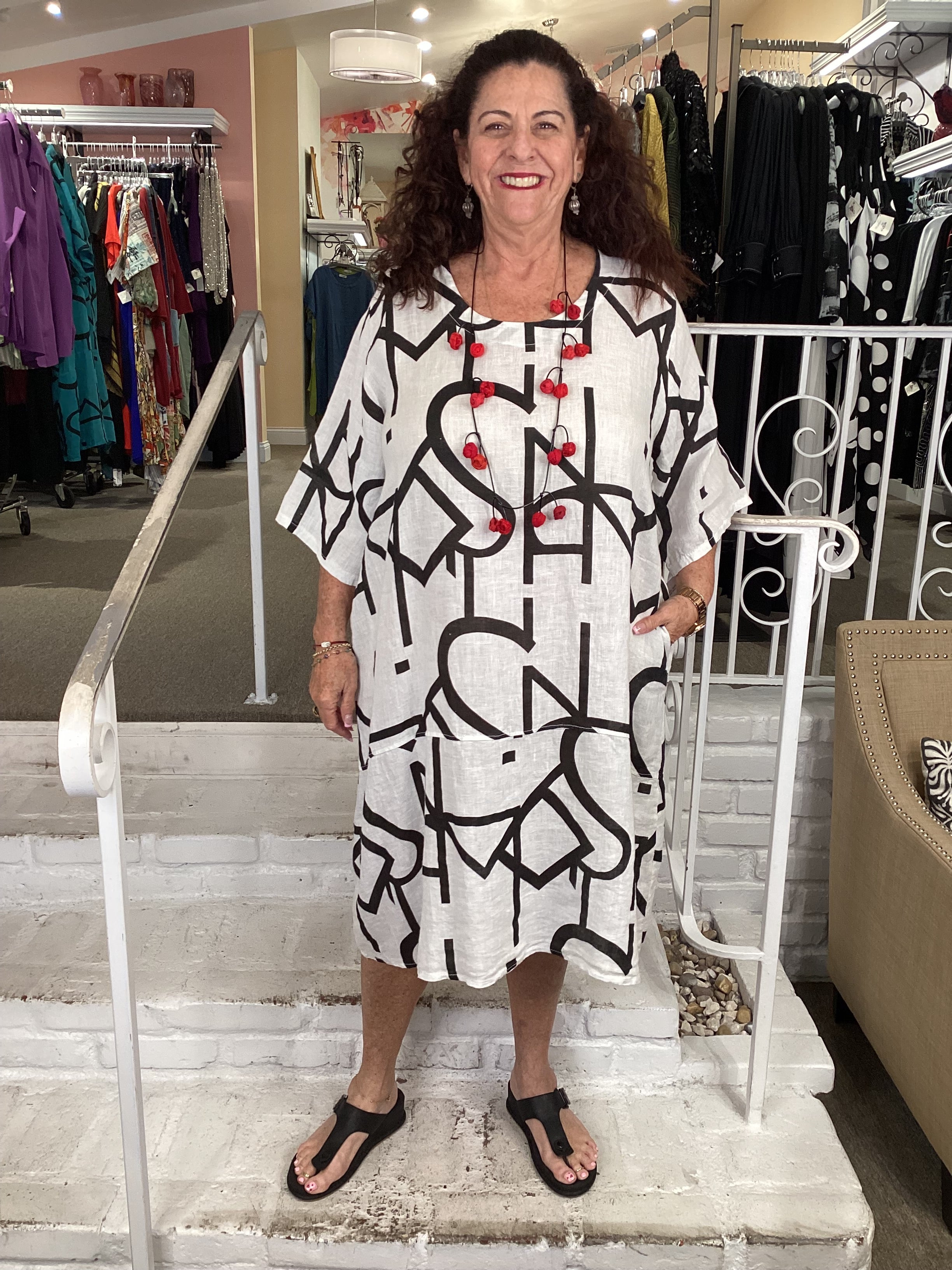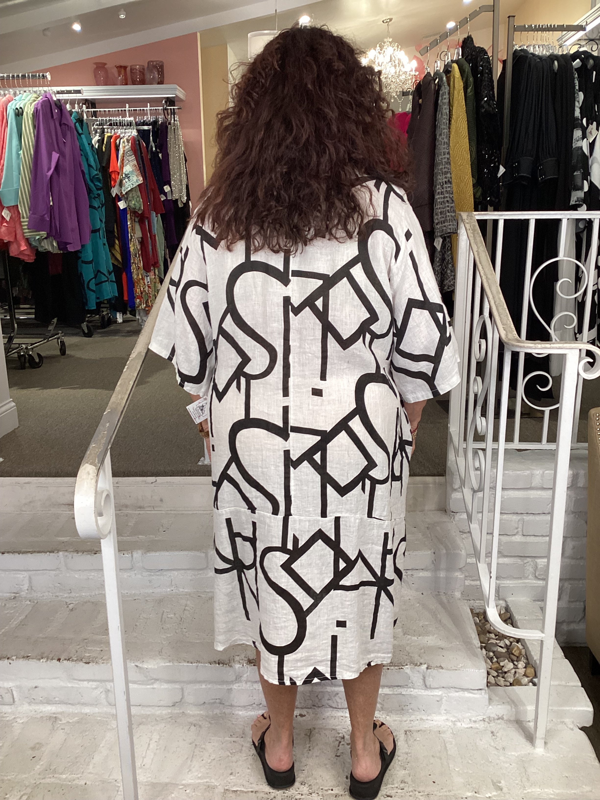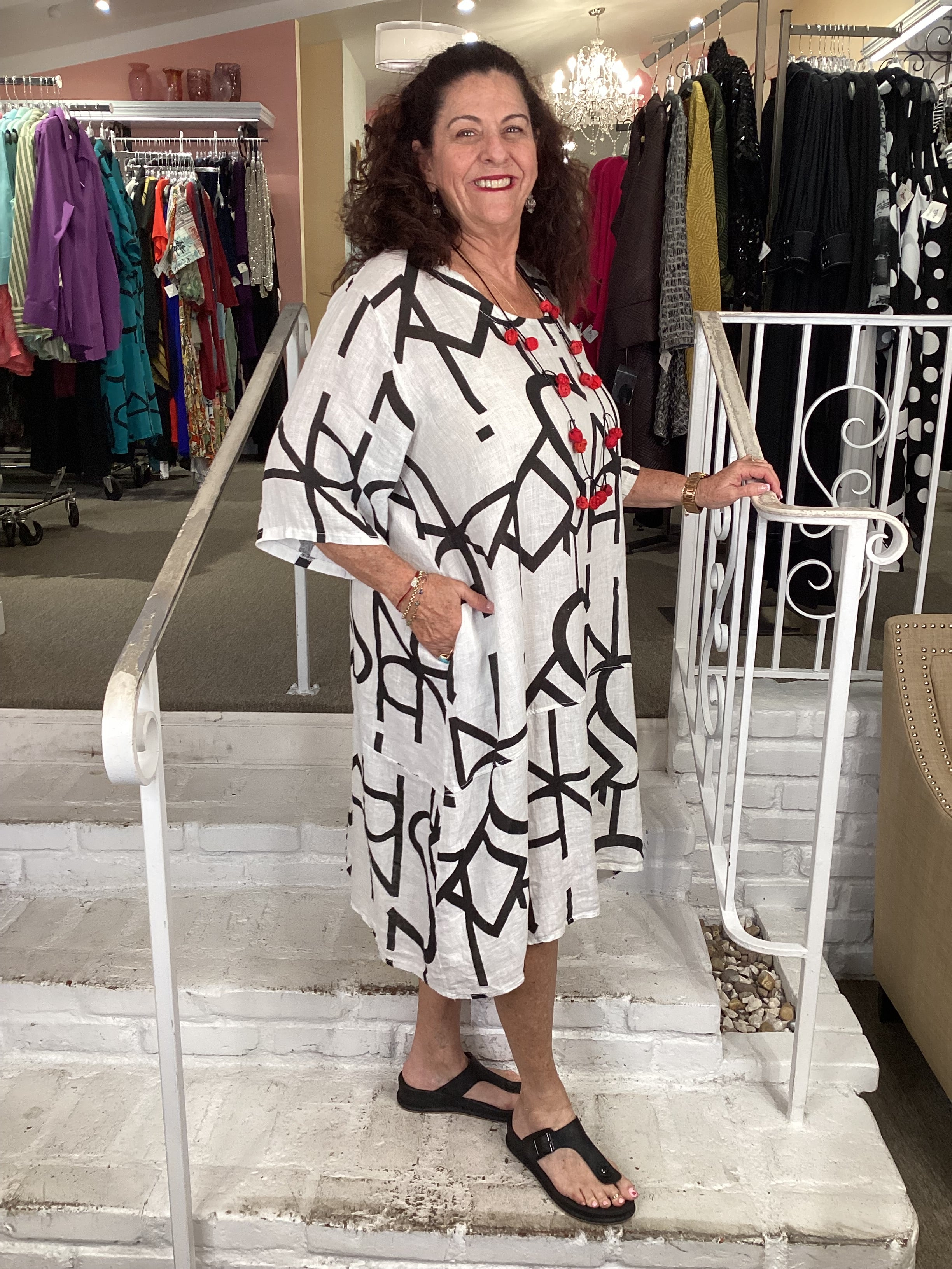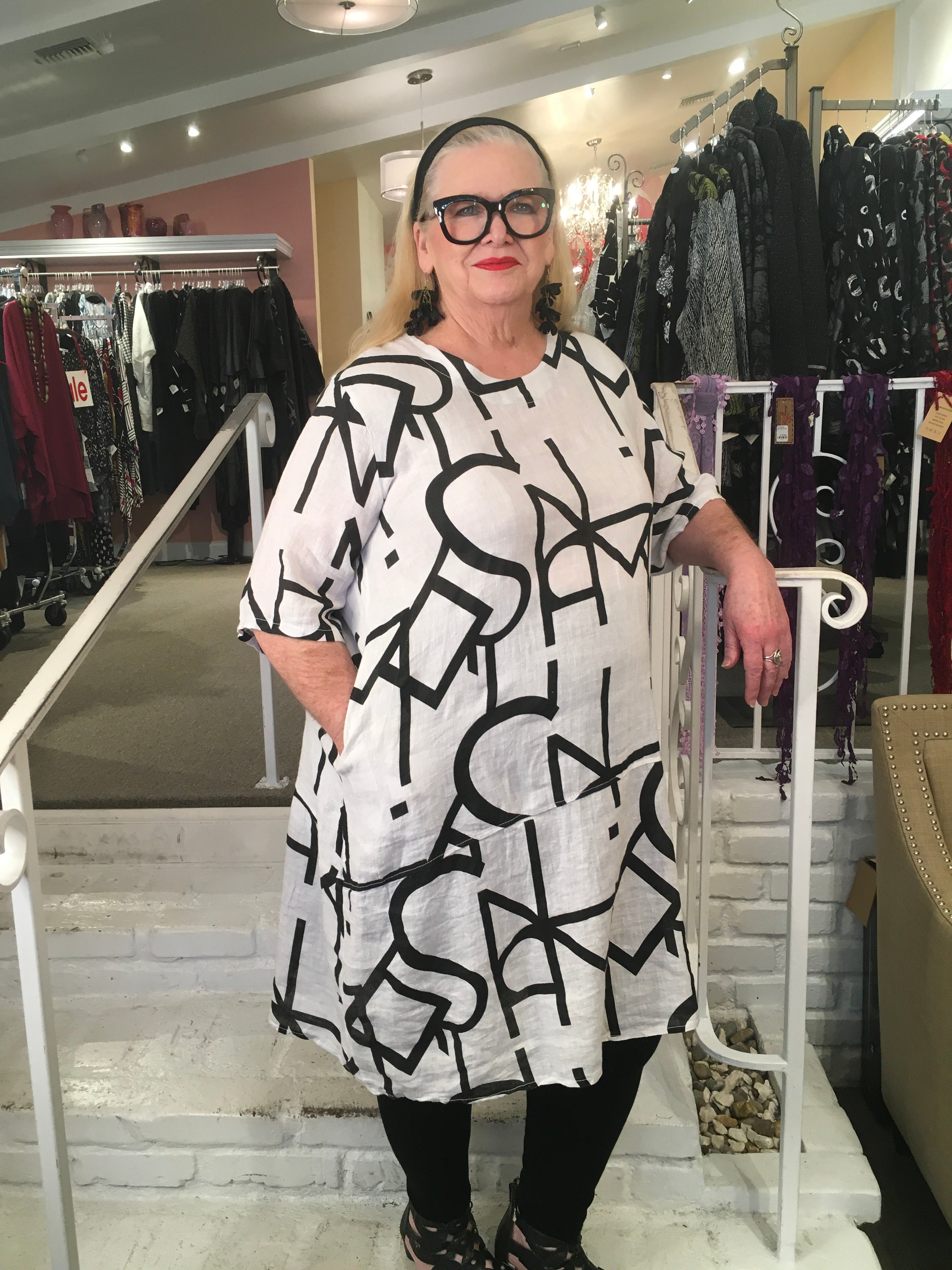 This lightweight GEO TUNIC DRESS from Transparente is perfect for adding a pop of vibrancy to your wardrobe. Constructed from breathable linen, it features an abstract letter design, scoop neck and elbow-length sleeves. Perfect for stylish everyday wear.
