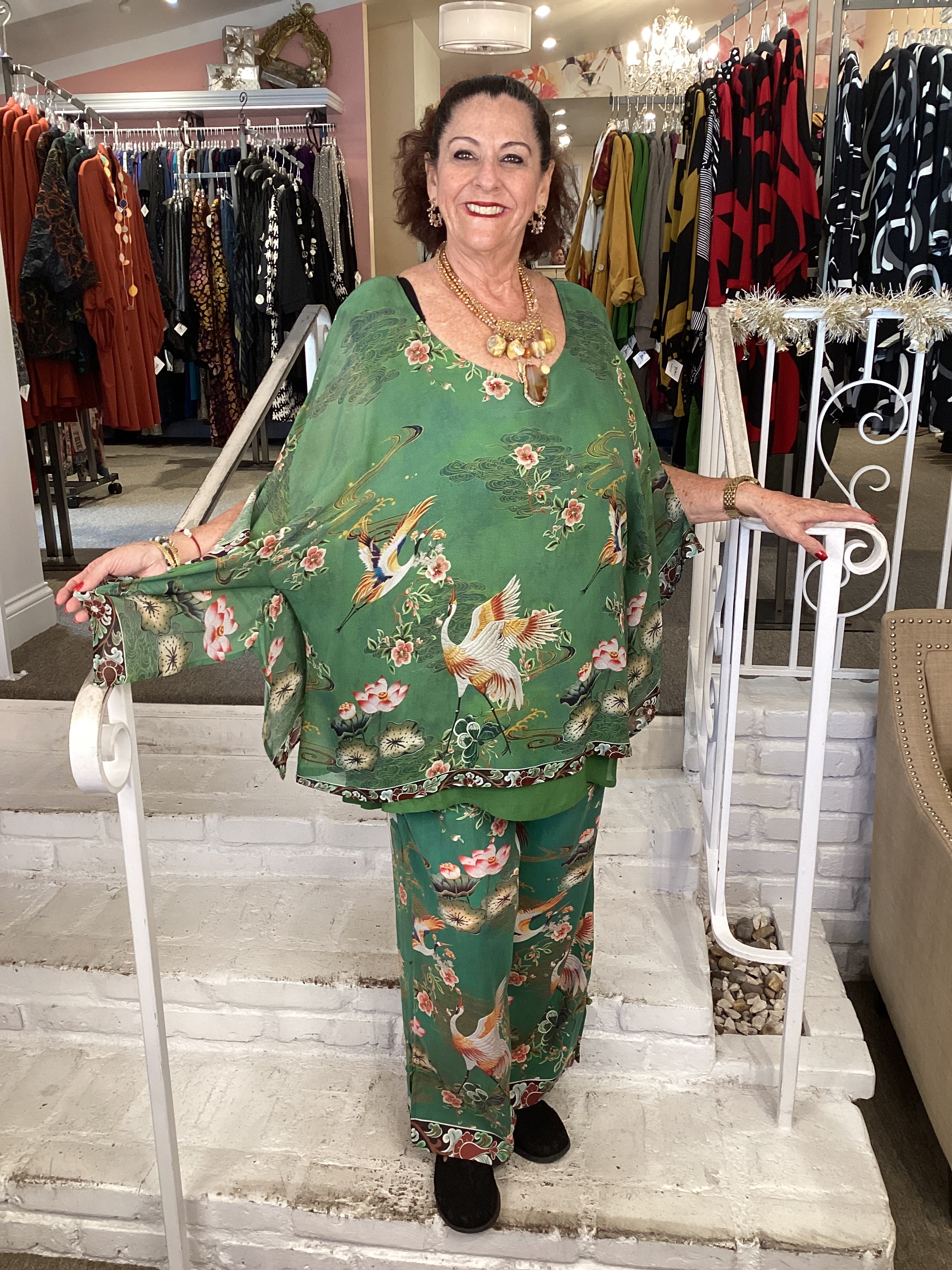 PANT-EMBROIDERY CRANES LOTUS 6734 ECL
