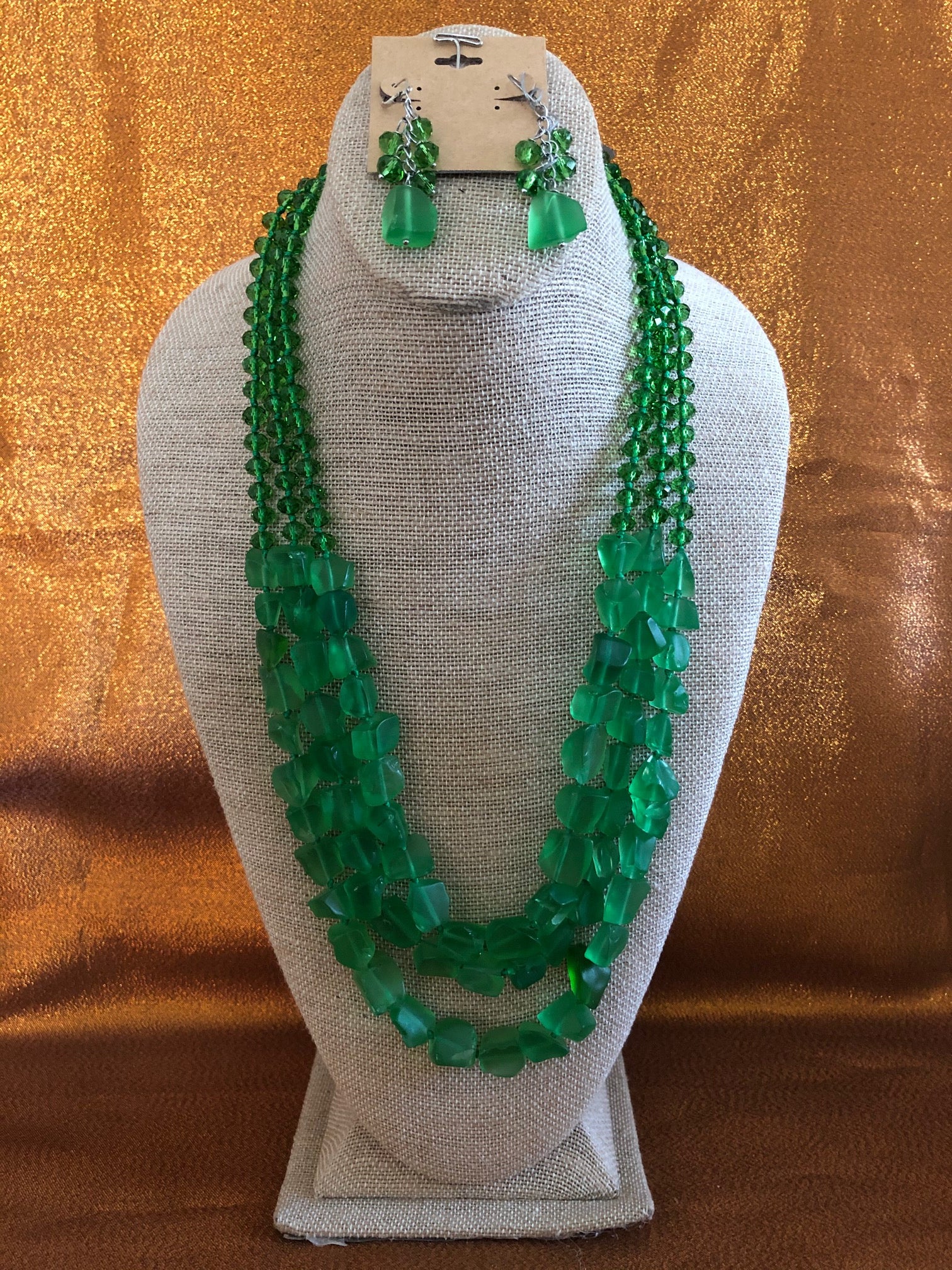 Discover the allure of the 101 X01 Green Icy, from the Rumae Gemstone collection. This exquisite ensemble features luminous icy green crystals presented in a multi-strand necklace, matching bracelet, and refined earrings. The necklace and bracelet are equipped with magnetic closures for seamless wear. Whether you select individual pieces to complement your existing collection or embrace the complete set for a cohesive statement, this versatile collection adapts to your personal style. Ideal for marking significant moments, each piece reflects the meticulous craftsmanship and timeless sophistication that defines Rumae's design philosophy.