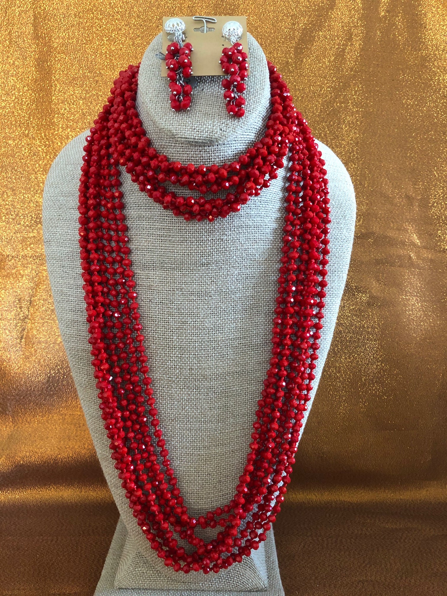 Introduce timeless elegance to your wardrobe with the Red Crystal collection by Rumae. This refined jewelry set pairs brilliant red crystals across a necklace, bracelet, and matching earrings, each piece designed with meticulous attention to detail. The necklace and bracelet both incorporate magnetic fasteners for seamless, comfortable wear. Layer the pieces together for maximum impact or select individual items to enhance your existing style. Expertly crafted and designed in Los Angeles.