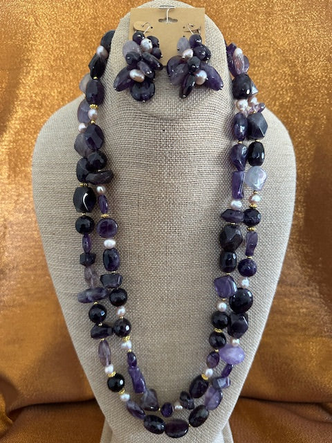 Introducing the 109 F25 Purp Amethyst from the Rumae Gemstone collection—a thoughtfully curated trio that celebrates your individuality. This enchanting set features a multi-strand necklace, coordinating bracelet, and delicate earrings, all showcasing the calming beauty of amethyst gemstones. Both the necklace and bracelet feature convenient magnetic closures for effortless styling. Mix and match each piece to enhance your existing wardrobe, or wear them together for a harmonious, put-together aesthetic. Crafted with care in Los Angeles.