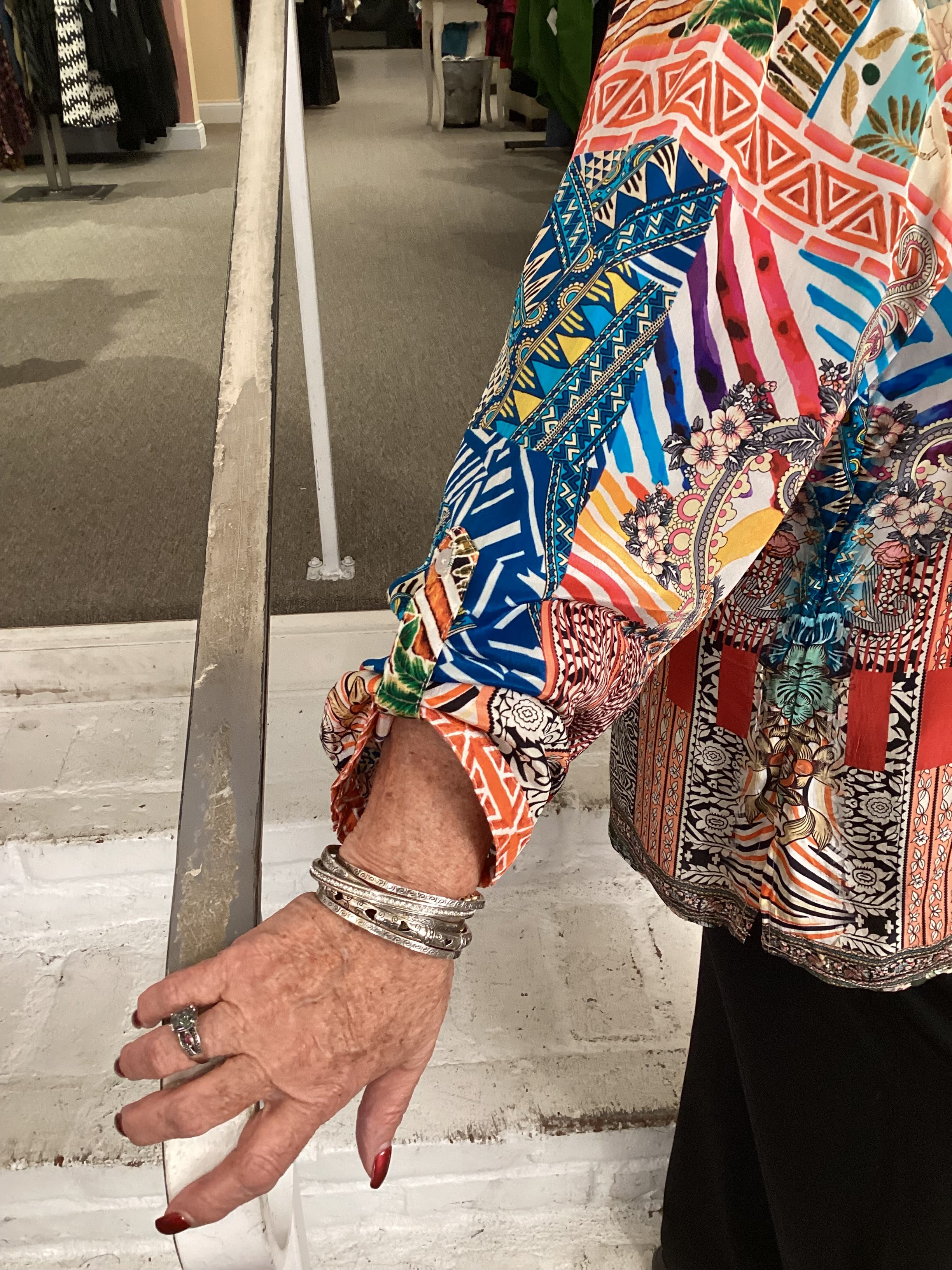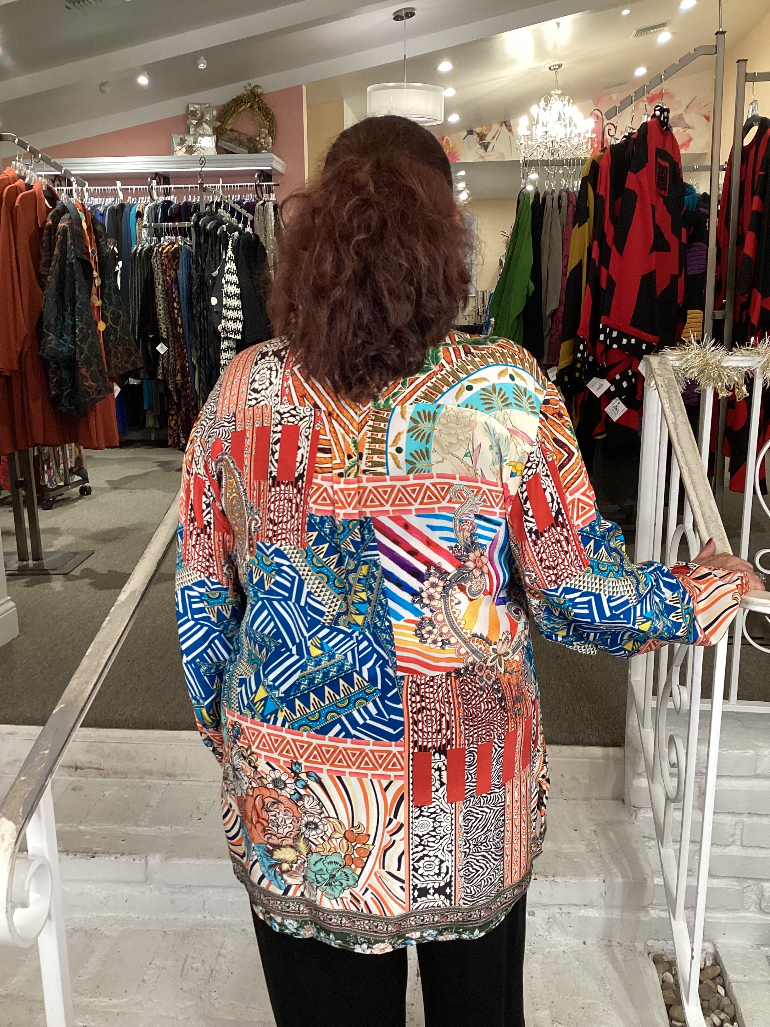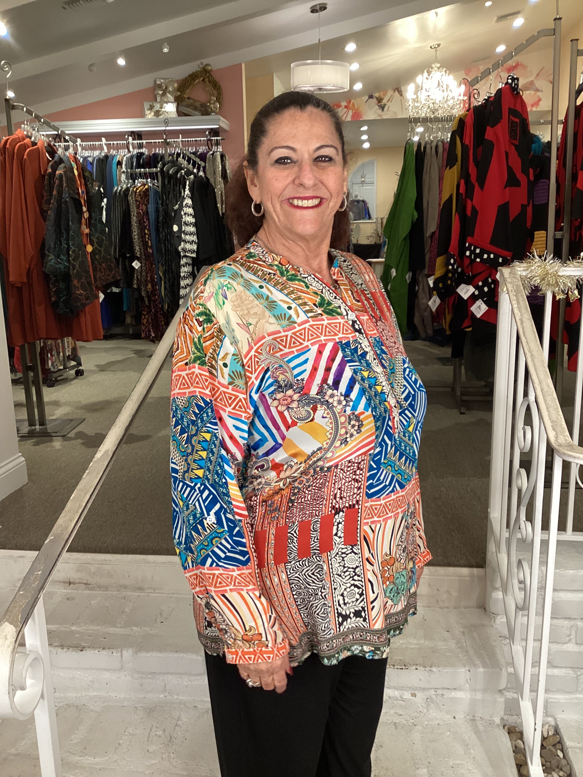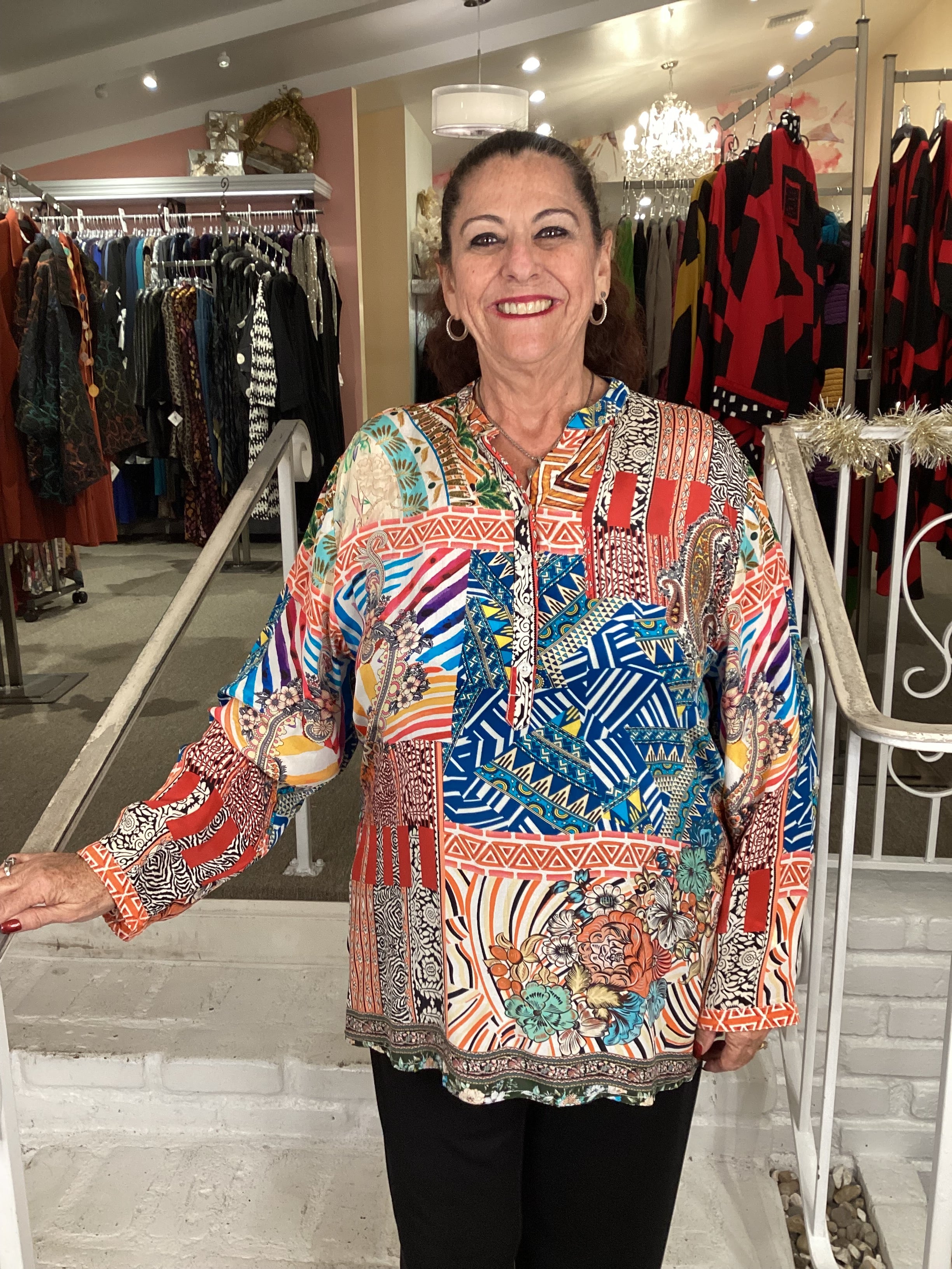 Enjoy the lightweight comfort and style of Shana's silky viscose shirts, long sleeve, button front and traditional collar. These tops always have the season's best and most colorful prints! Model is wearing XXL.