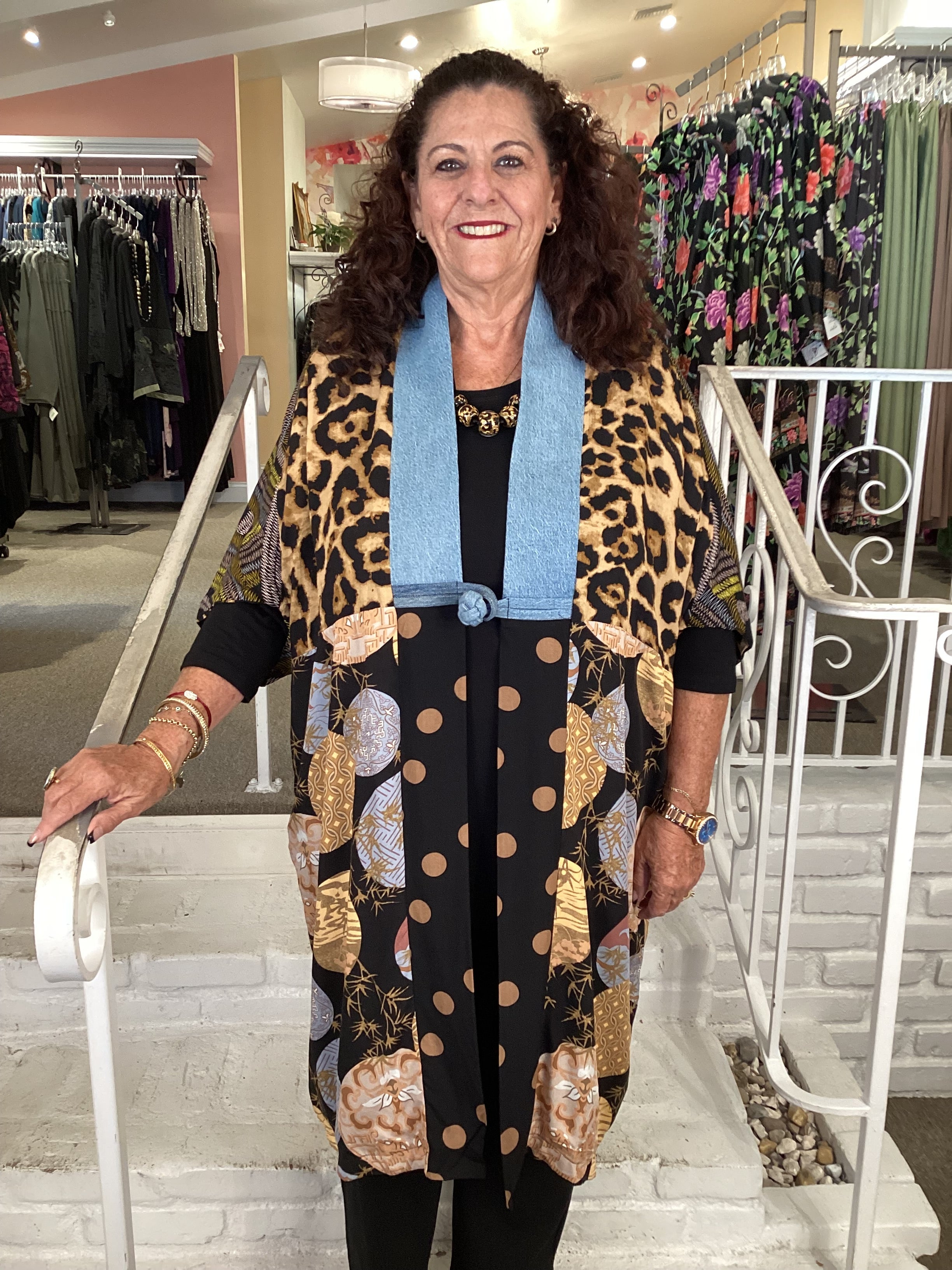 The prints are limited in runs to be mindful of limiting waste. We have combined deconstructed denim and upcycled them into many of the designs, this diverts it from the landfills and gives it new life. Our cotton poplin is a simple fabric with stretch. It is versatile, very breathable with a luxurious sheen that doesn’t lock in the heat. Each piece has been cut to order and all the buttons are sewn on by hand , one by one.