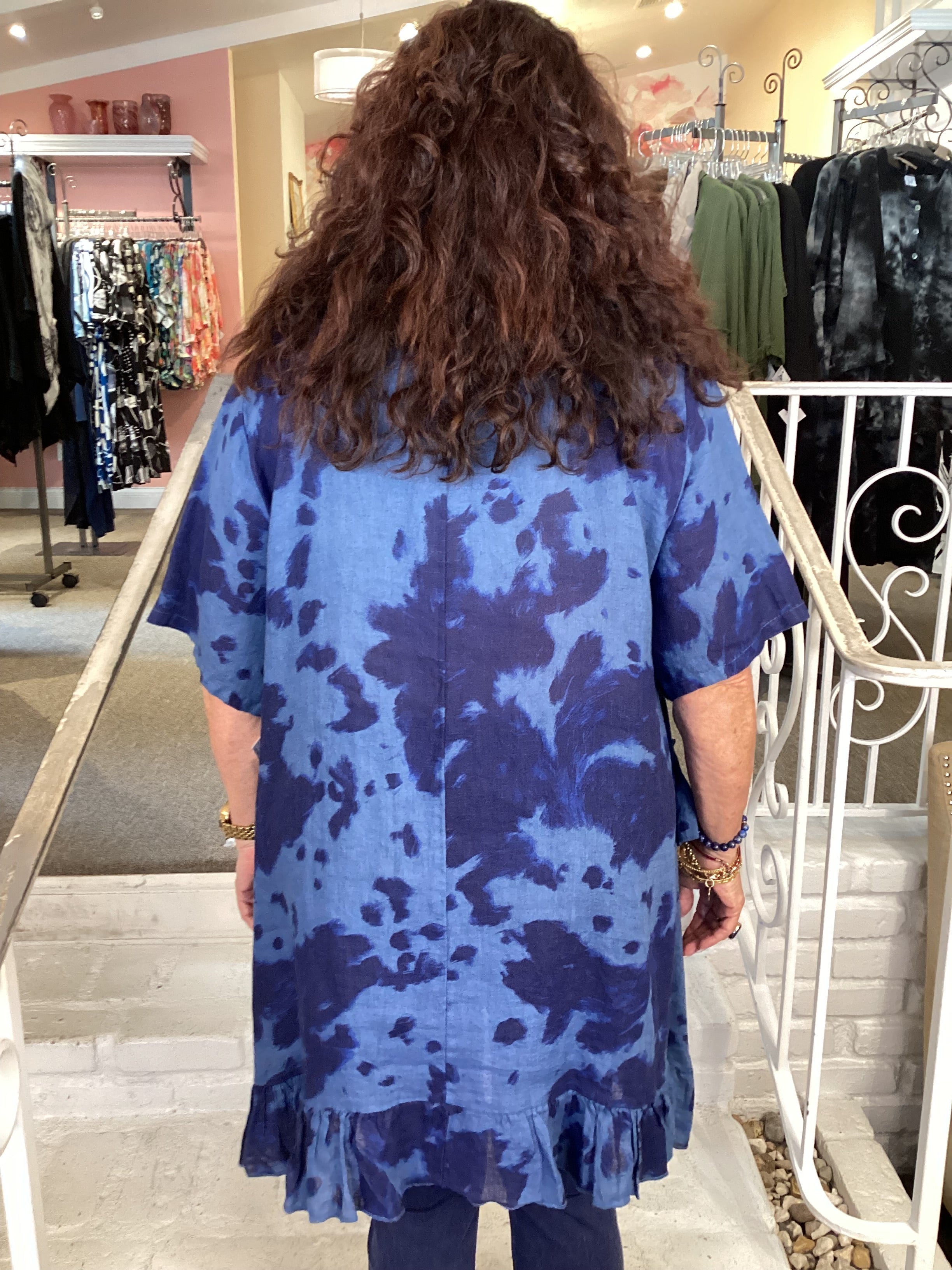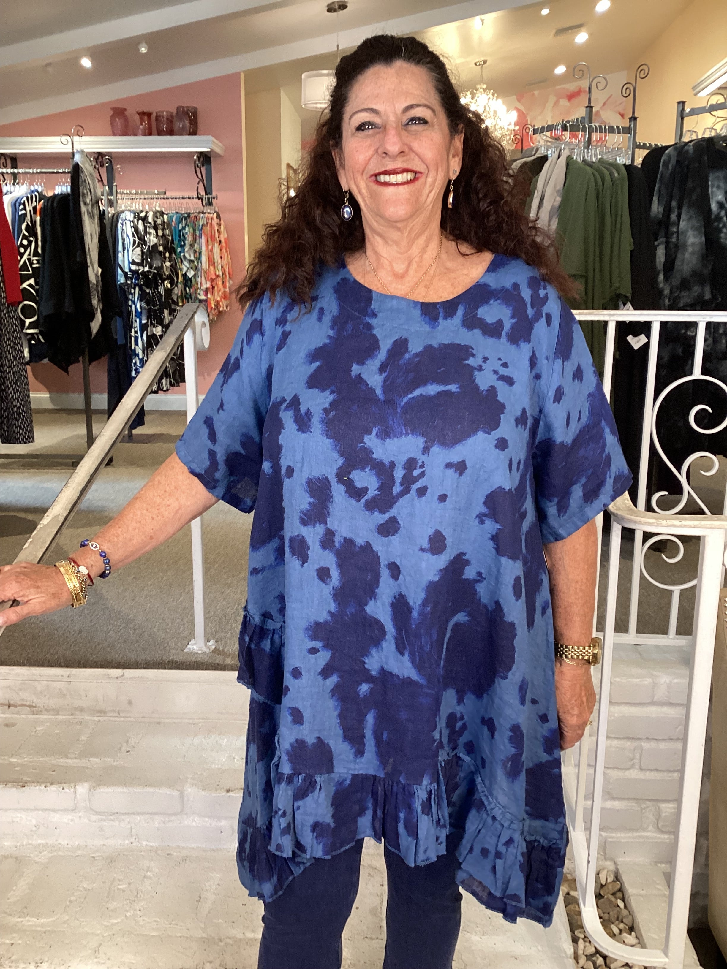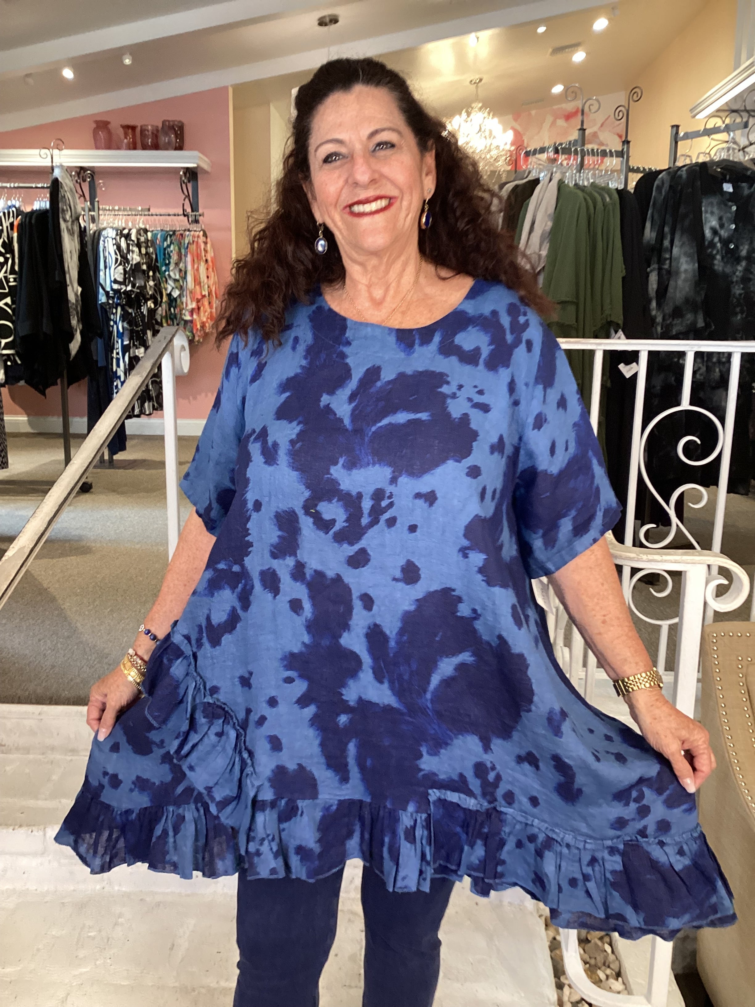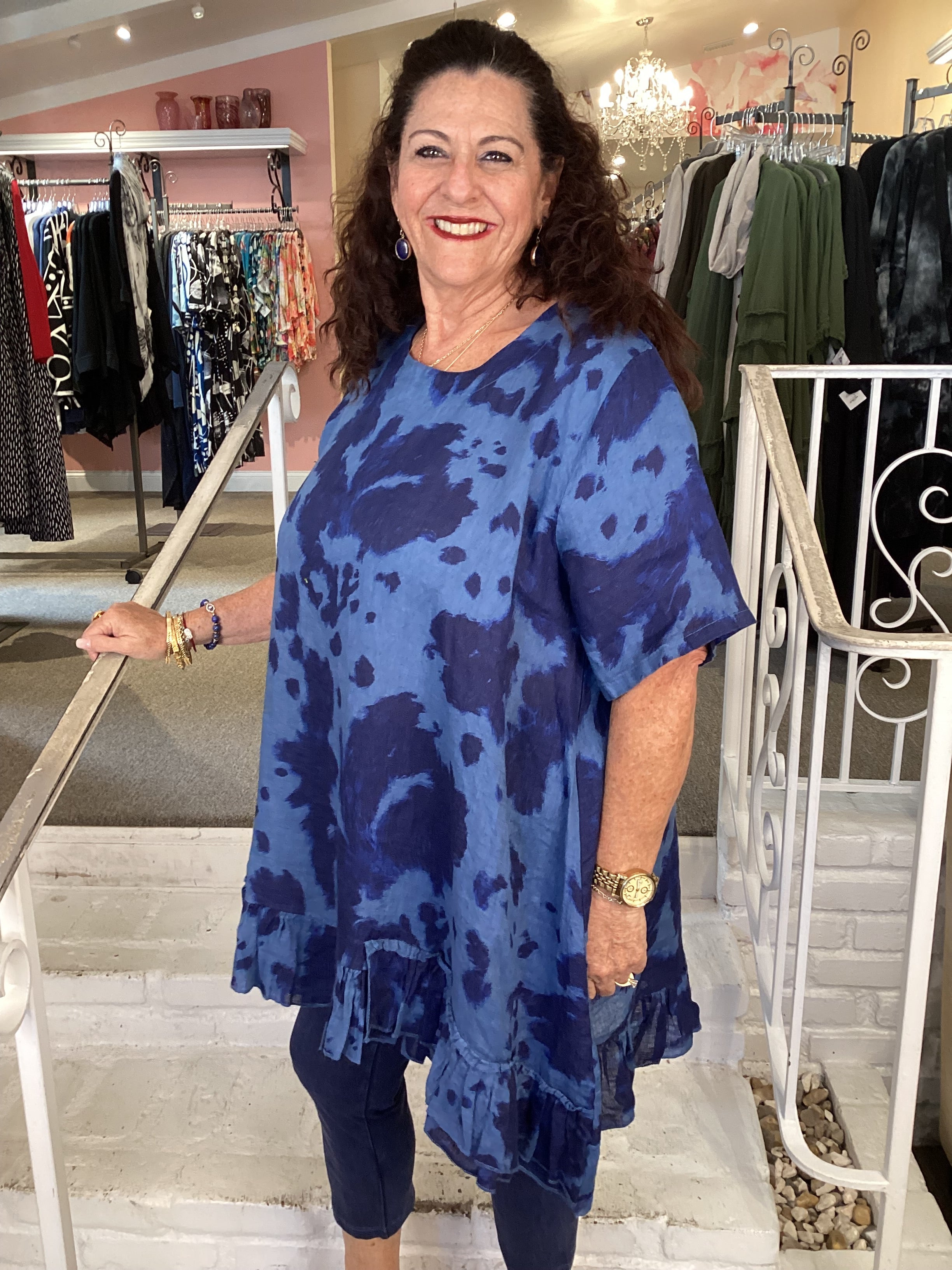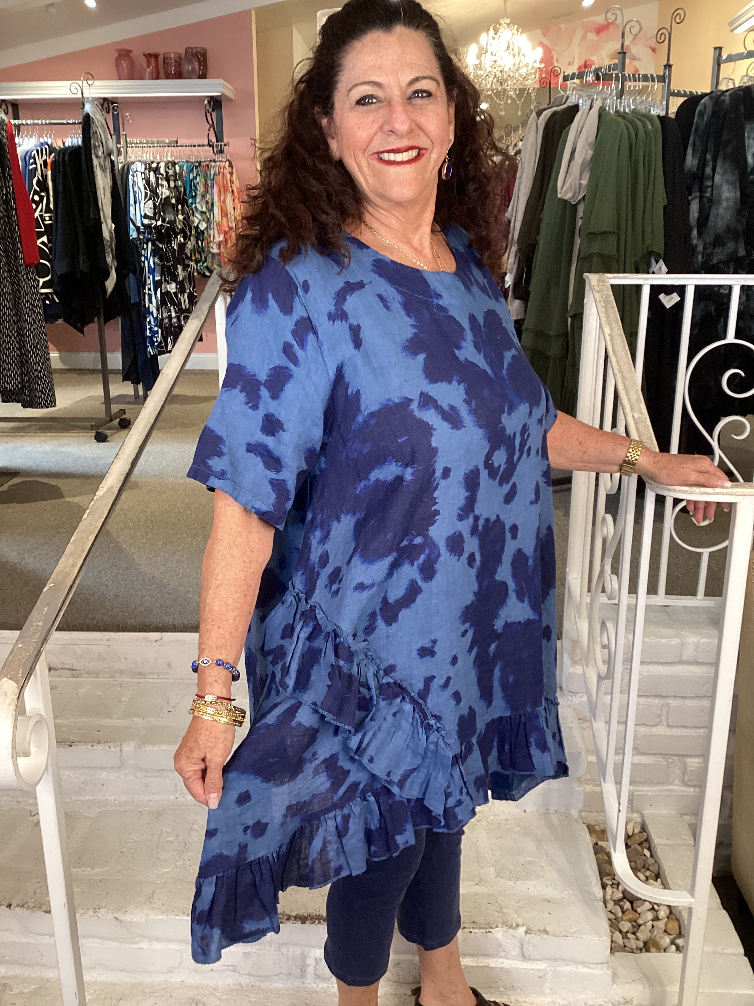 RUFFLE TIE-DYE TUNIC - BLUE 91307T-62 BLUE