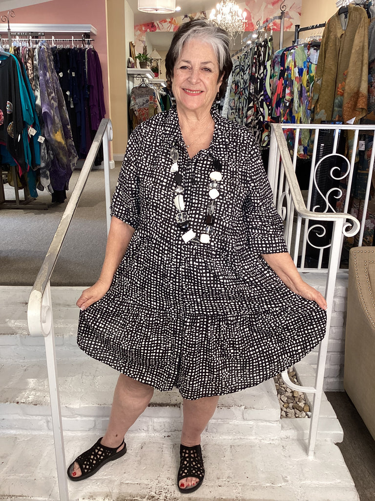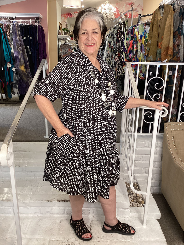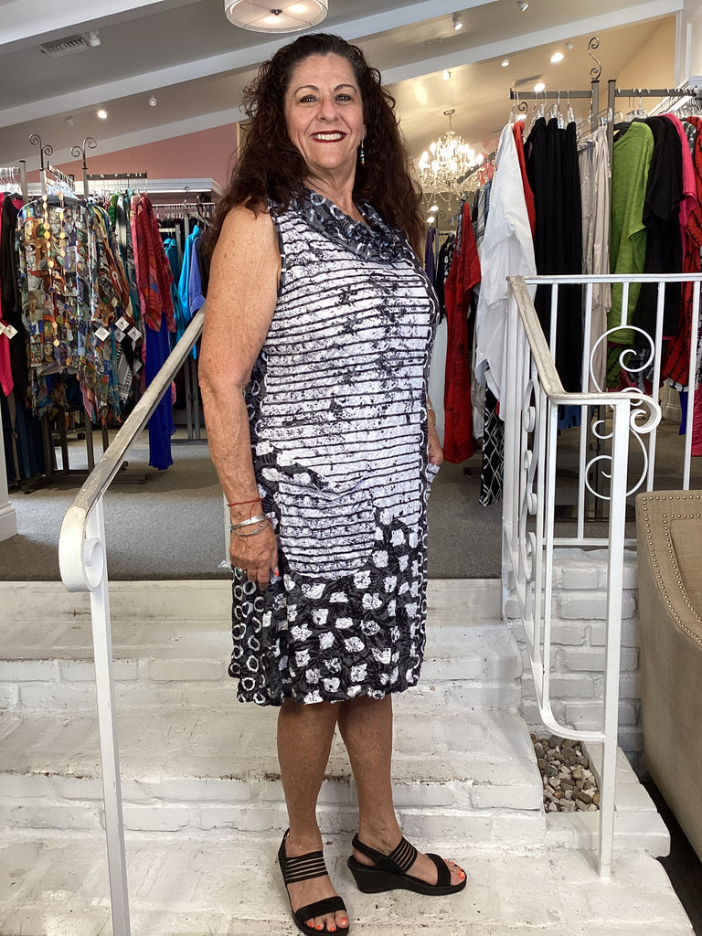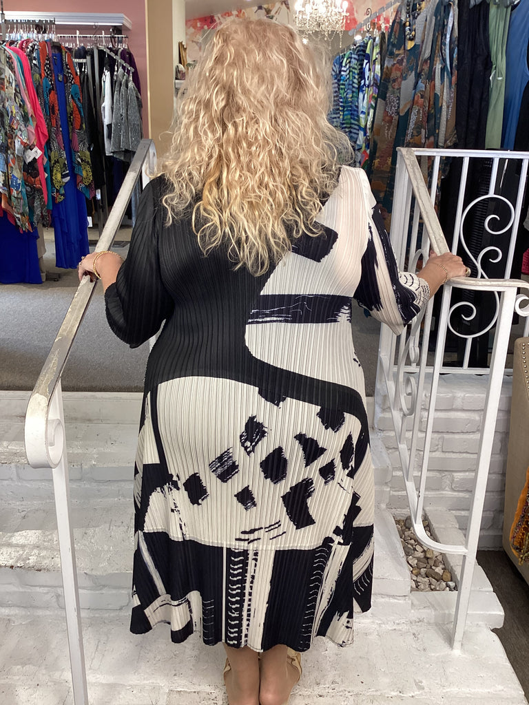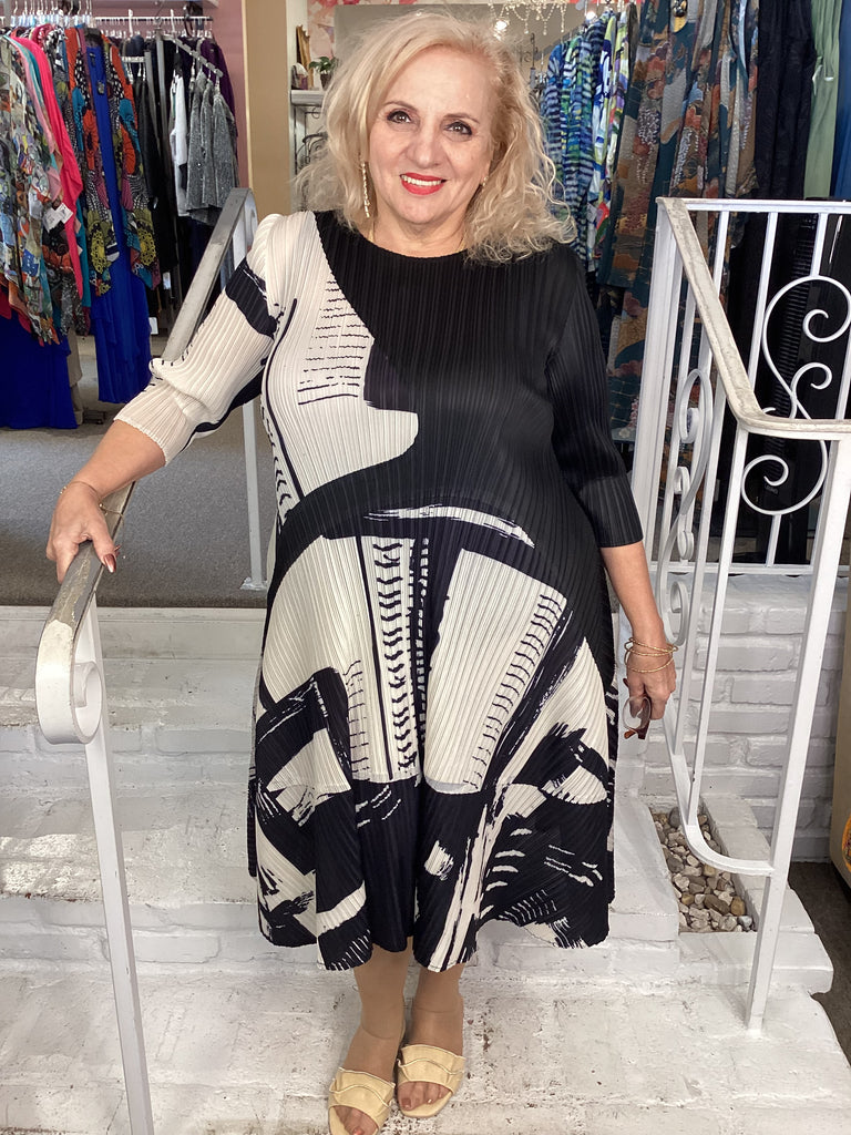 ATOM DRESS-SWIRL POPLIN BLK/WH