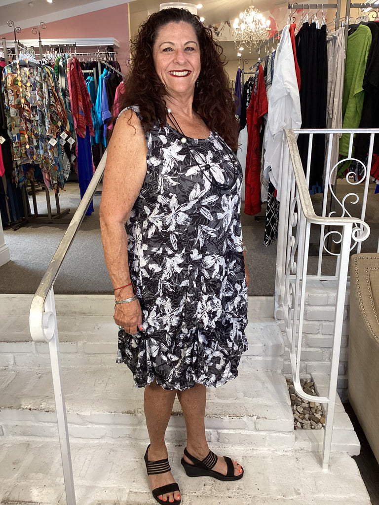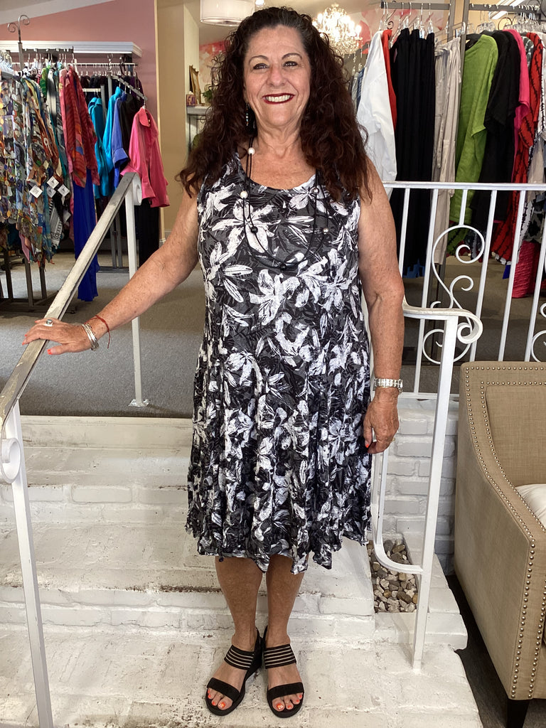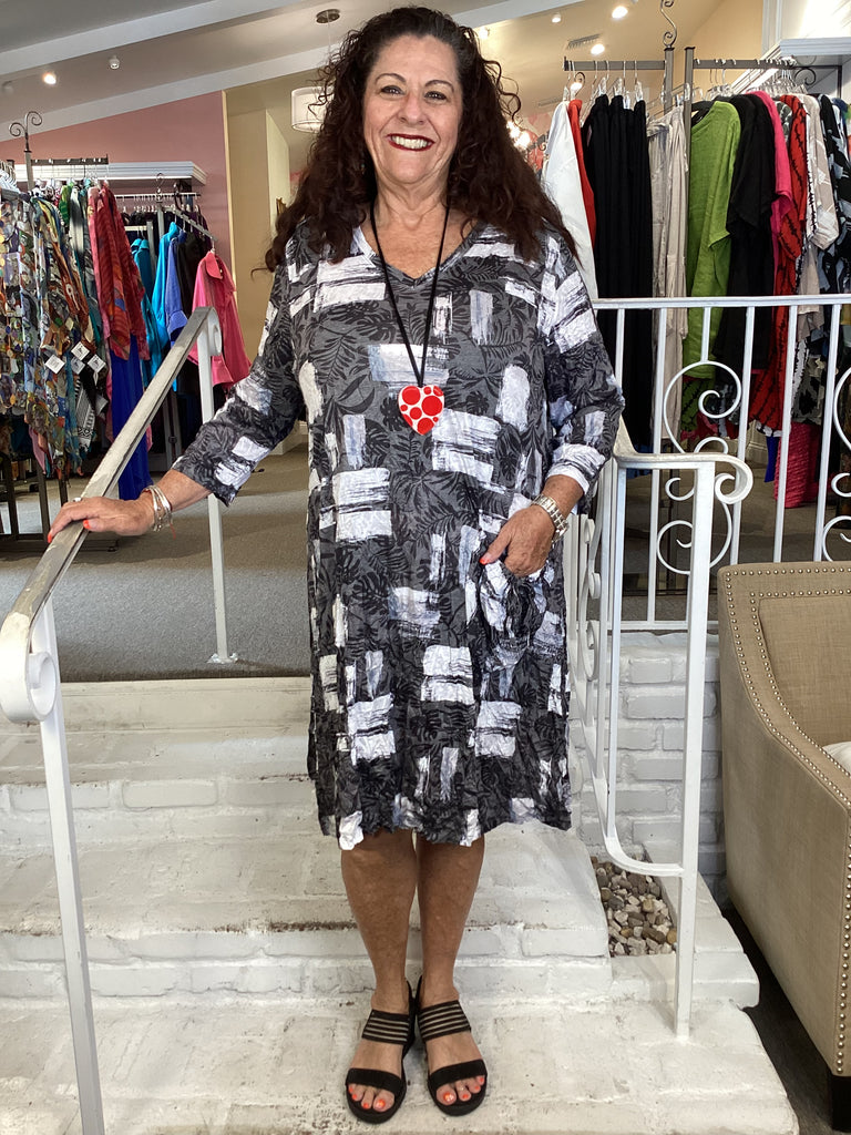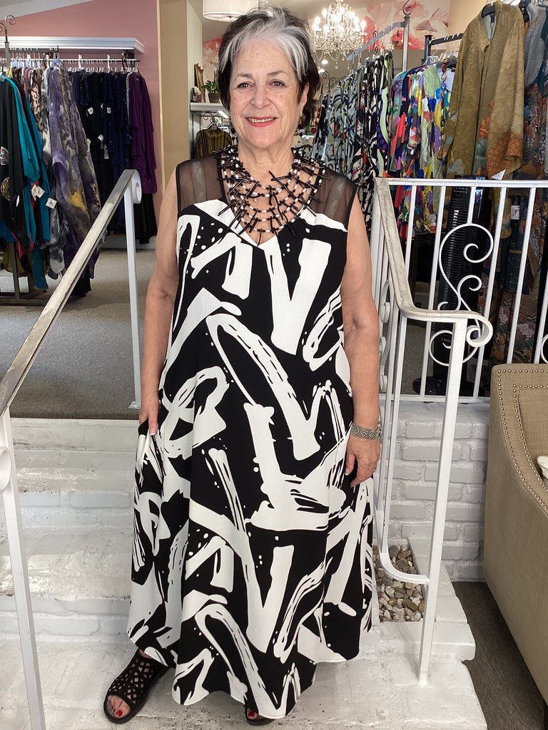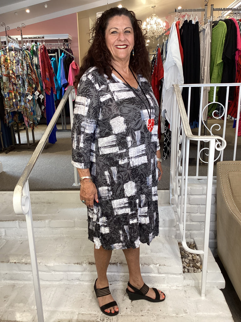 ATOM DRESS-SWIRL POPLIN BLK/WH