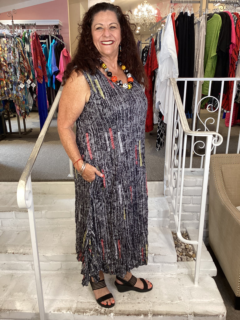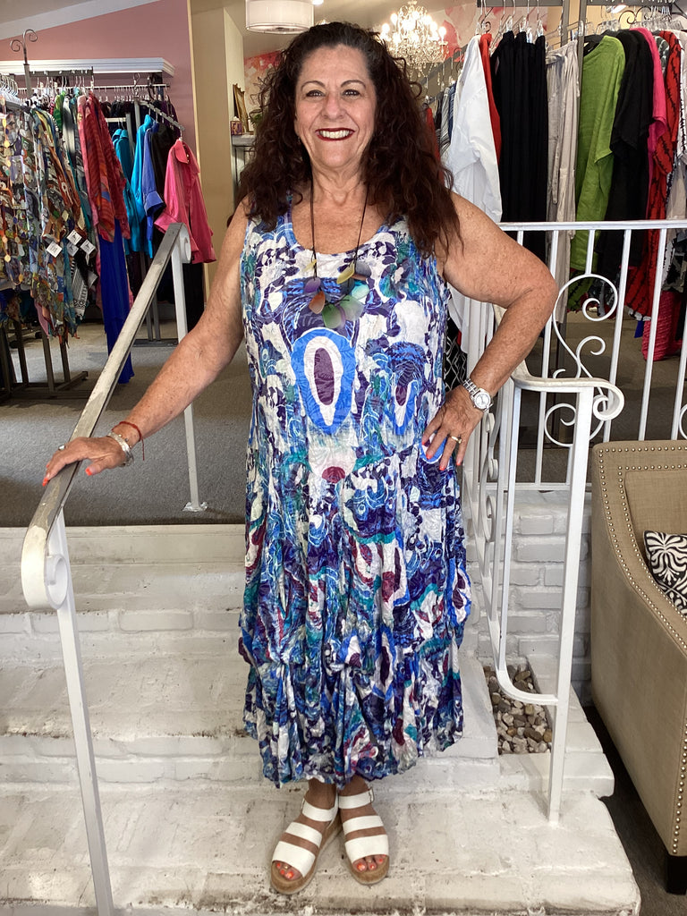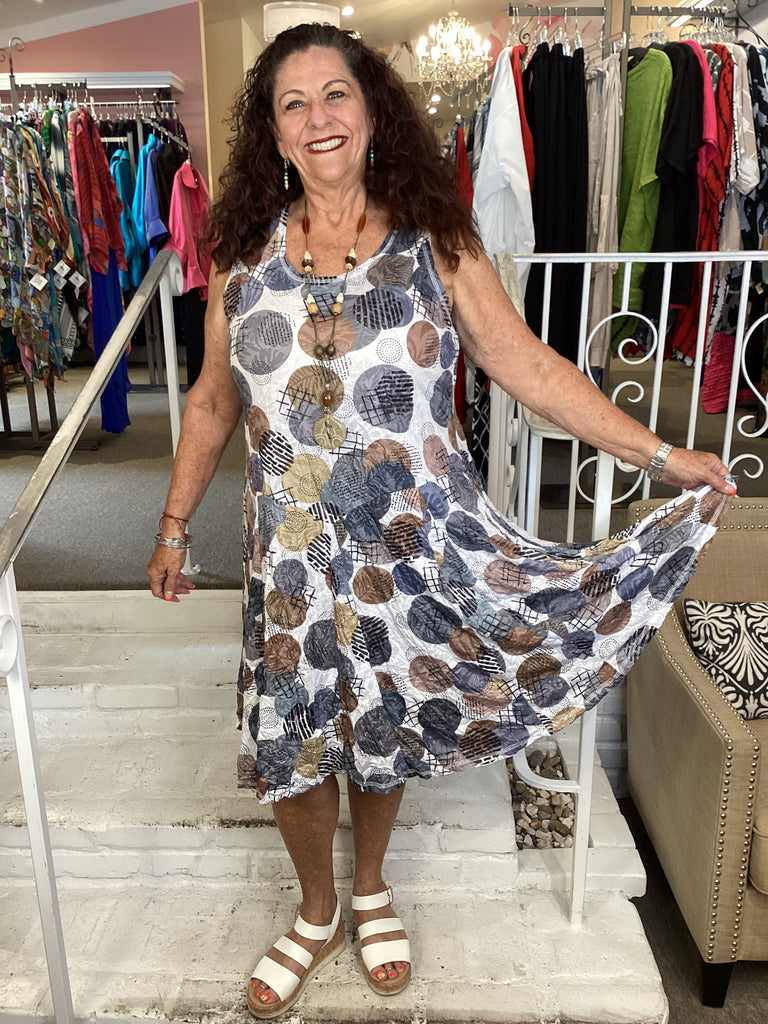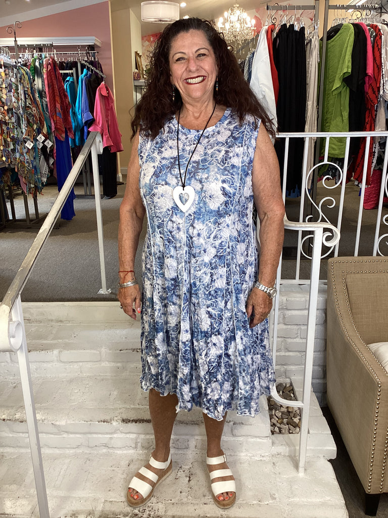 CRINKLE TANK BUBBLE DRESS-NAVY