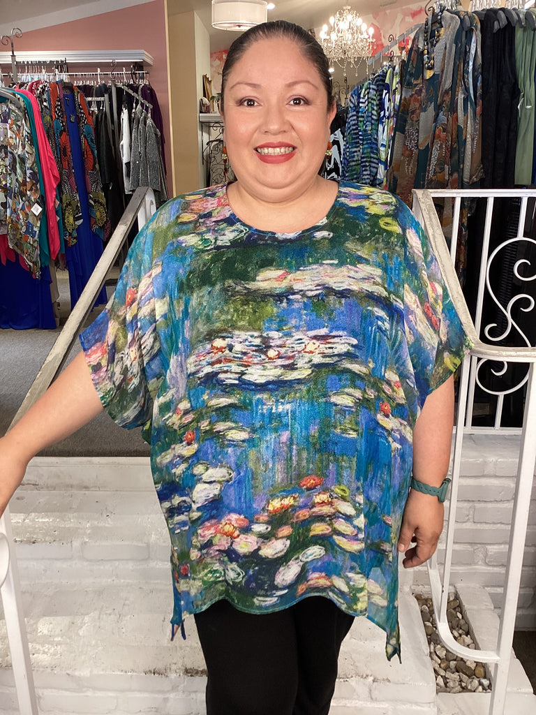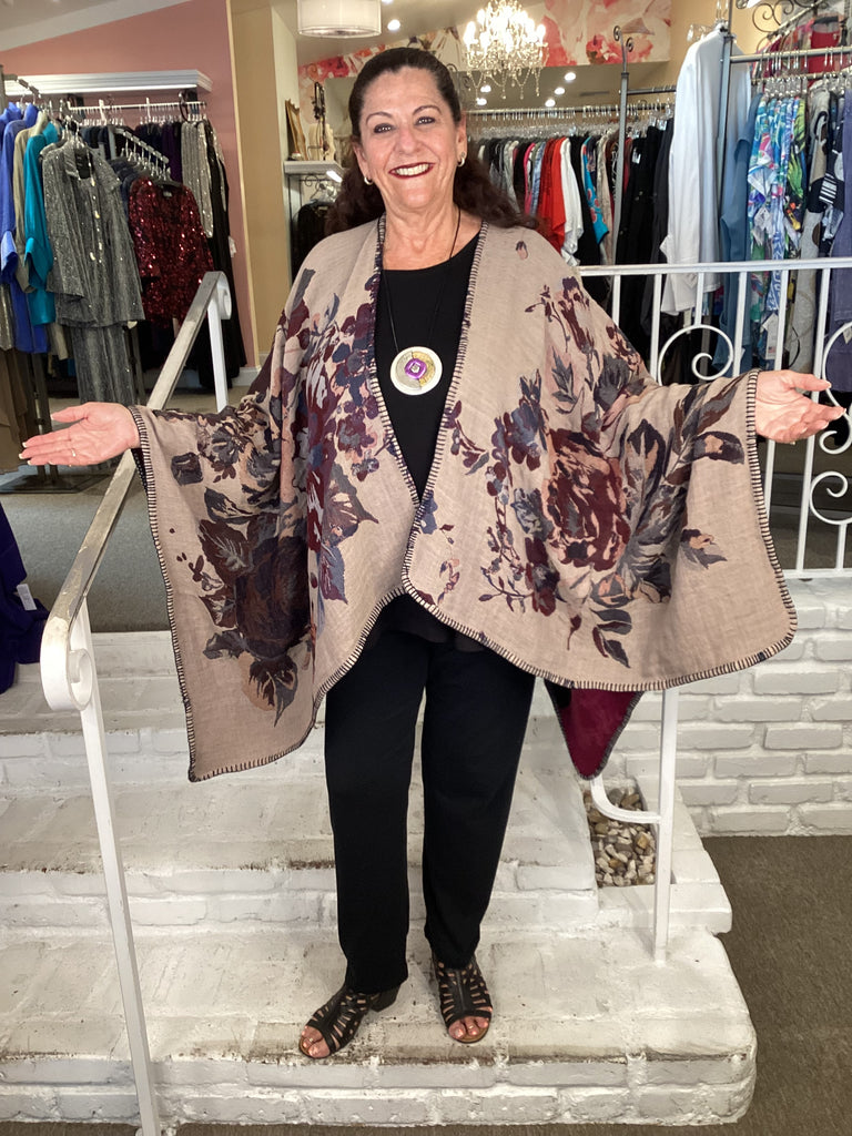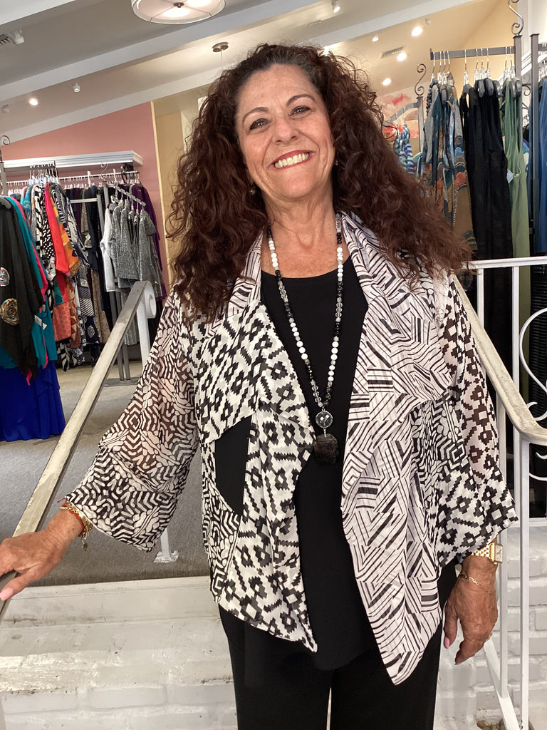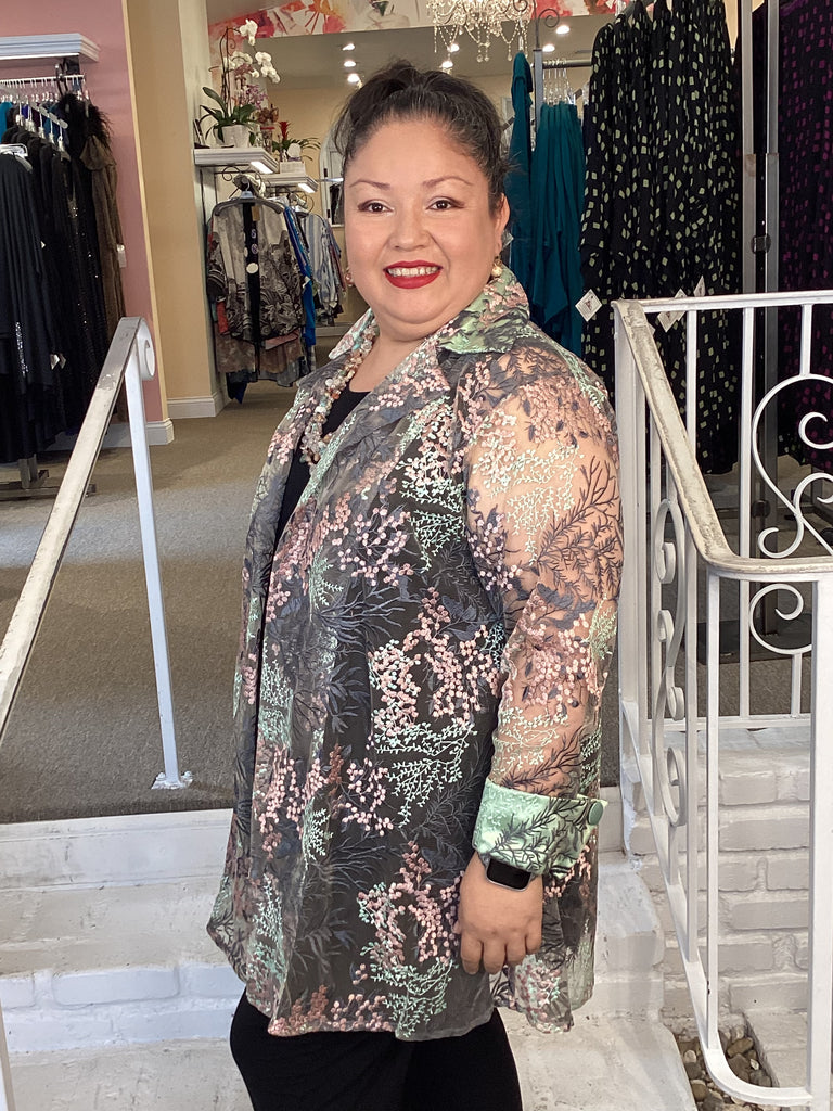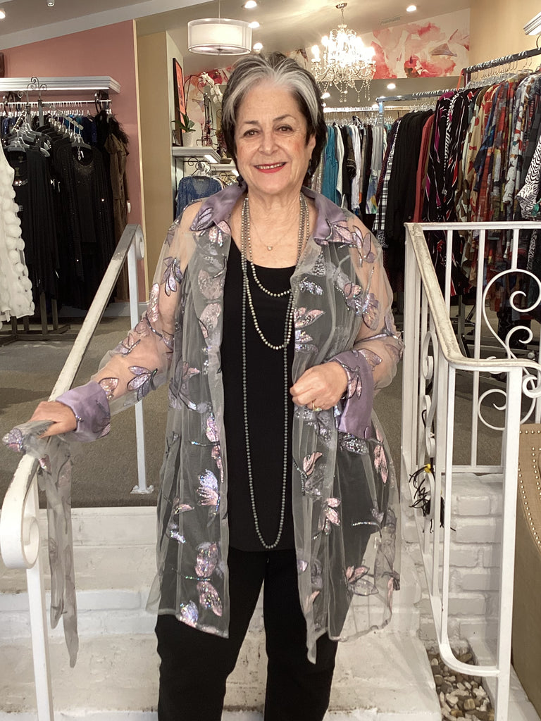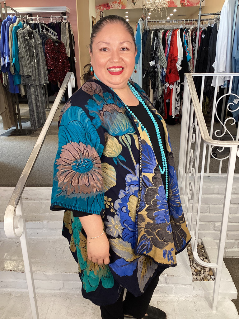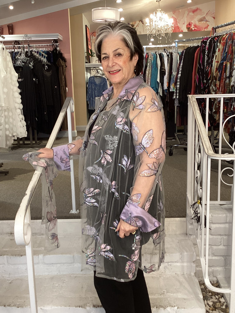 We love the Happy Coat. Feel good and happy in this button down tunic with a variety of colors and patterns. Whisper tunics are a hi-low style and fit to a 4x.