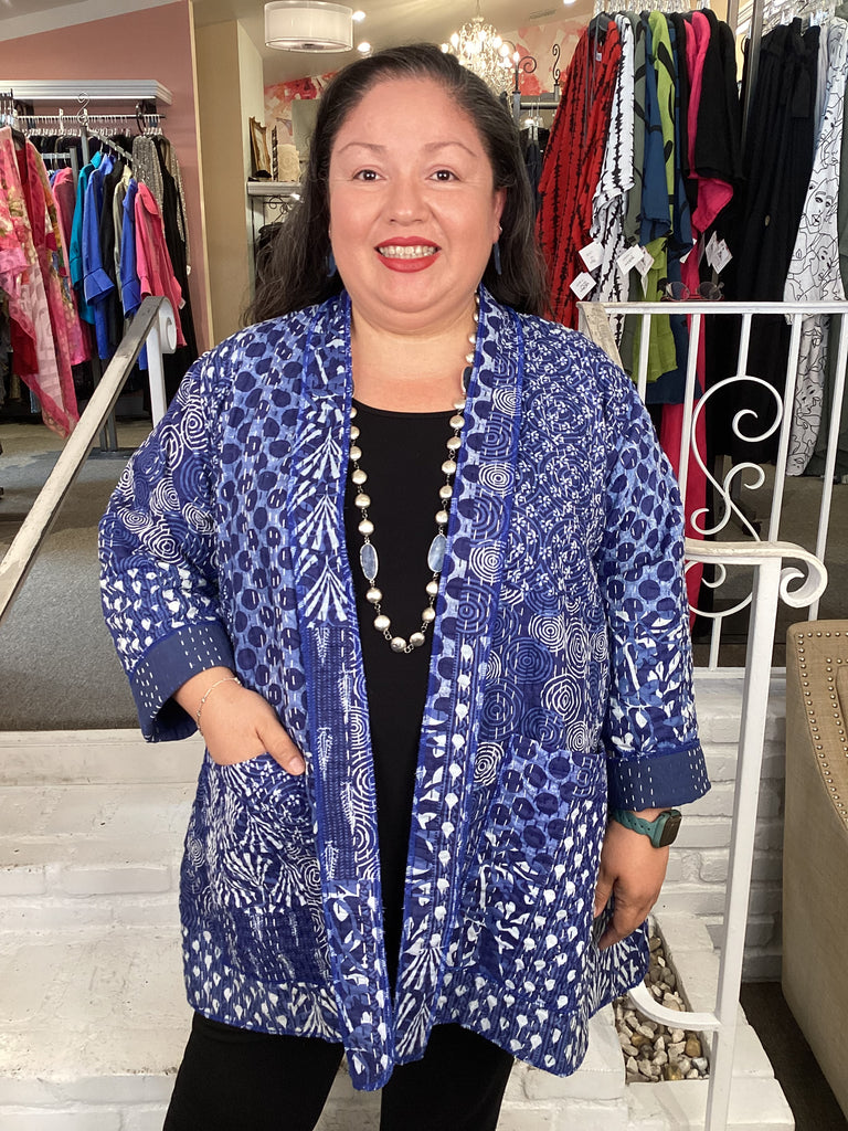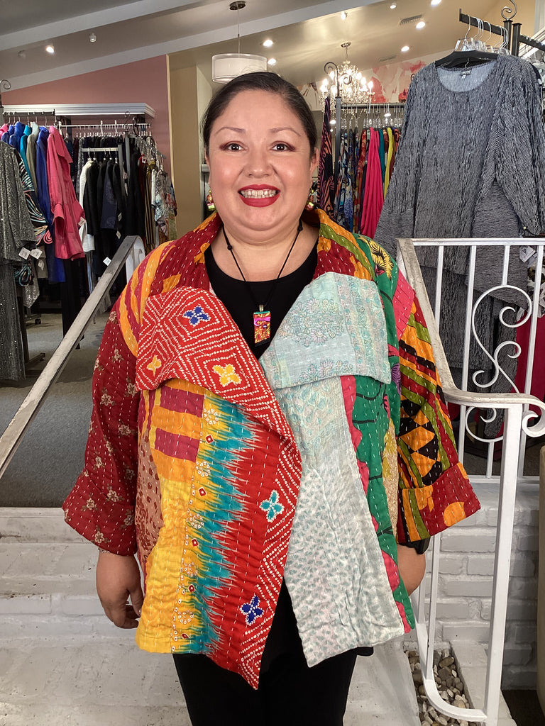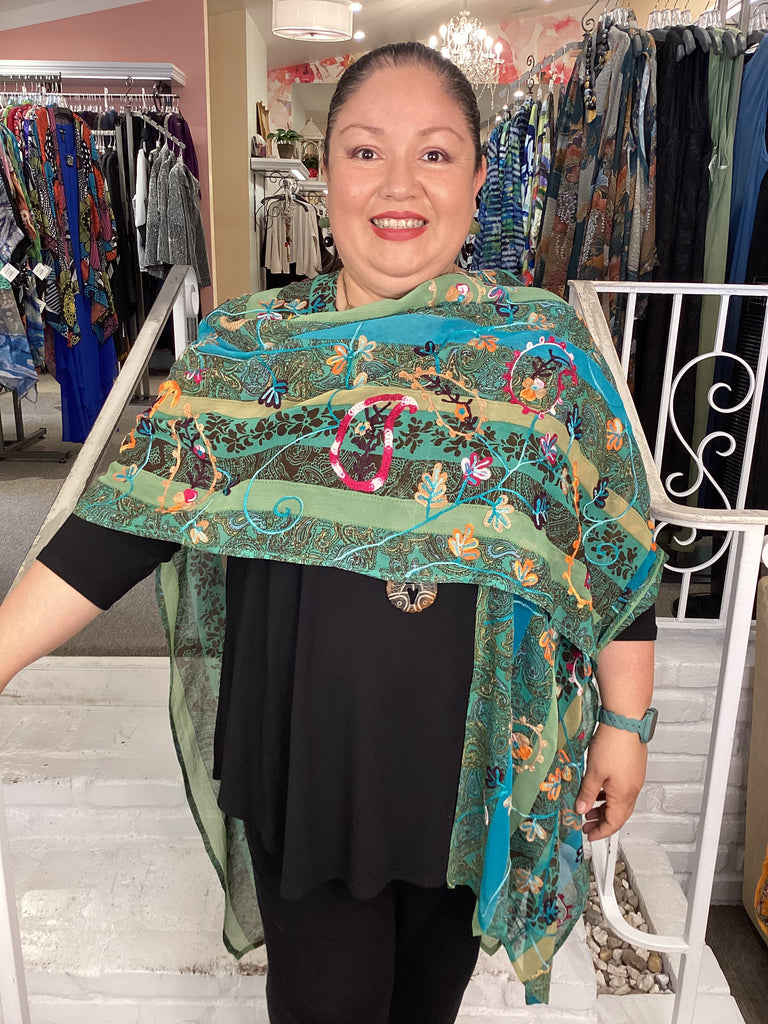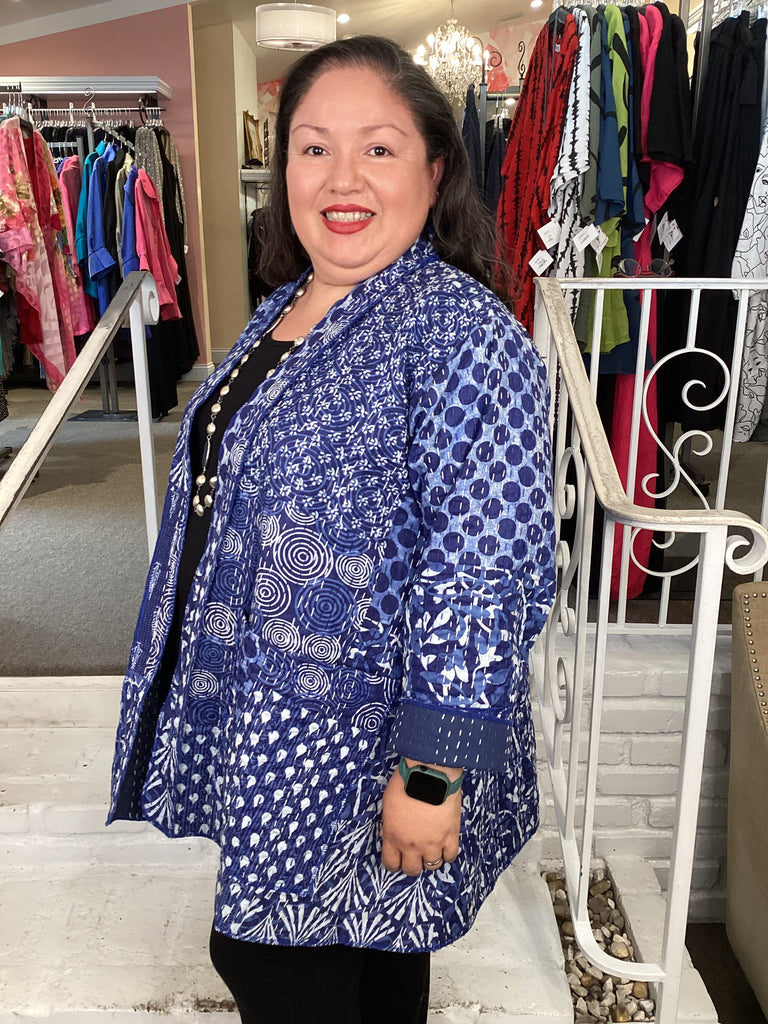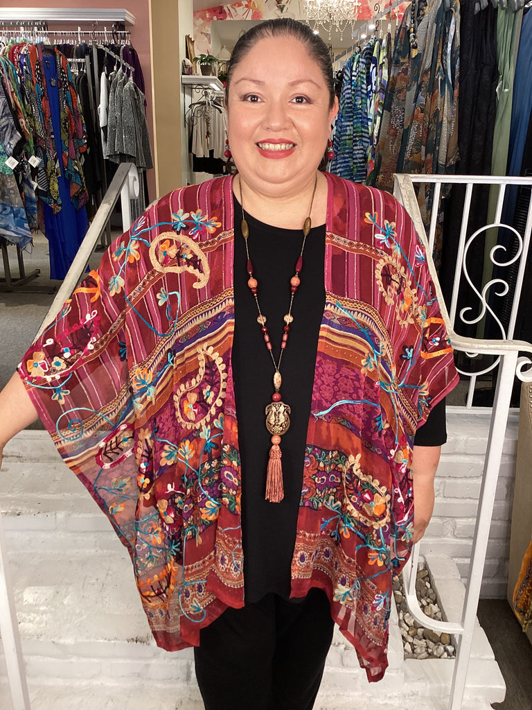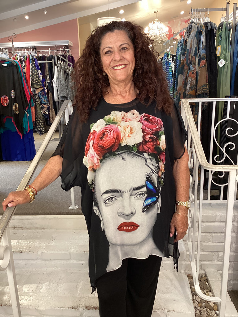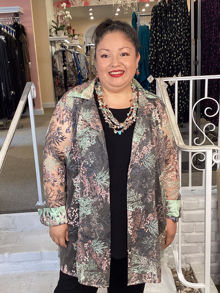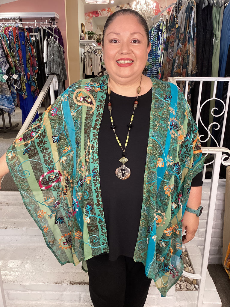 We love the Happy Coat. Feel good and happy in this button down tunic with a variety of colors and patterns. Whisper tunics are a hi-low style and fit to a 4x.