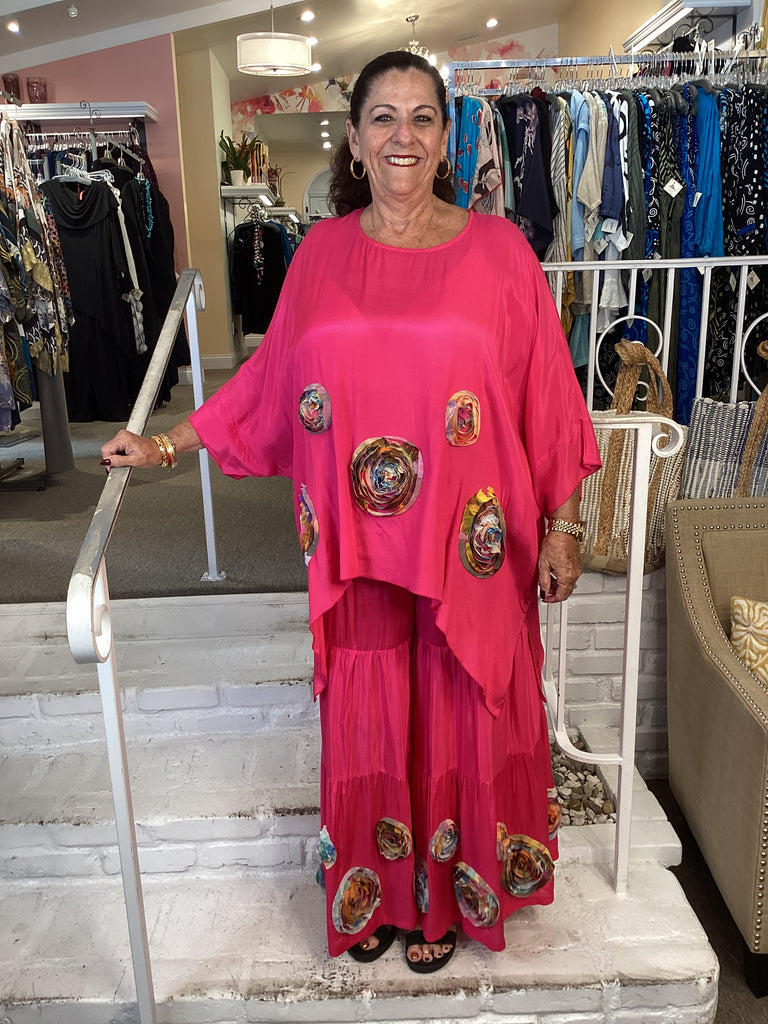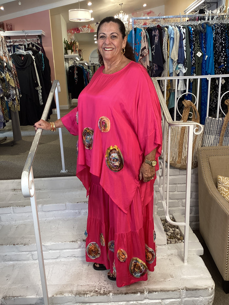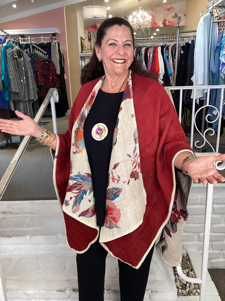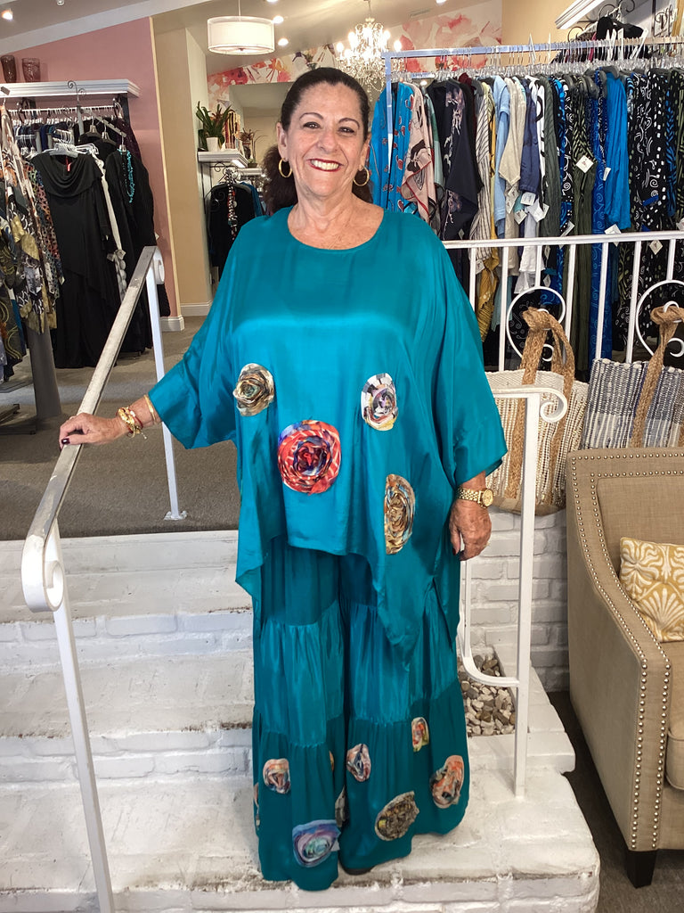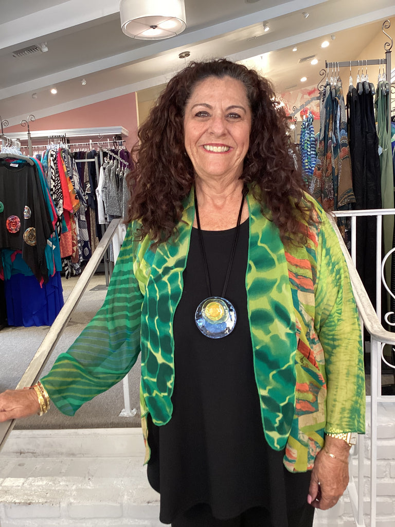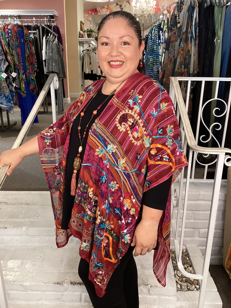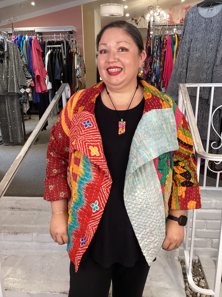 We love the Happy Coat. Feel good and happy in this button down tunic with a variety of colors and patterns. Whisper tunics are a hi-low style and fit to a 4x.