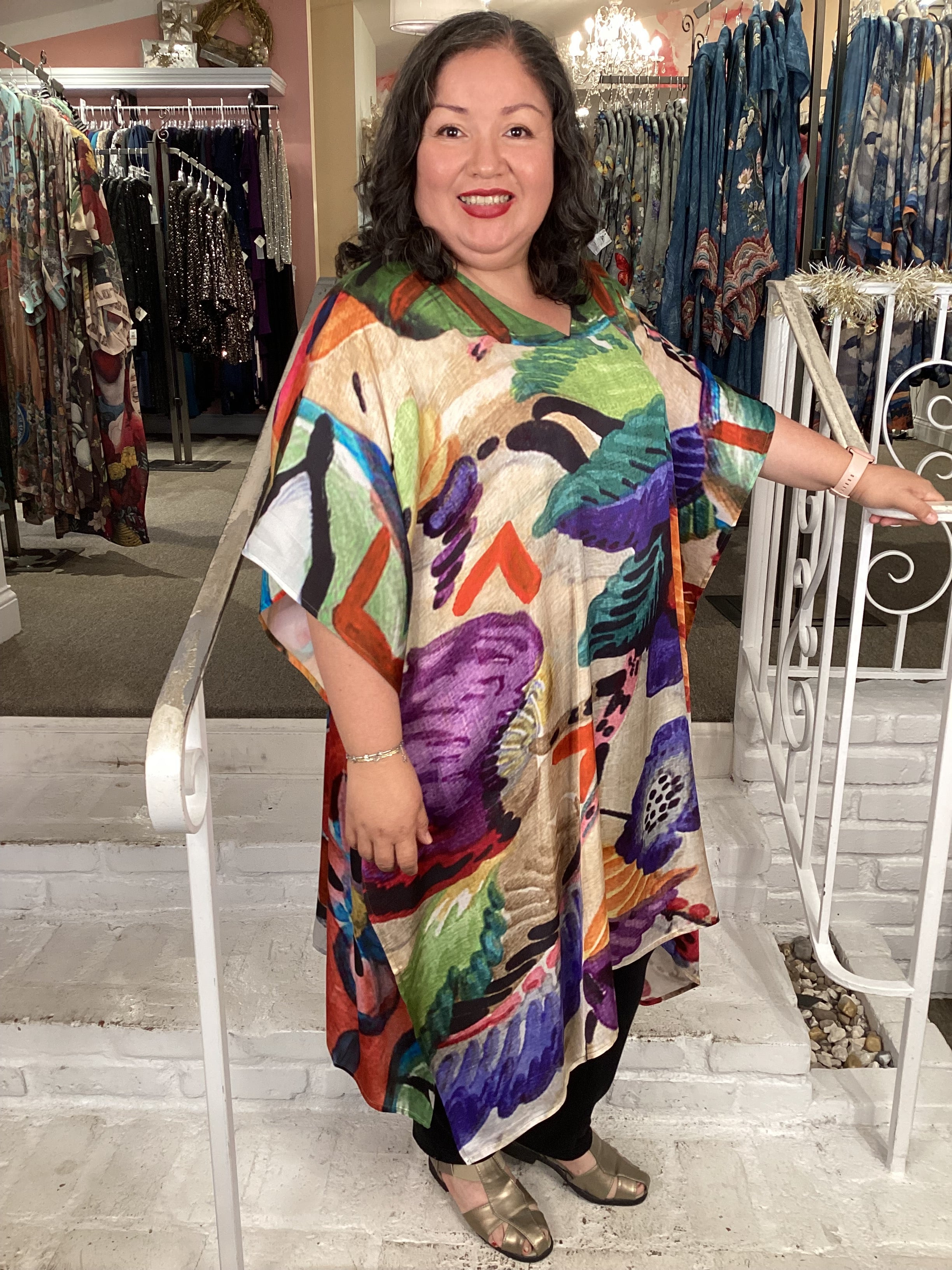 Slip into pure comfort with this stunning Artisan Kaftan featuring eye-catching prints and patterns on luxuriously soft Modal fabric. The silky satin finish drapes beautifully while the generous cut accommodates sizes up to 3-4X, making it the perfect one-size wonder for anyone seeking effortless style and breathable elegance.