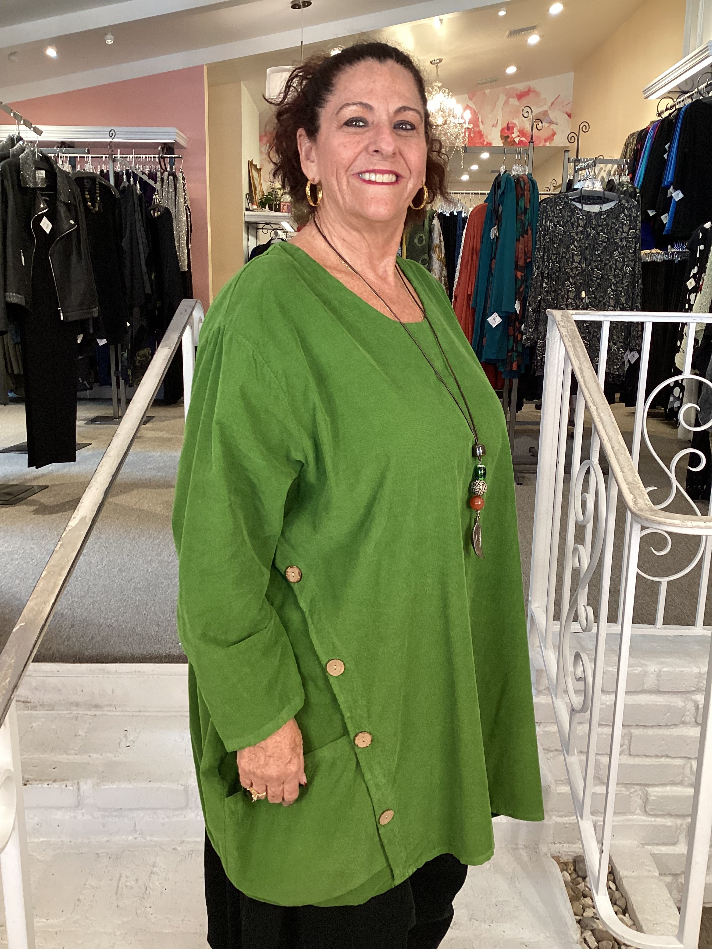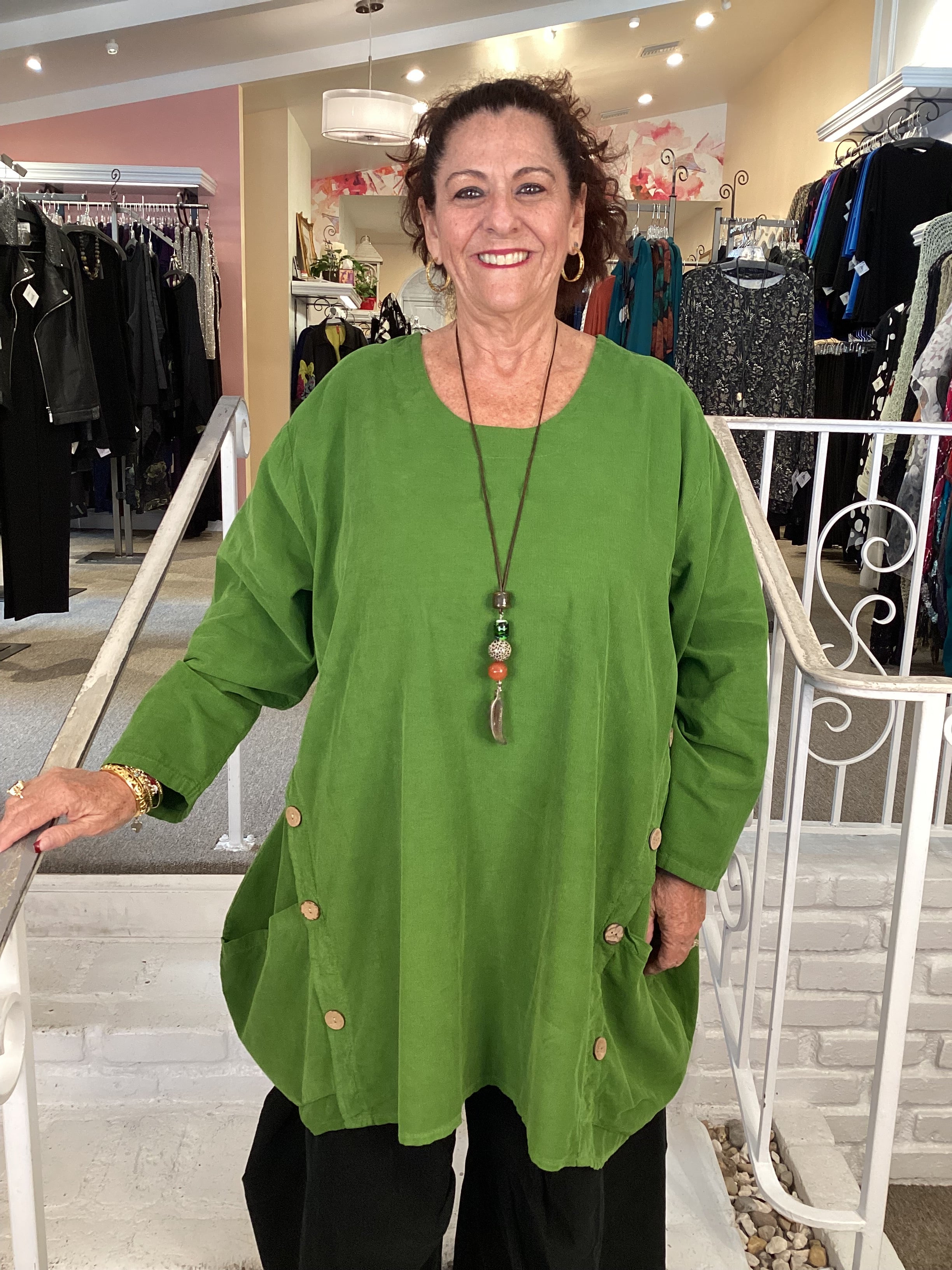 CORDUROY BUTTON TUNIC - KIWI 91983 KIWI