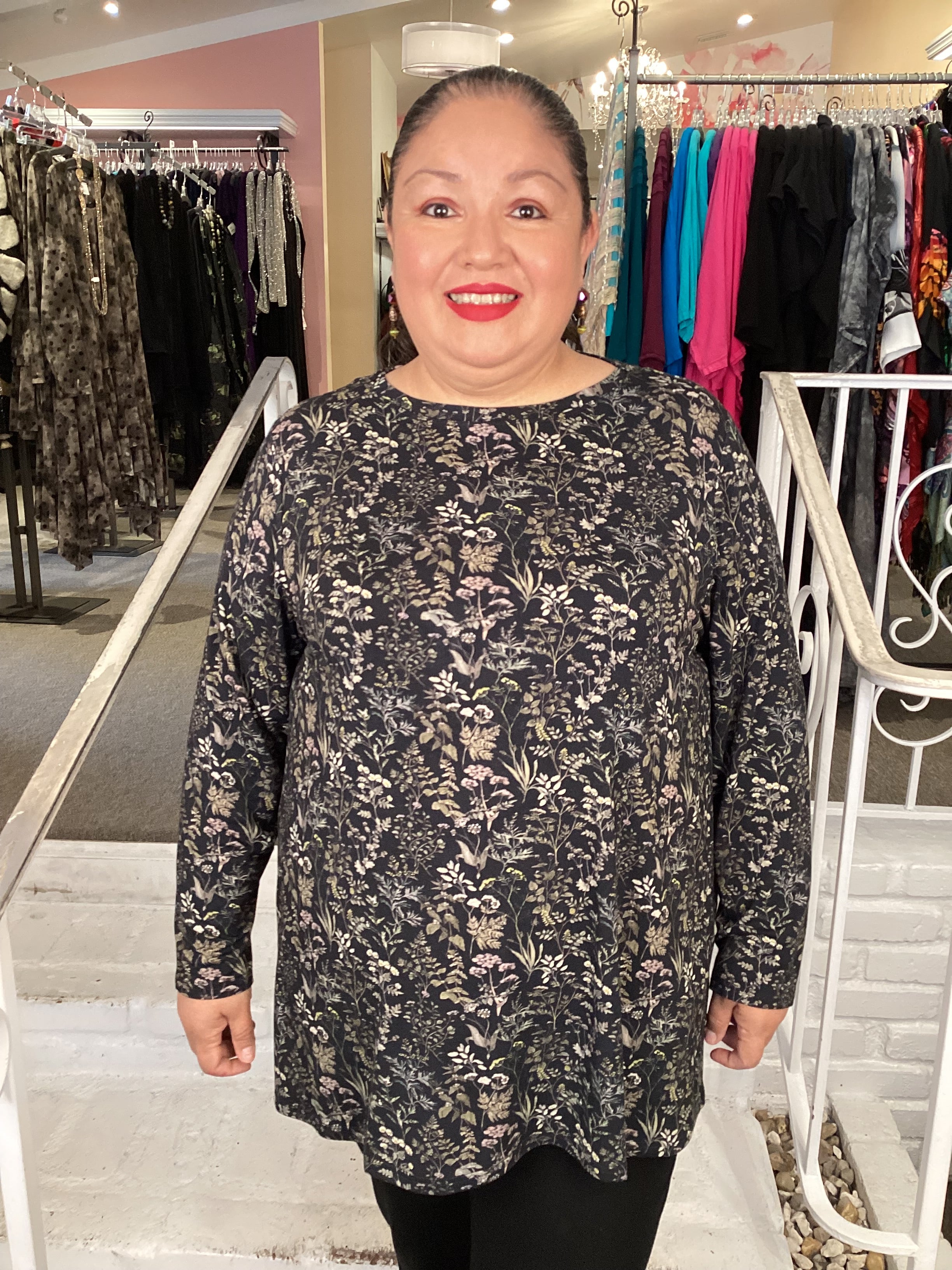 The Margie Top in Khaki Herbal is a playful mix of comfort and style. With its longer length and side slits, this loose-fit top features a flattering boat neck that's perfect for layering or wearing on its own. Effortlessly chic and easygoing, Margie adds a fun, breezy vibe to any outfit!