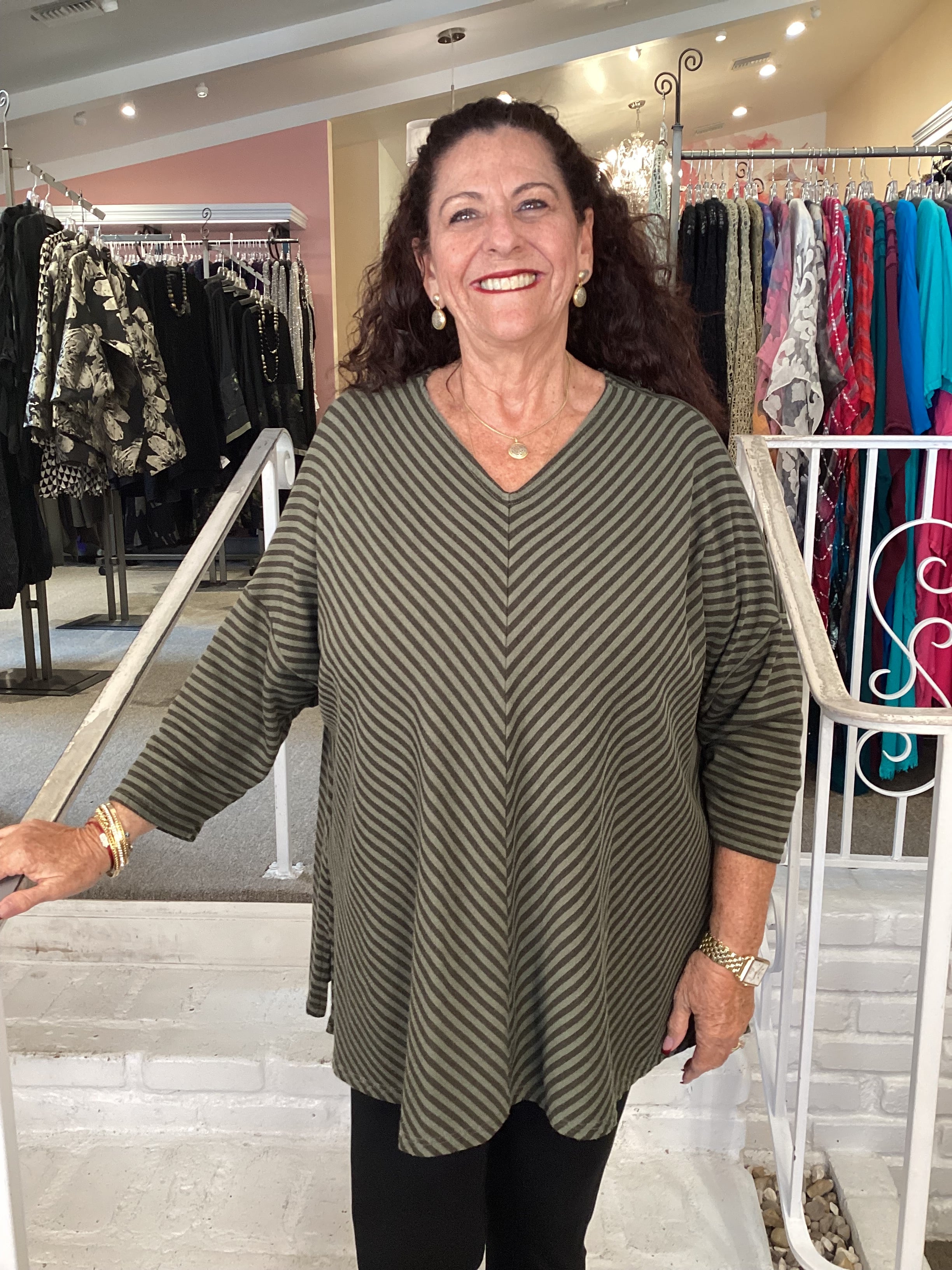 V NECK STRIPE TUNIC - KELP 7136920 KELP