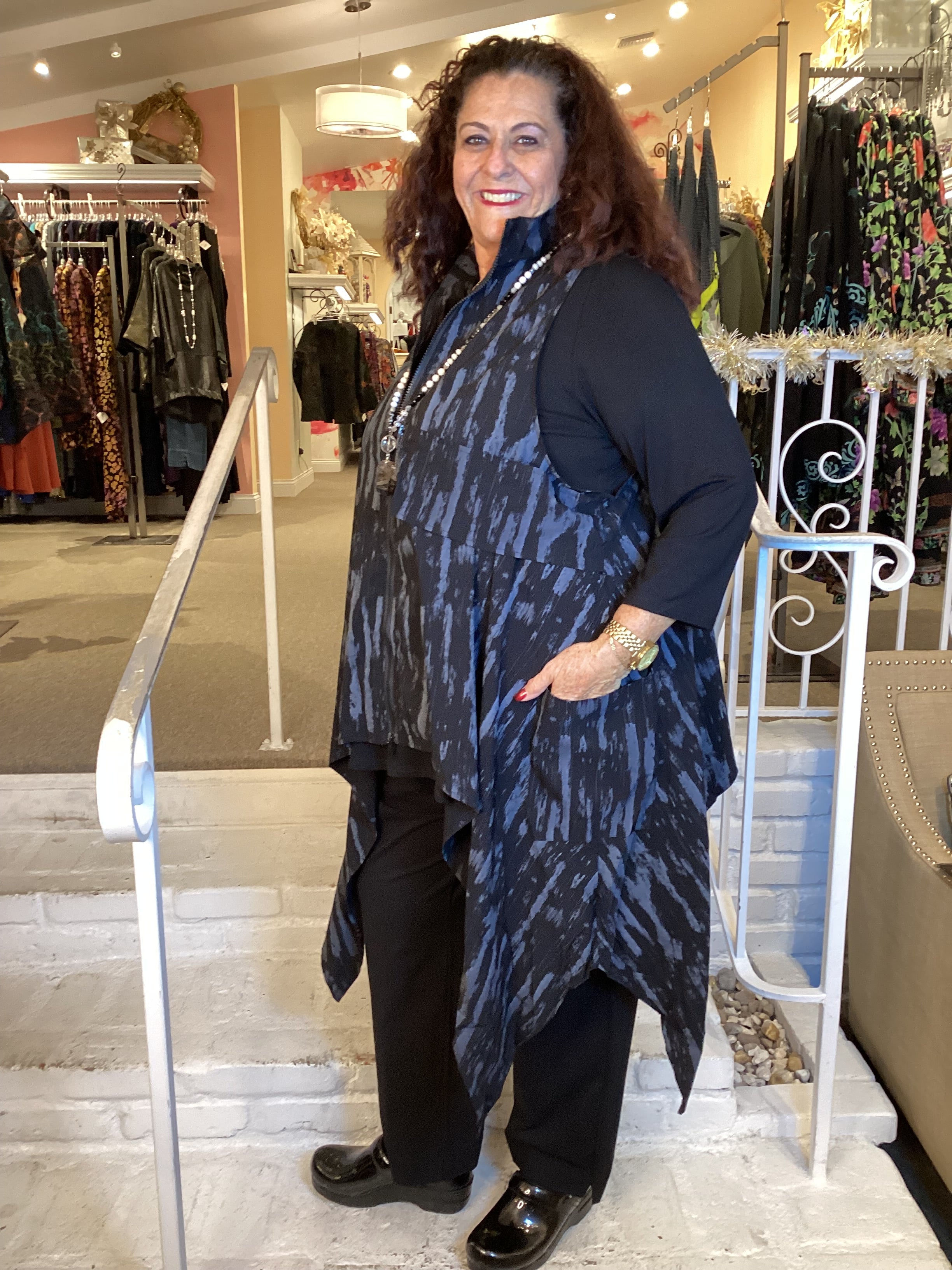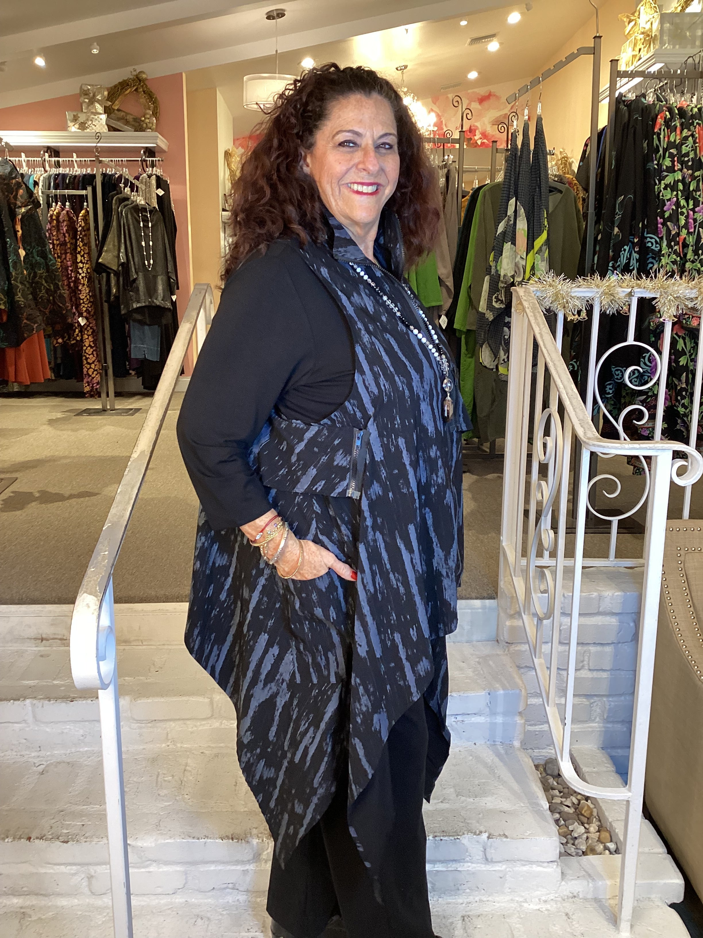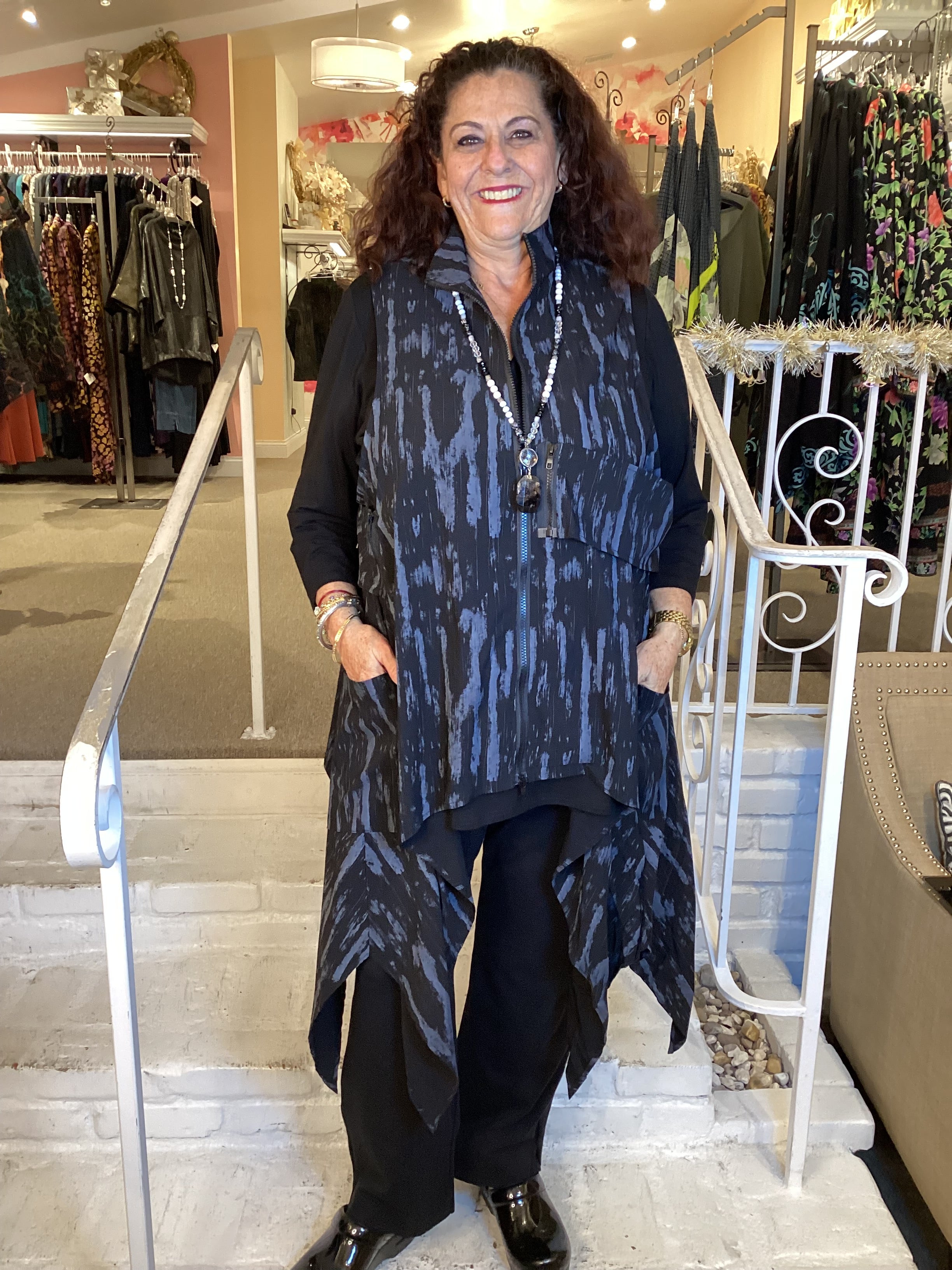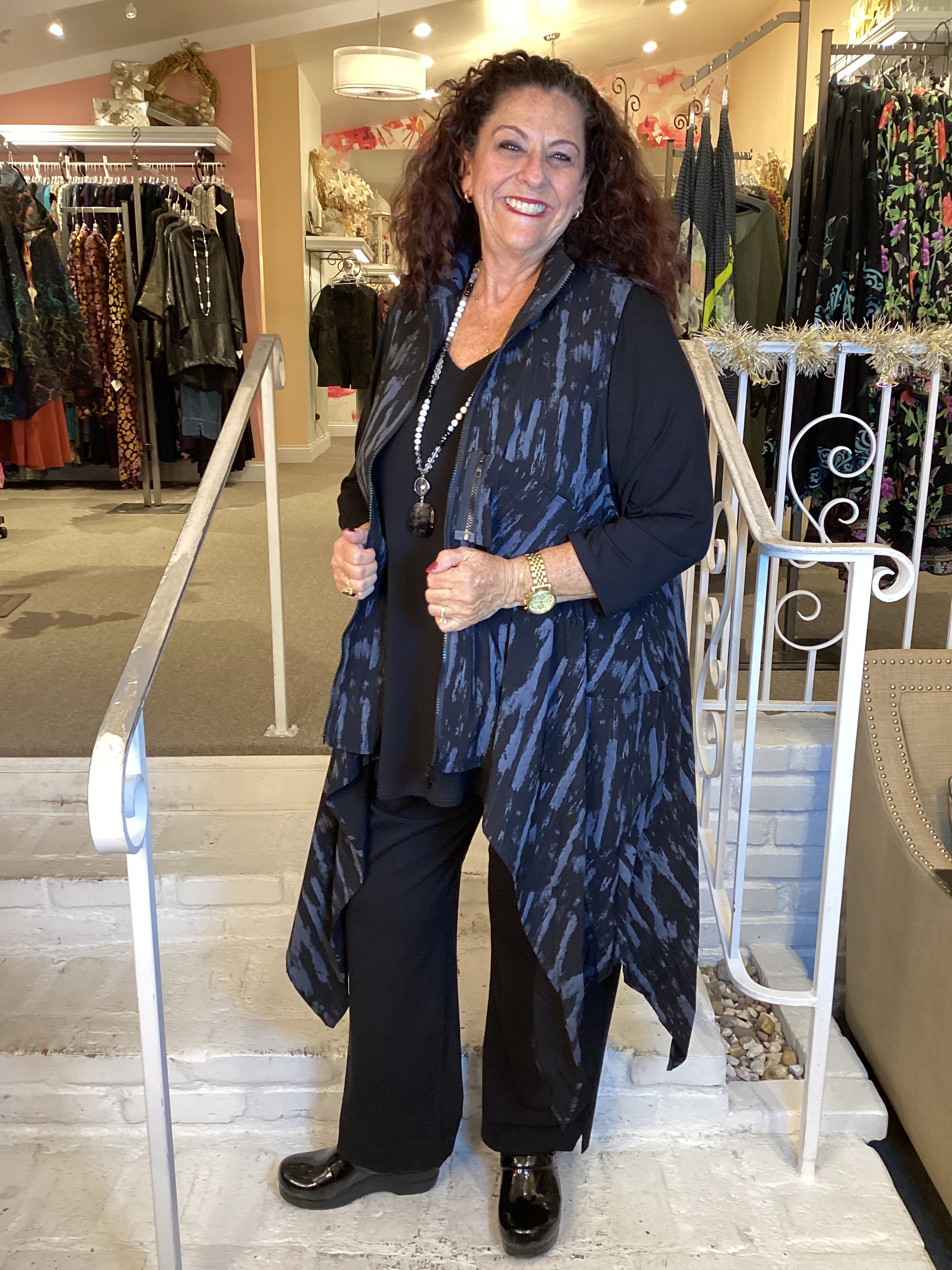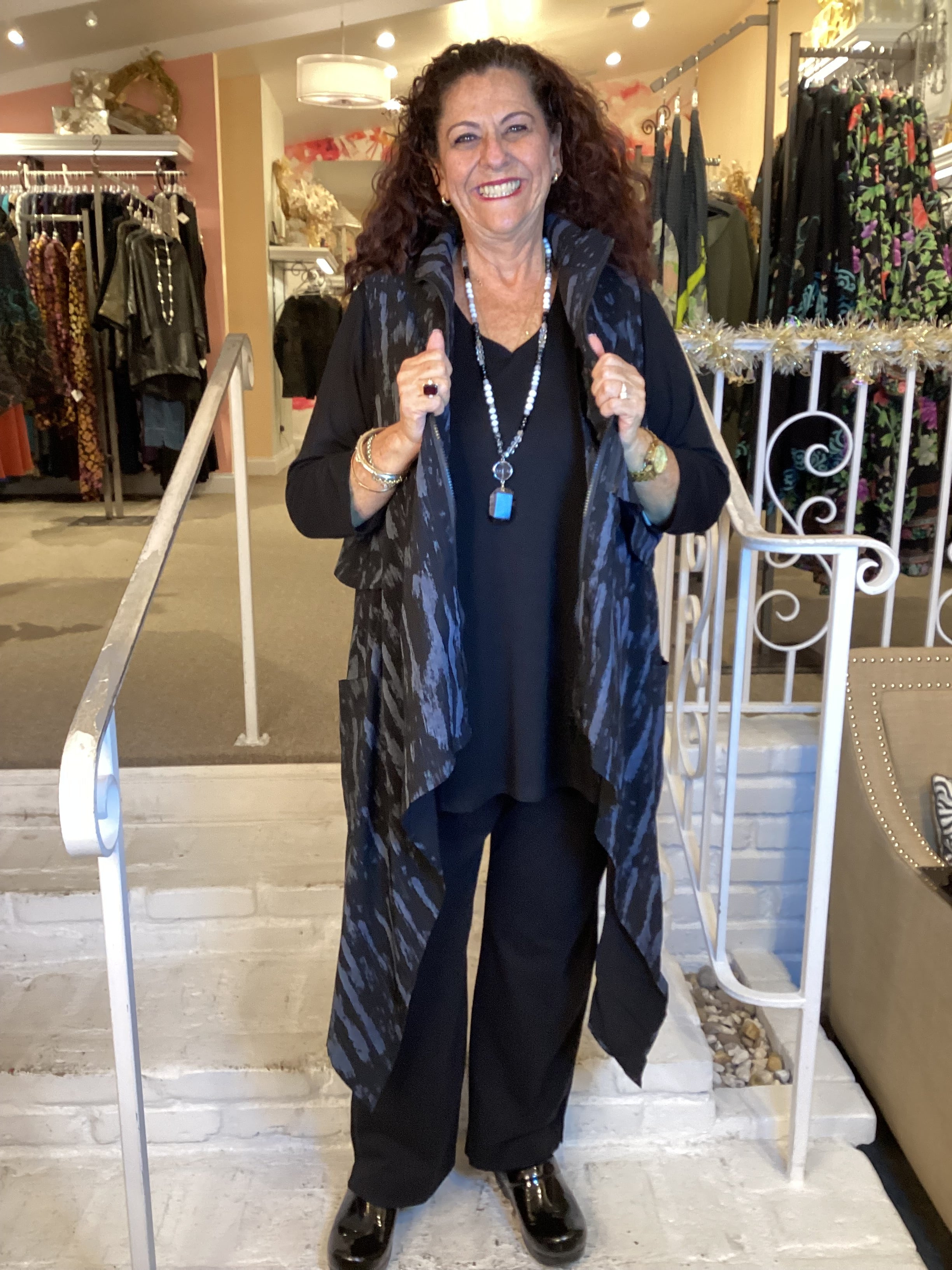 MEDIUM LONG VEST - BLACK PRINT 32682 BLK PRINT
