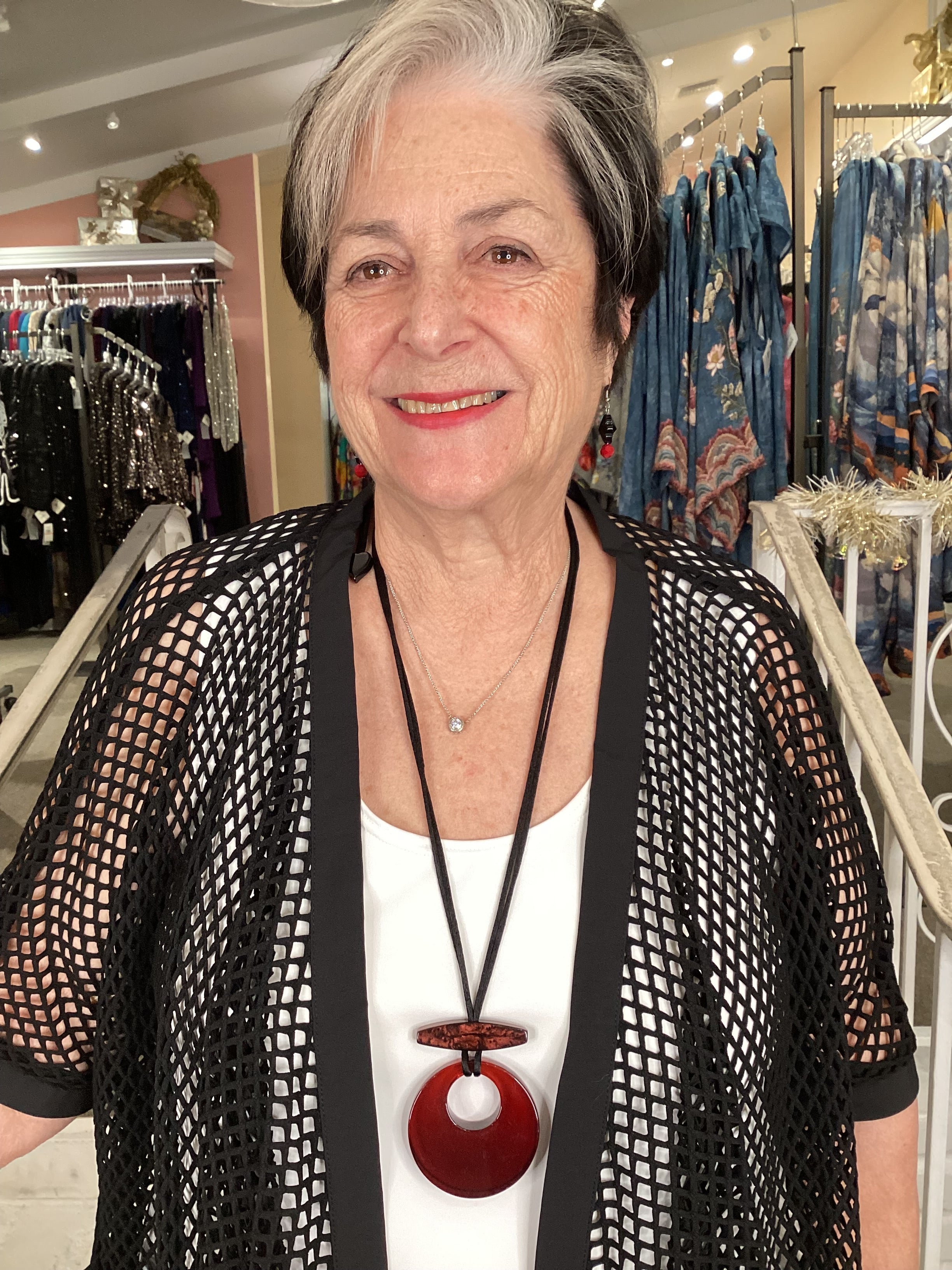 Elevate your accessory game with this show-stopping pendant that reimagines the classic necklace in a sophisticated brick red and black palette. It's the timeless piece with a modern twist that proves traditional never goes out of style.