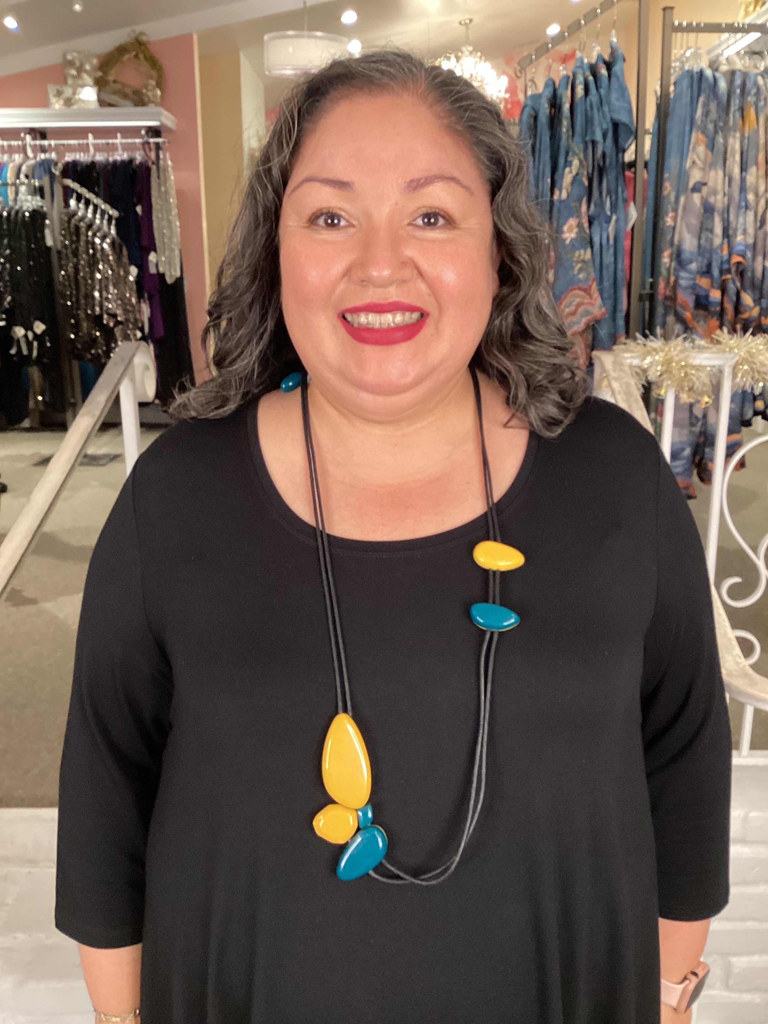 Make a splash with this vibrant two-tone necklace that pairs cool jade teal with sunny yellow. Crafted from durable acrylic, it's the perfect pop of color to elevate any look with effortless style.