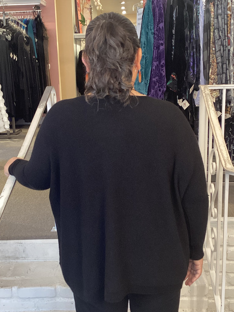 Who doesn't love a black sweater with pockets? Expertly crafted with a supersoft knit, this piece provides both comfort and style. Featuring two pockets for added functionality, this sweater is the perfect addition to your wardrobe. Elevate your look with this must-have piece.