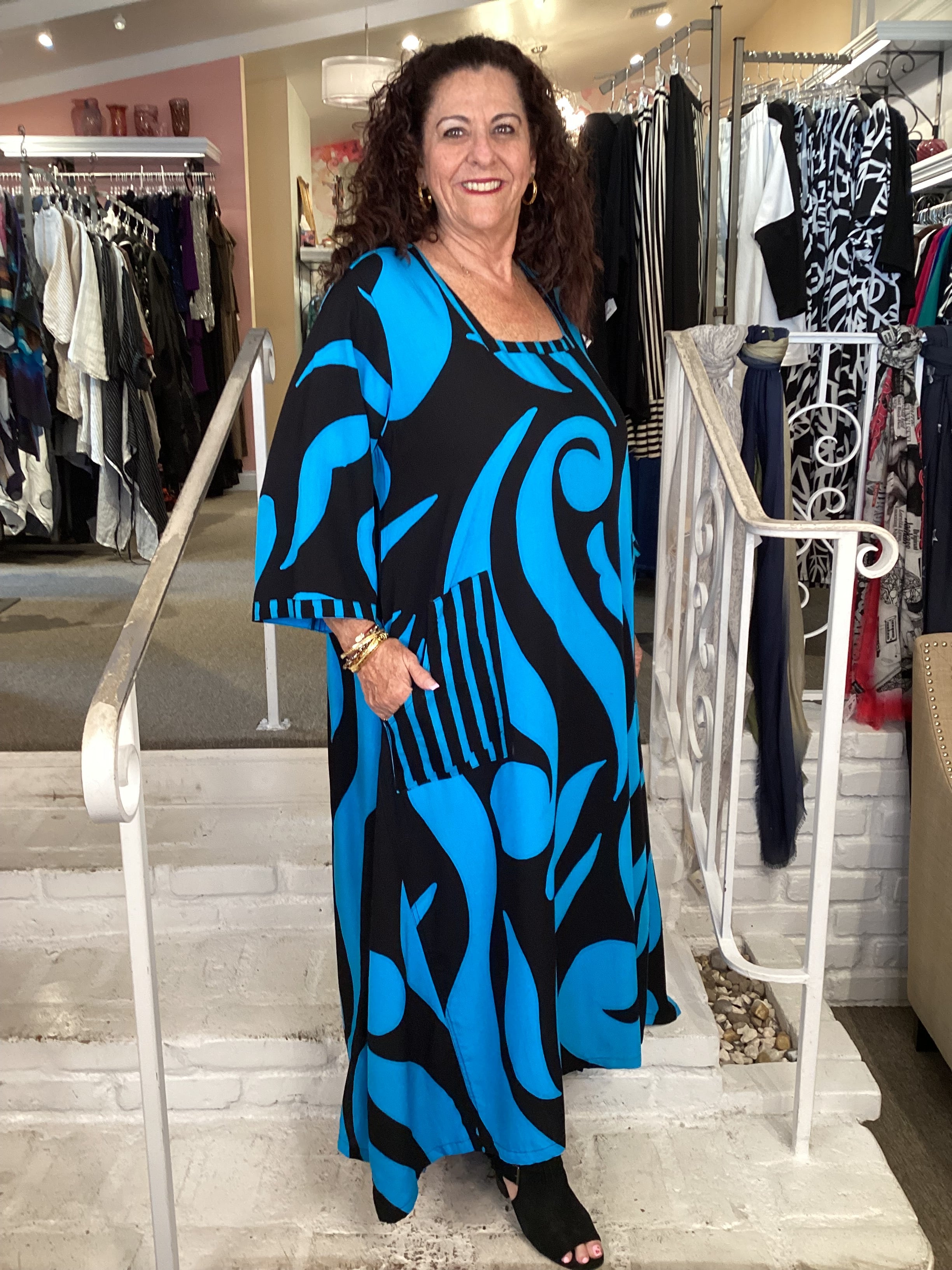 The Maria dress combines comfort and style with its relaxed A-line silhouette and flattering 3/4 sleeves. Crafted from soft rayon, this full-length dress features practical front pockets and comes in vibrant prints and colors that make a statement. Perfect for effortless everyday wear or casual outings, the Maria offers the ease and confidence every woman deserves.