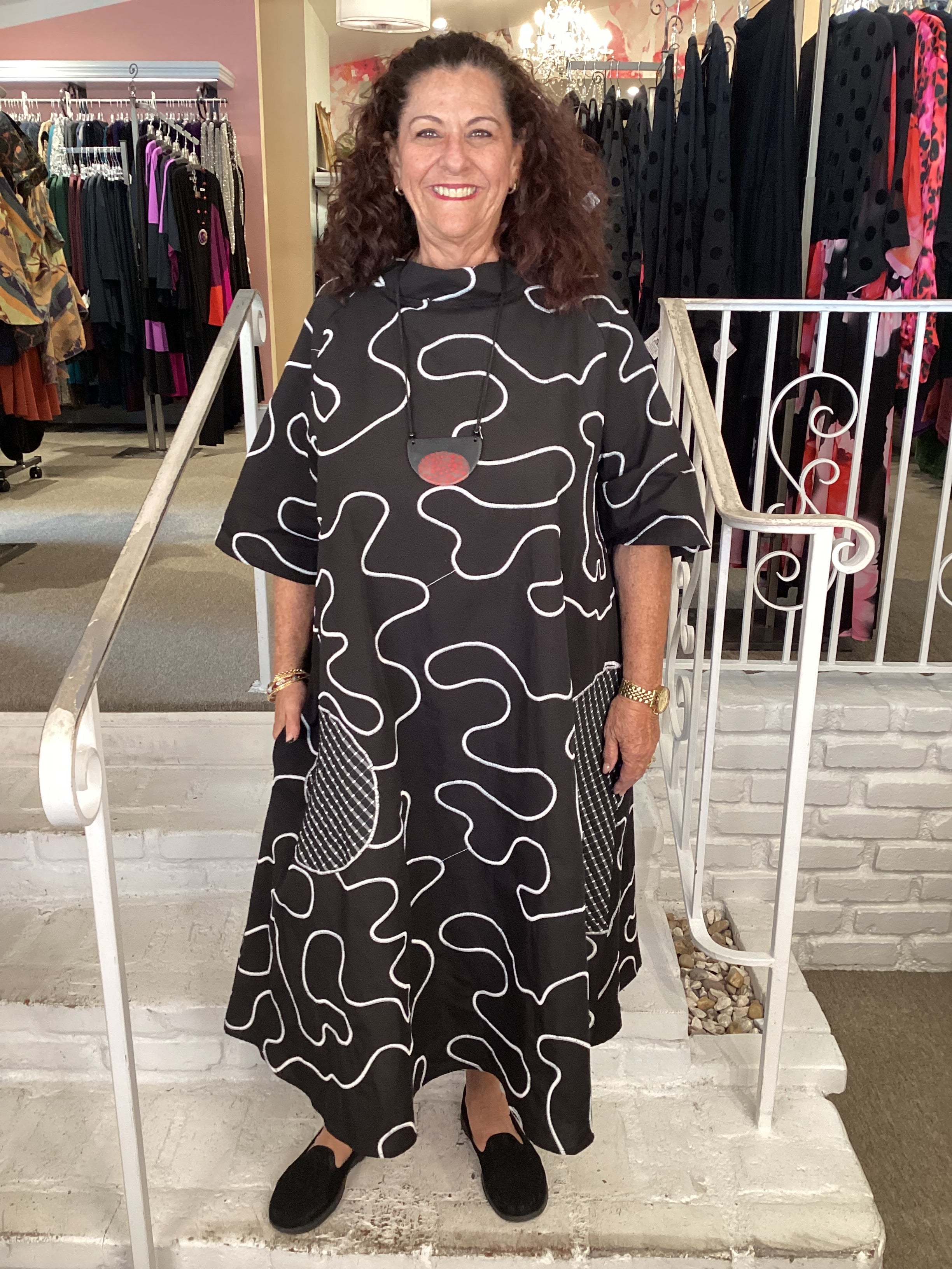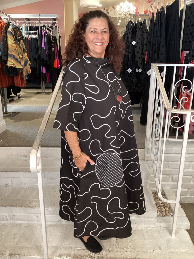 ATOM DRESS-SWIRL POPLIN BLK/WH