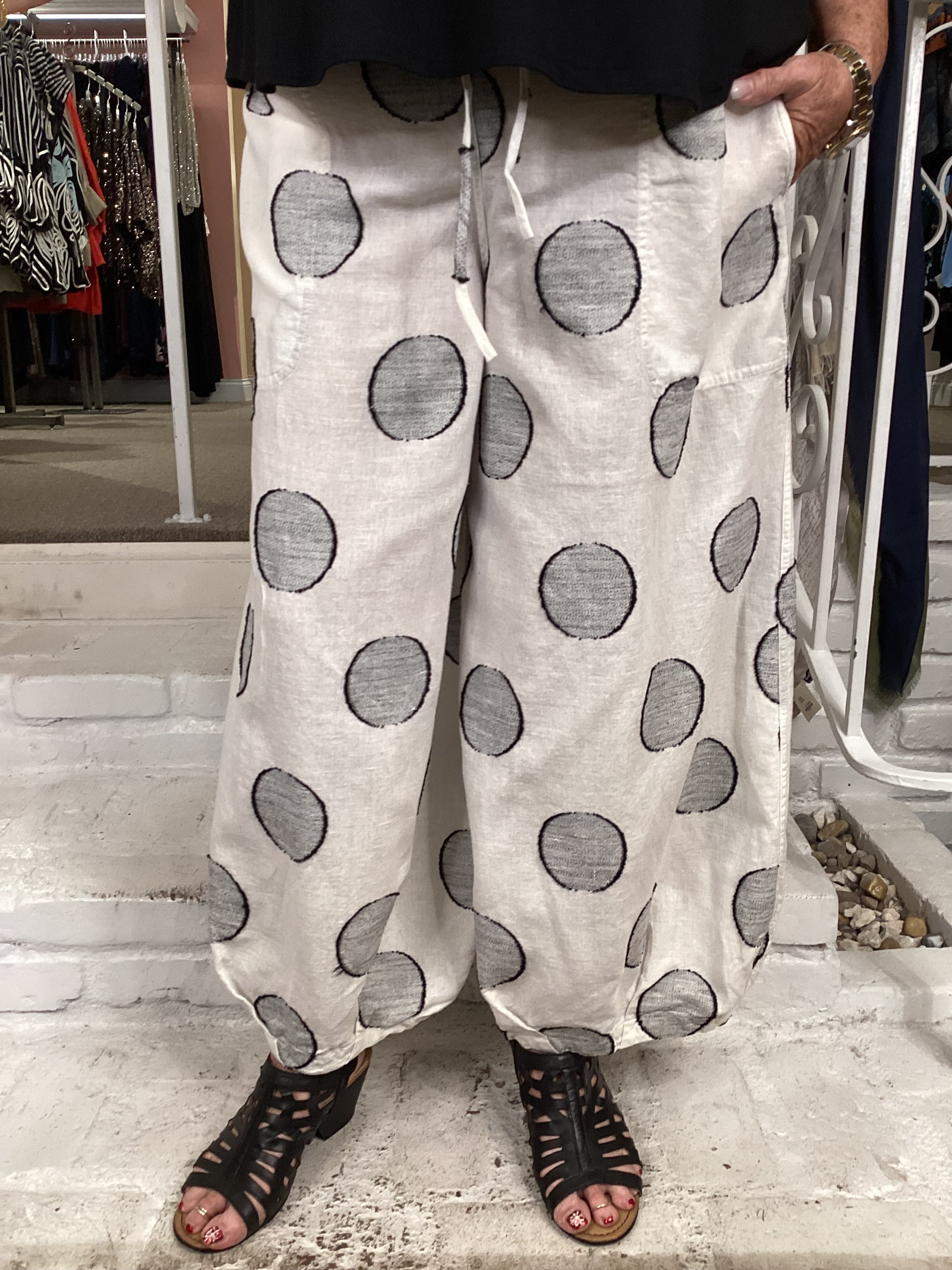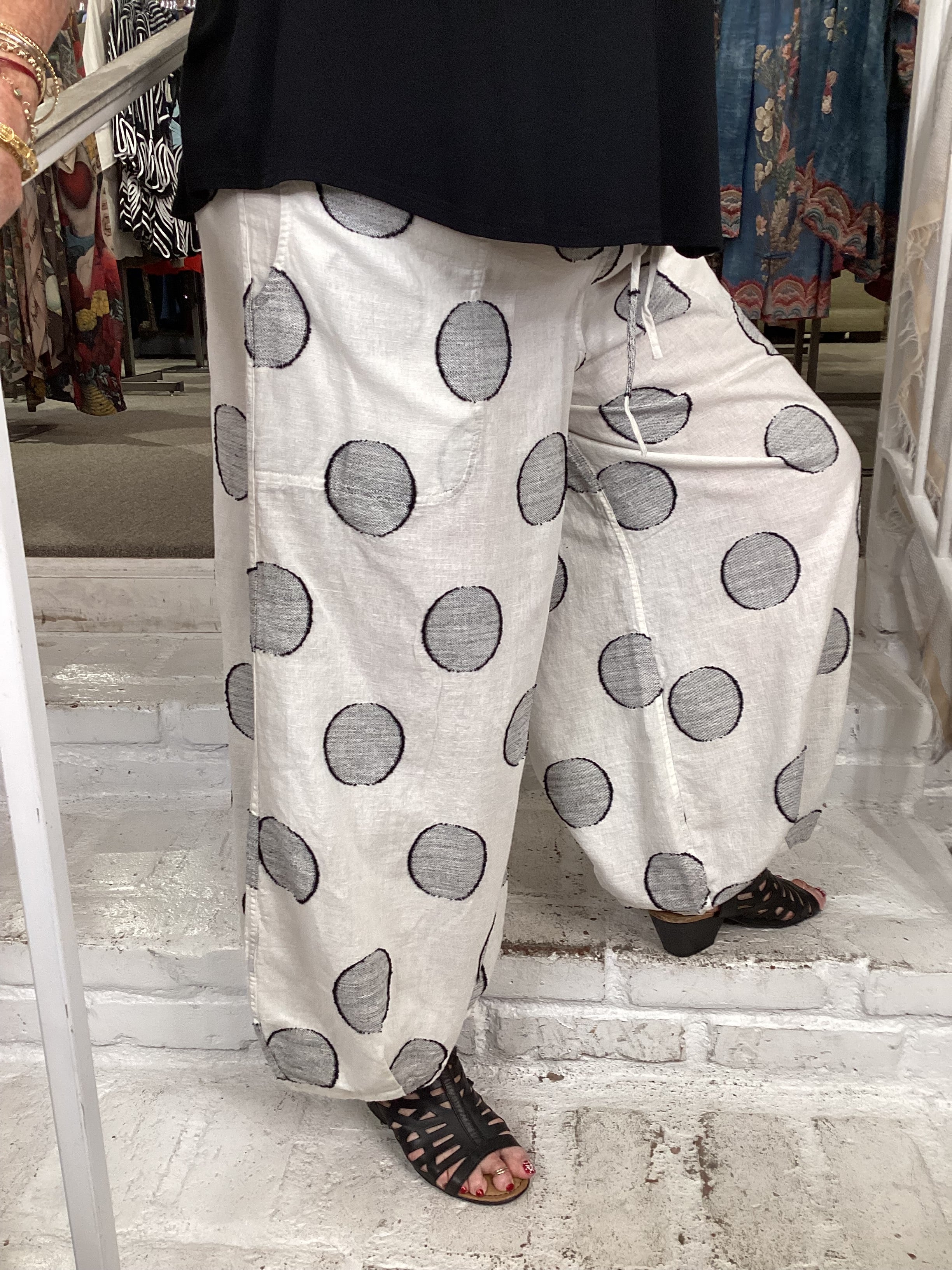 BARREL PANT - WHITE DOT QB0888 WHITE