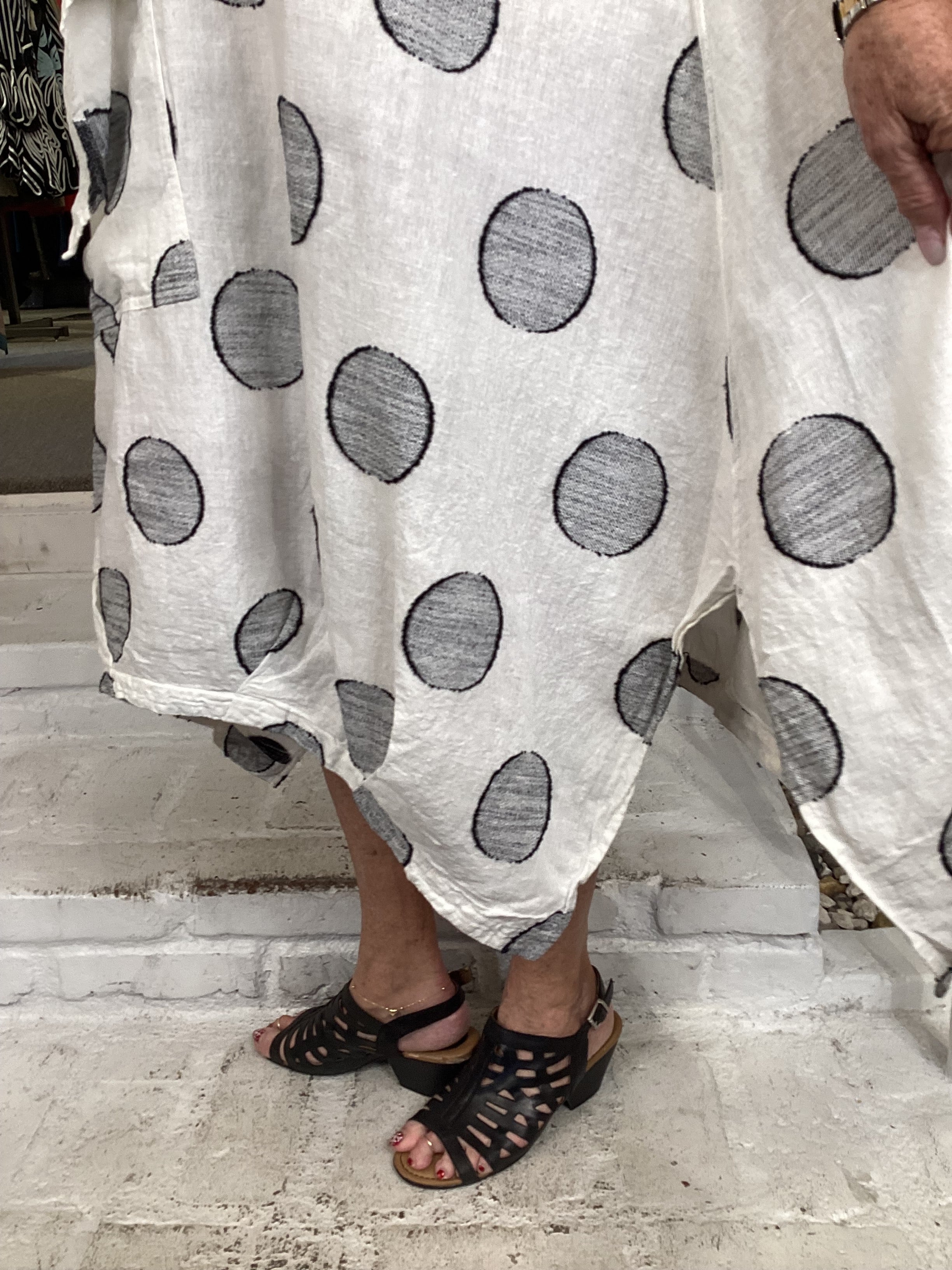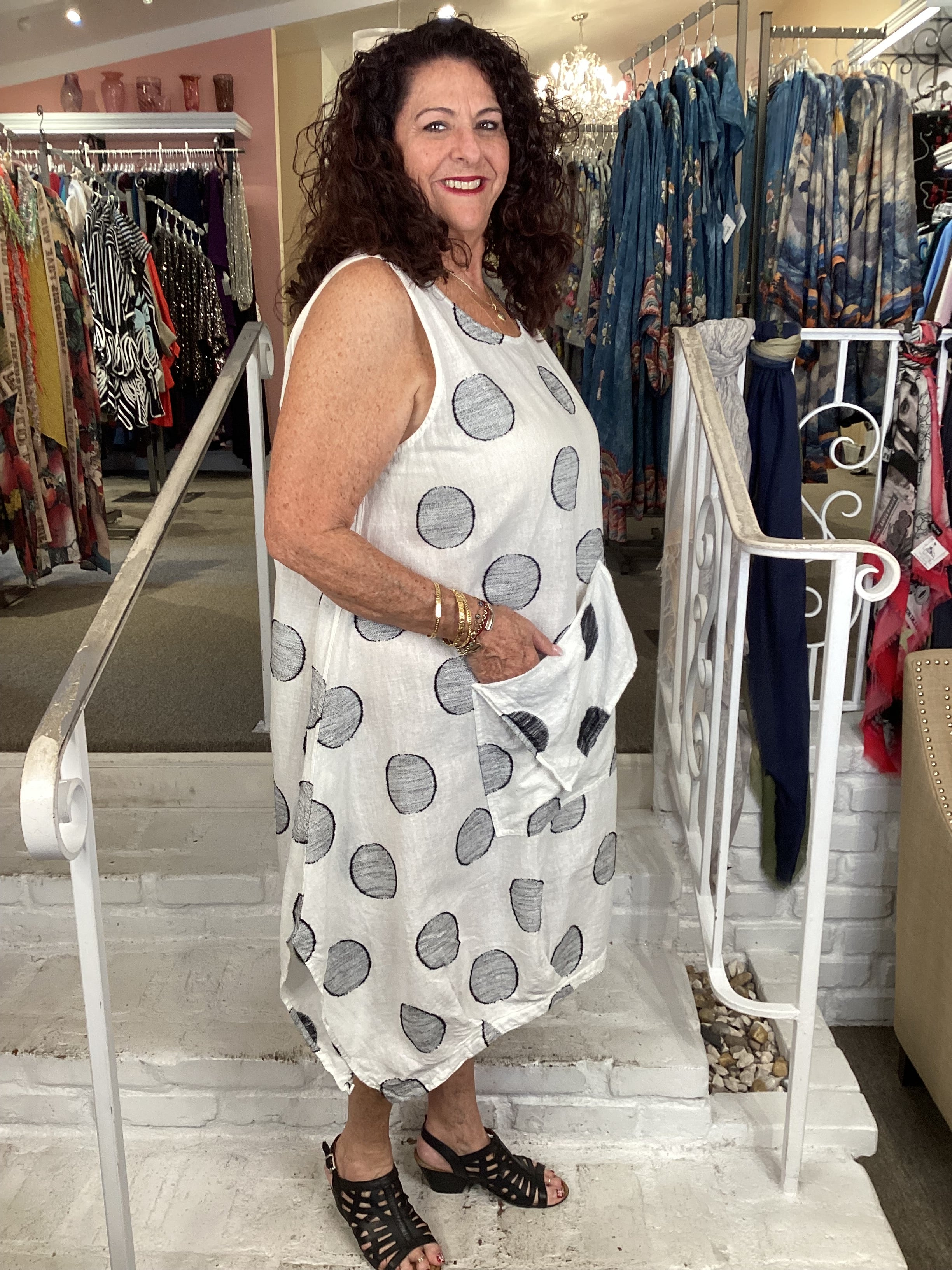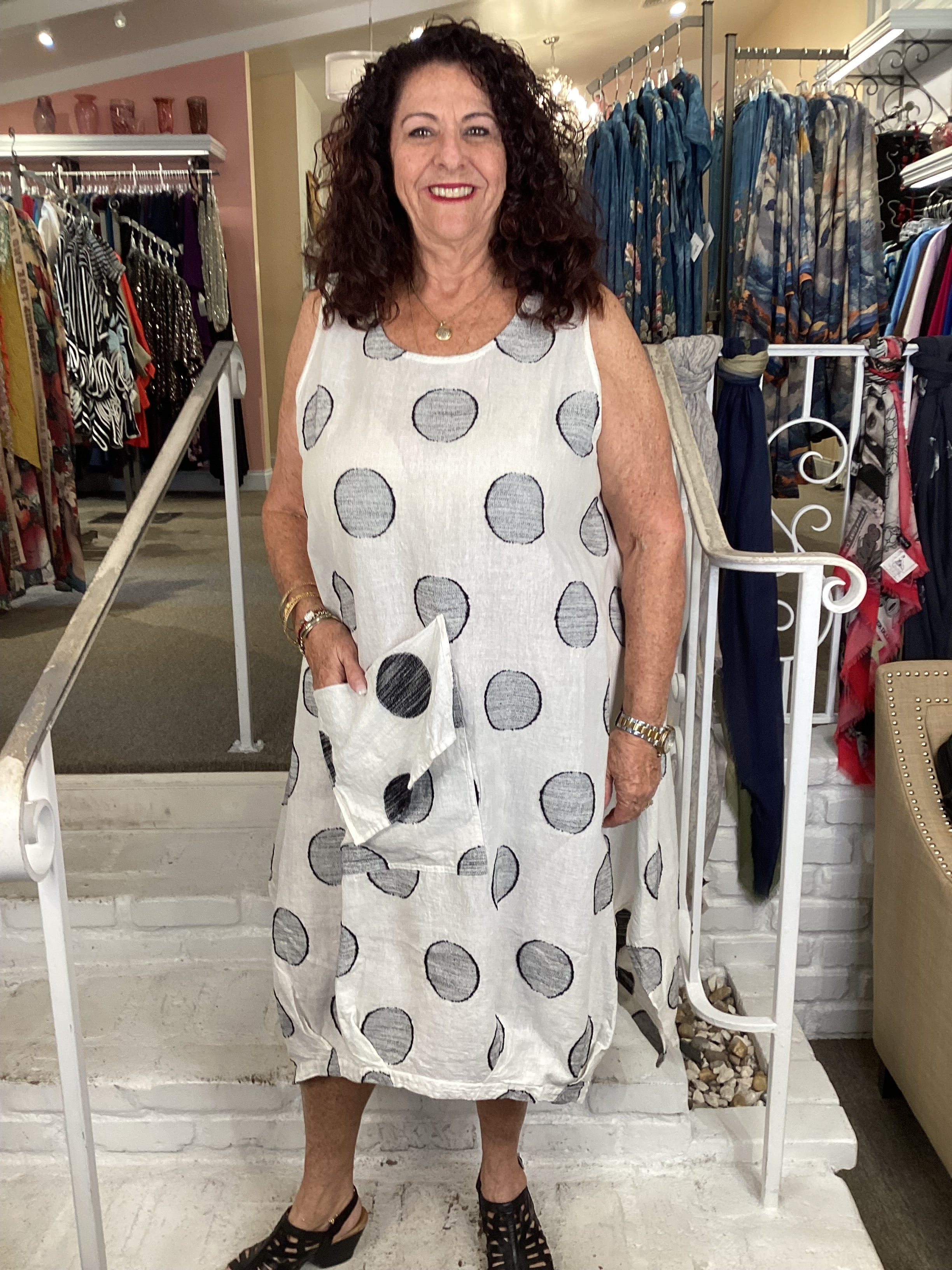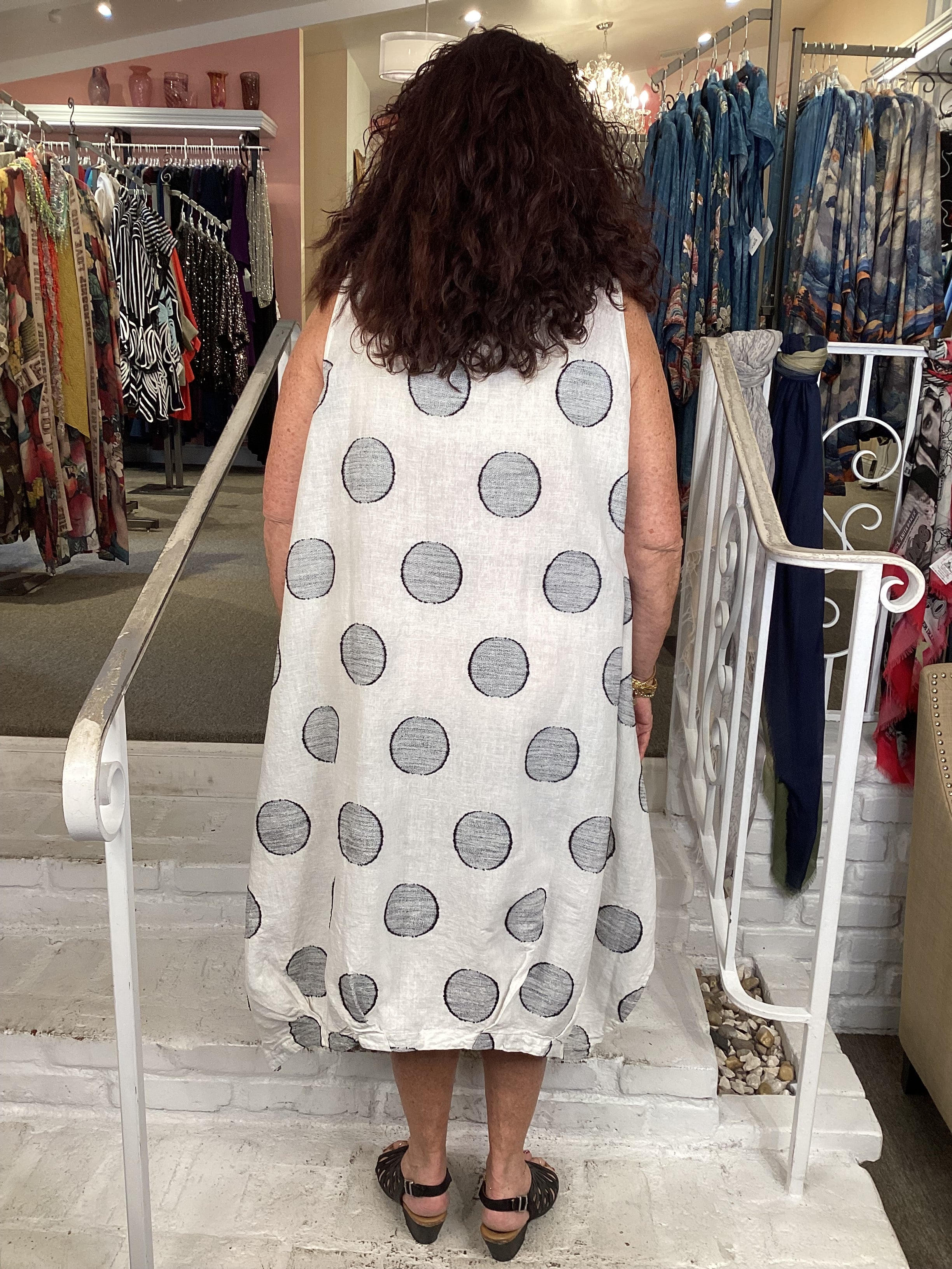 BIG POCKET TNK DRESS-BLACK DOT QT0889 WHITE