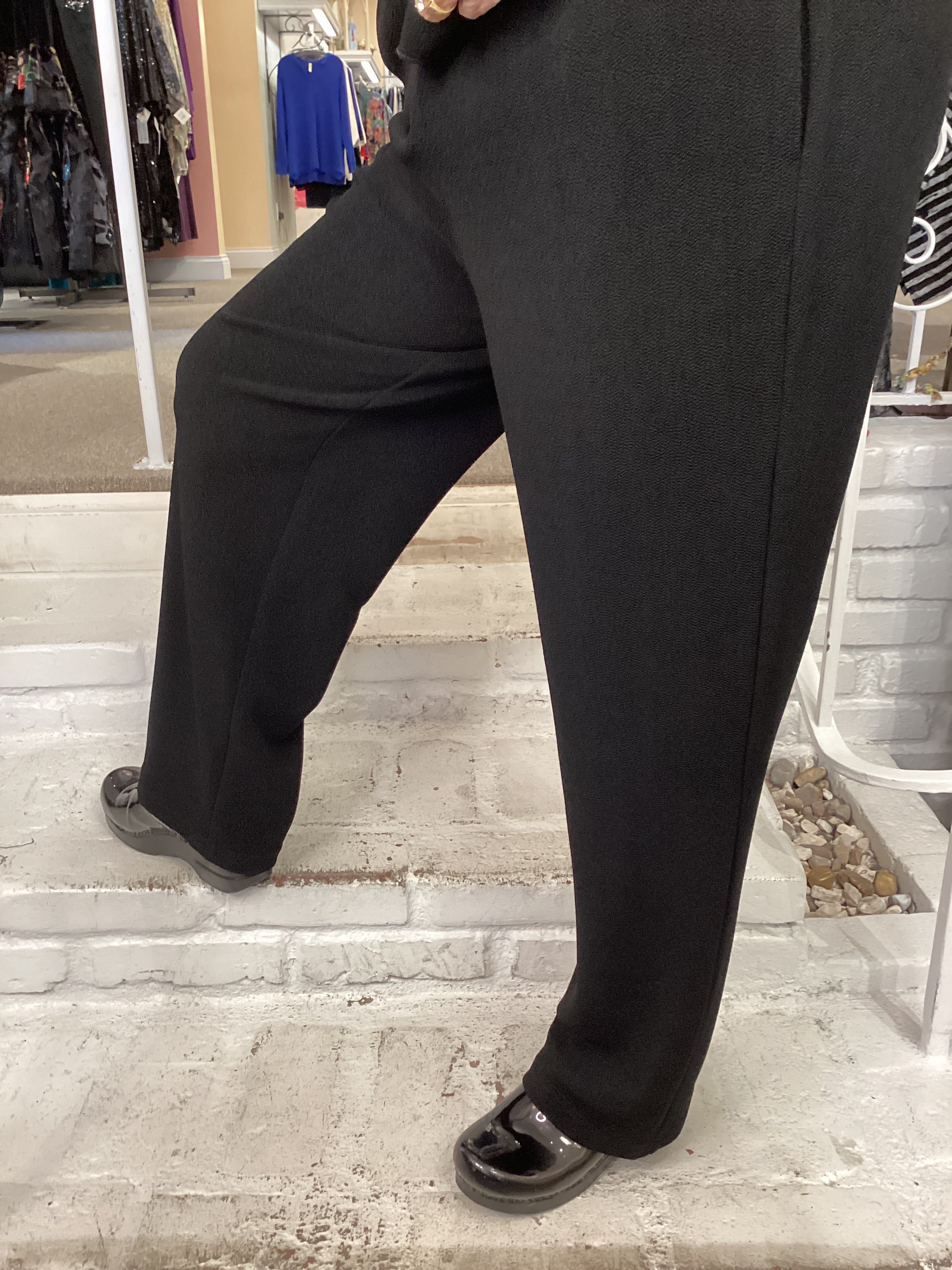 Upgrade your wardrobe with our versatile BOUCLE TAPER PANT. These black, boucle pants provide both comfort and style, with added stretch for all-day wear. Perfect for transitioning effortlessly from the office to a night out, these pants add a touch of class to any outfit.