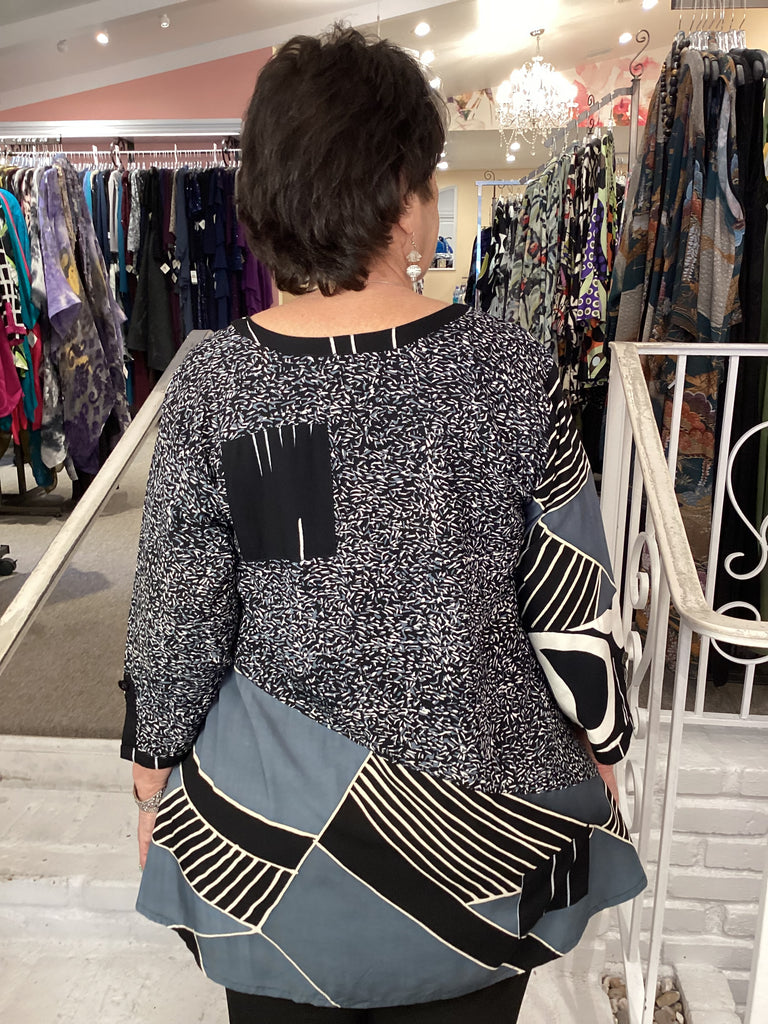 This unique rayon COMBO TOP with a patch pocket features a hand-dyed batik design and is crafted by skilled artisans in Bali.