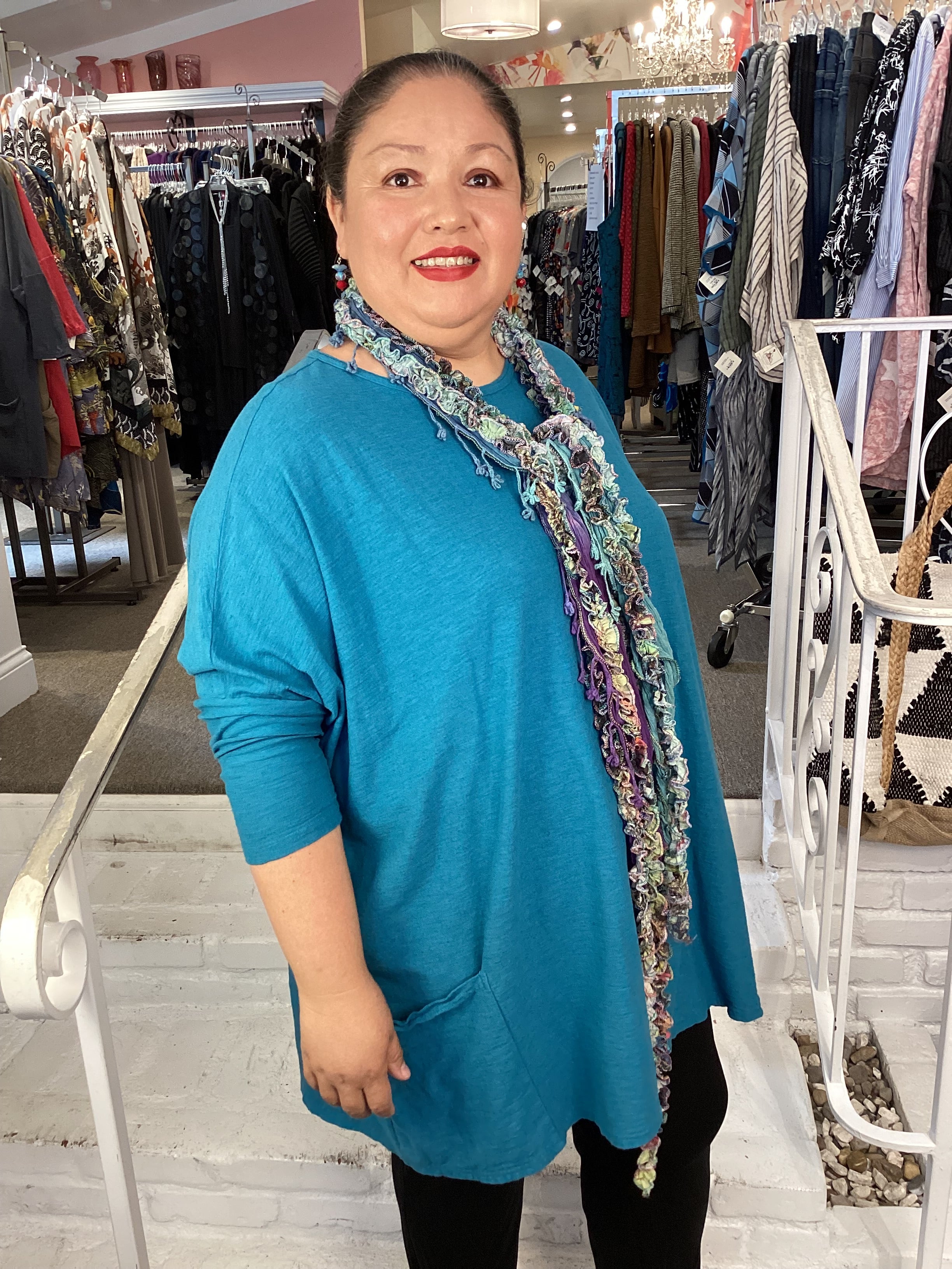 CUT LOOSE is known for their relaxed fit, natural fiber fabrics, and garment dying expertise. Cut Loose products travel well, launder well and can be mixed, matched, and layered to create the looks you crave. This one size tunic tee with two pockets is a little wider cut and a perfect example of a relaxed and easy to wear top.