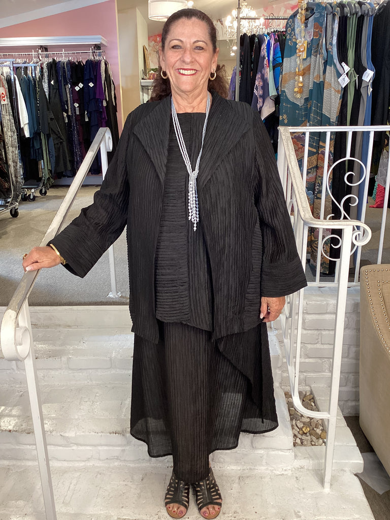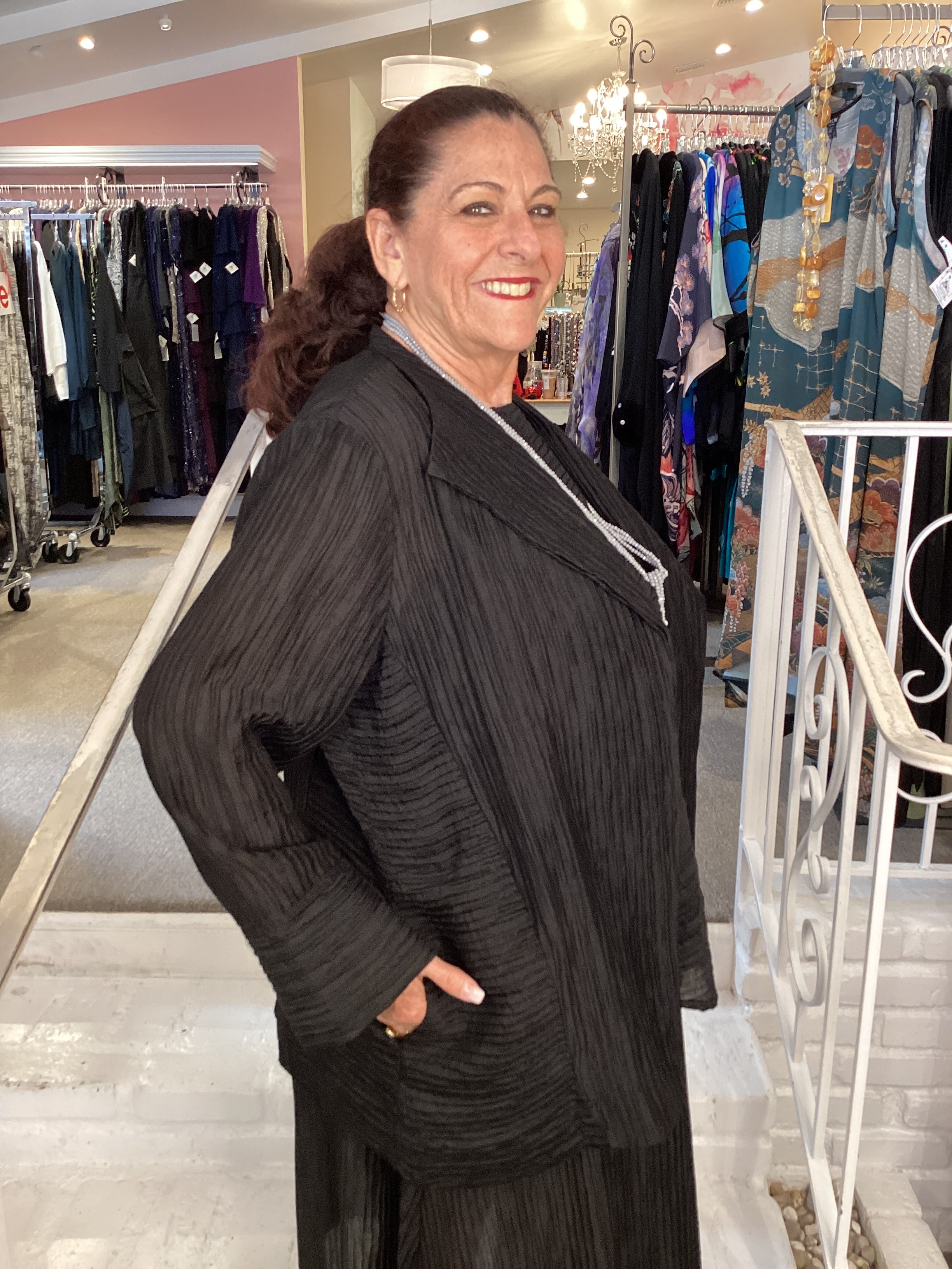 Introducing our elegant CROP JACKET in black. Crafted with full-length sleeves and side pockets, this jacket adds a sophisticated touch to any outfit. Pair it perfectly with our zip back layered dress for a luxurious and tasteful look. Elevate your style with this exclusive piece.